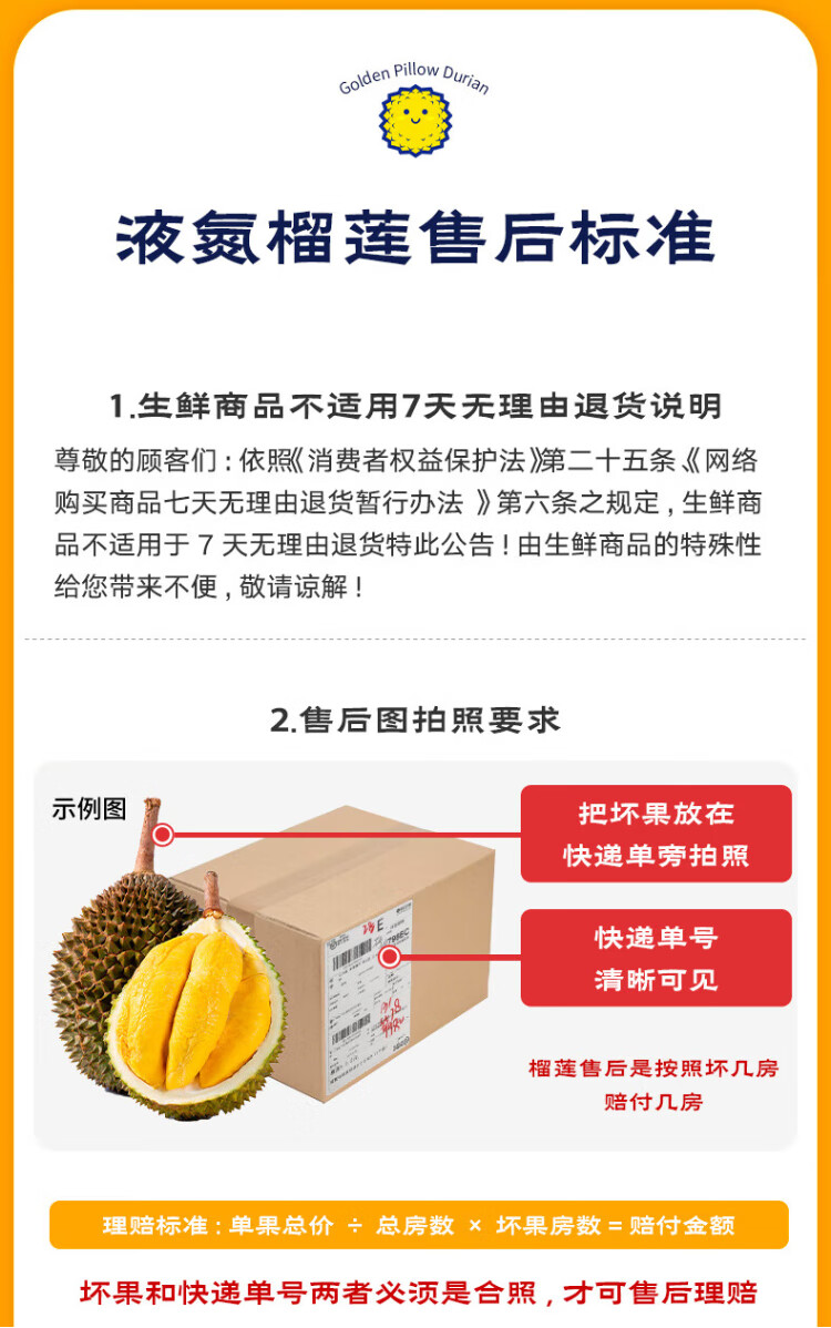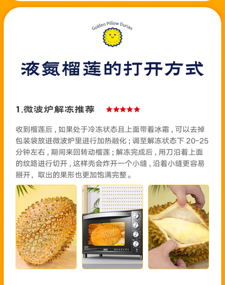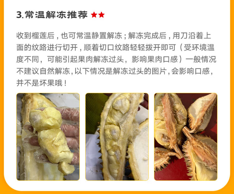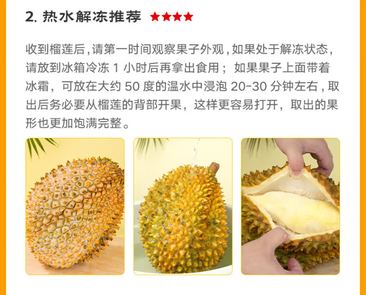 Jingxiansheng Malaysian D197 Musang King Durian 2,5-3Jin Jin entspricht 0,5 kg flüssigem Stickstoff, gefrorenem frischem Obst