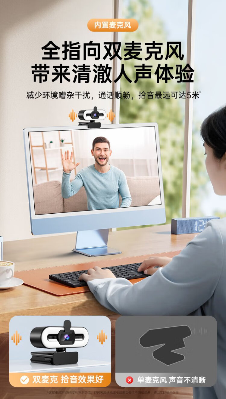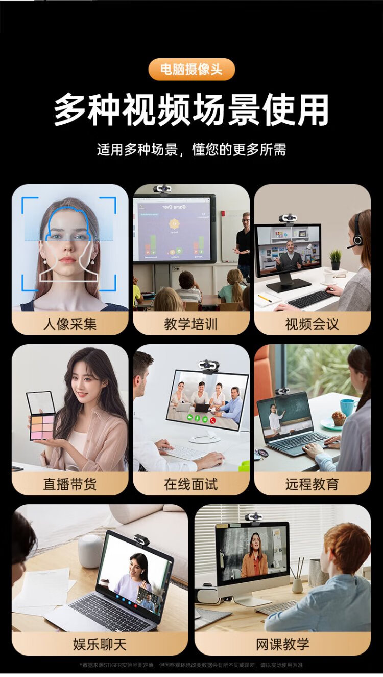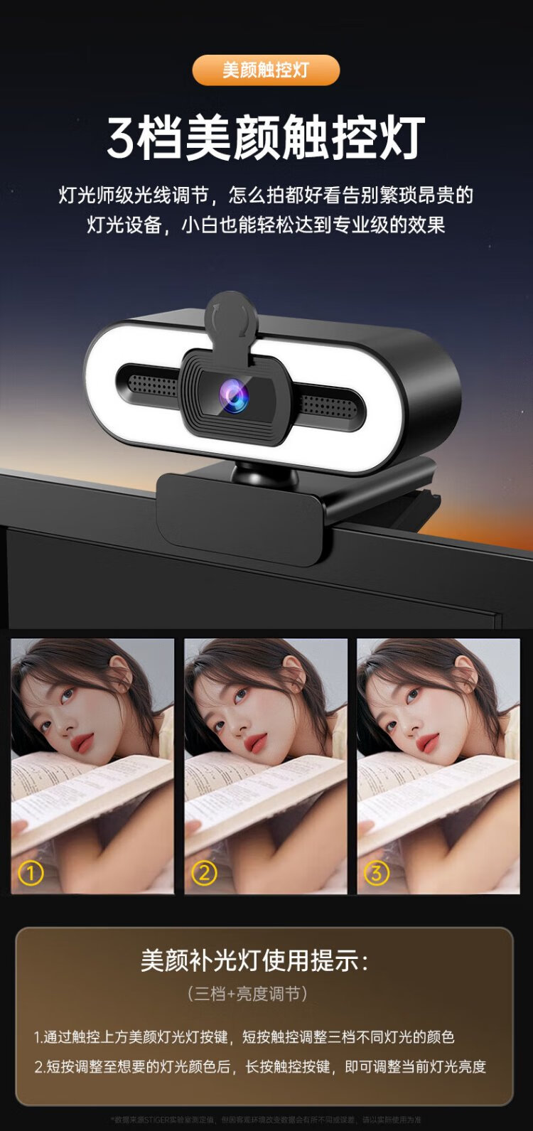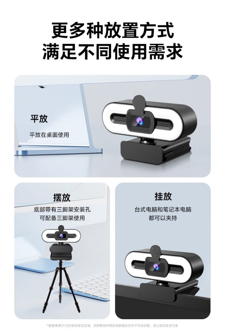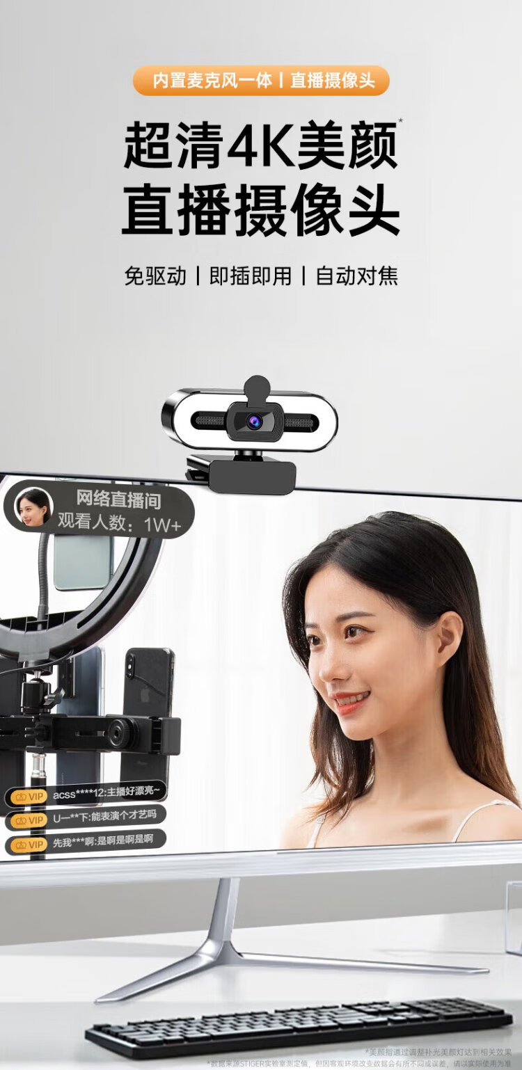 Stiger ultra-clear 4K beauty fill-in live broadcast camera computer HD microphone driver-free online course teaching postgraduate entrance examination interview video call notebook desktop
