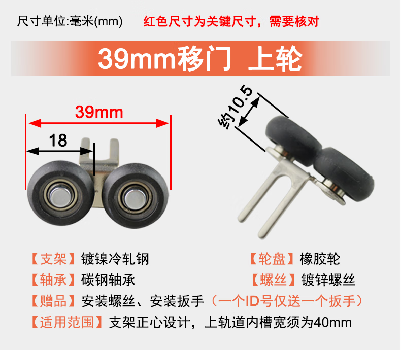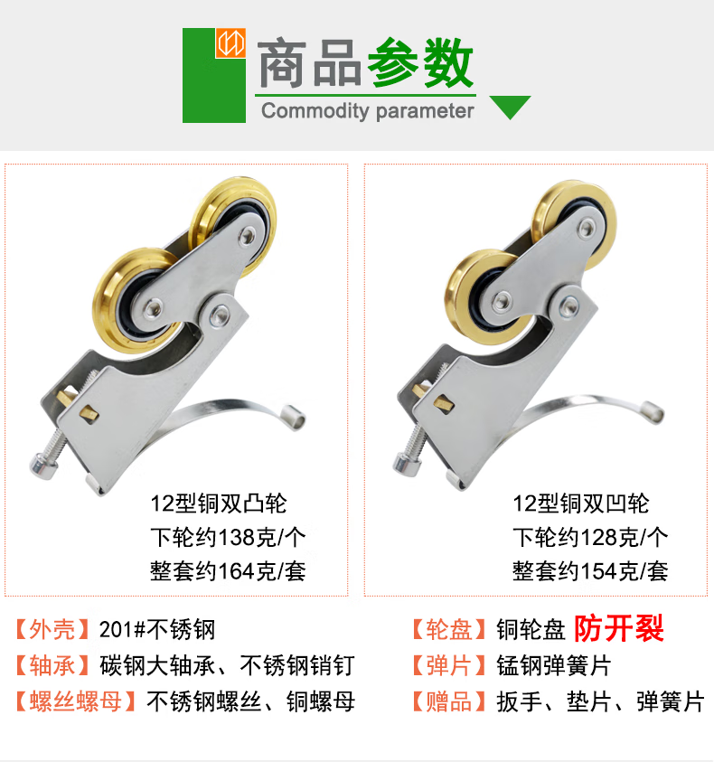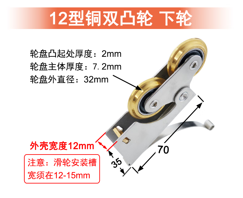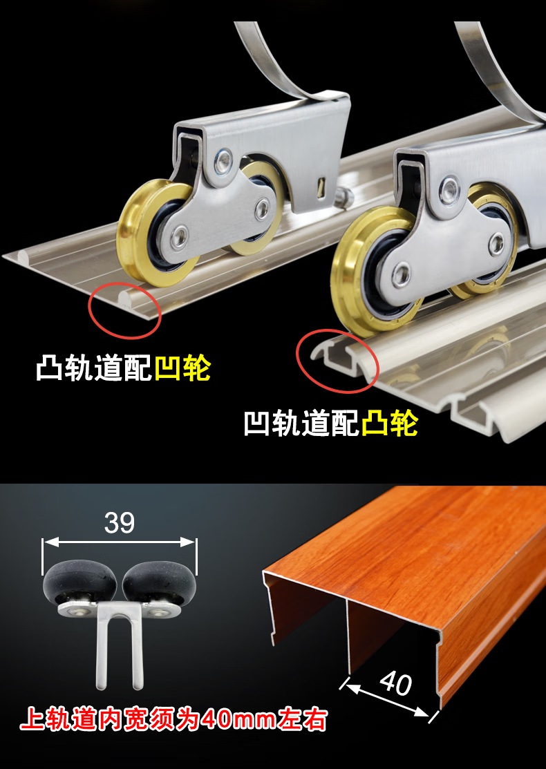 达居匠衣柜门滑轮不锈钢移门滑轮上下轮滑铜槽导轨轱辘推拉门滑轮 凹轮