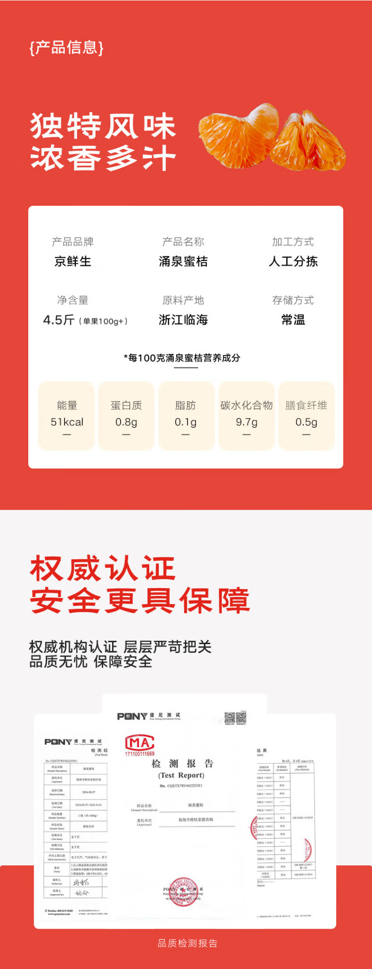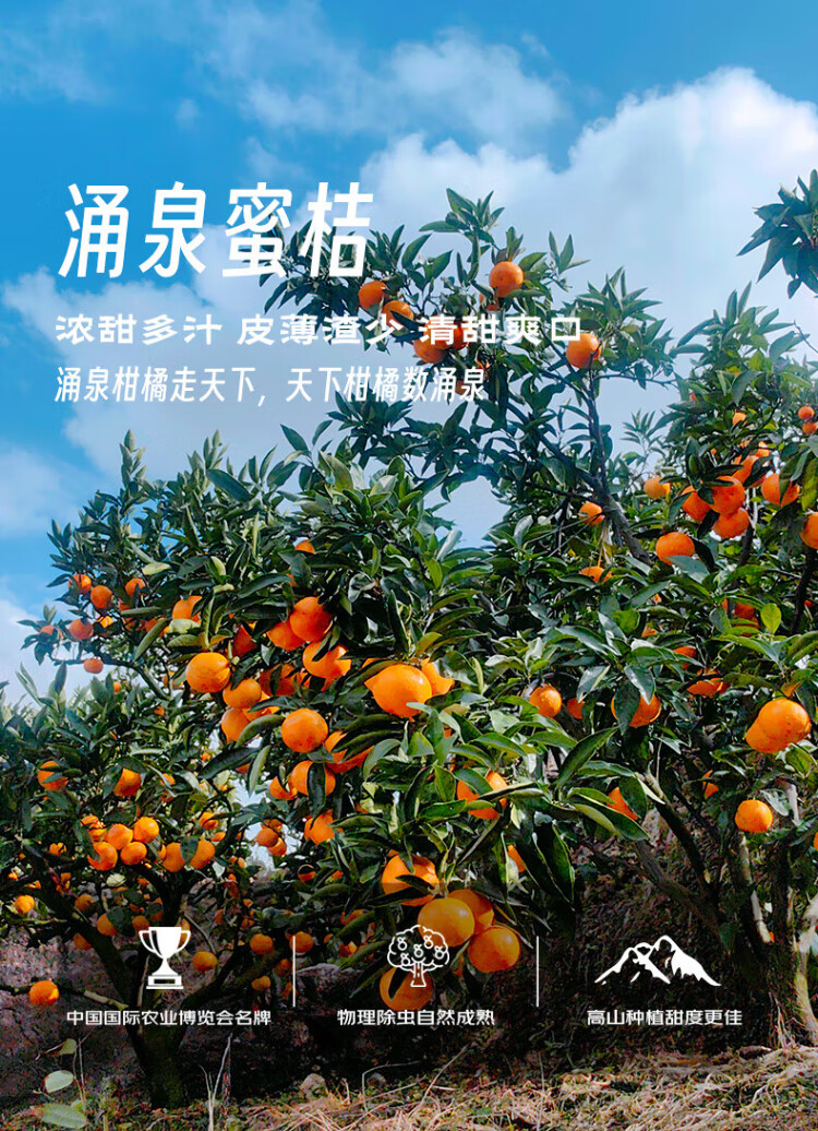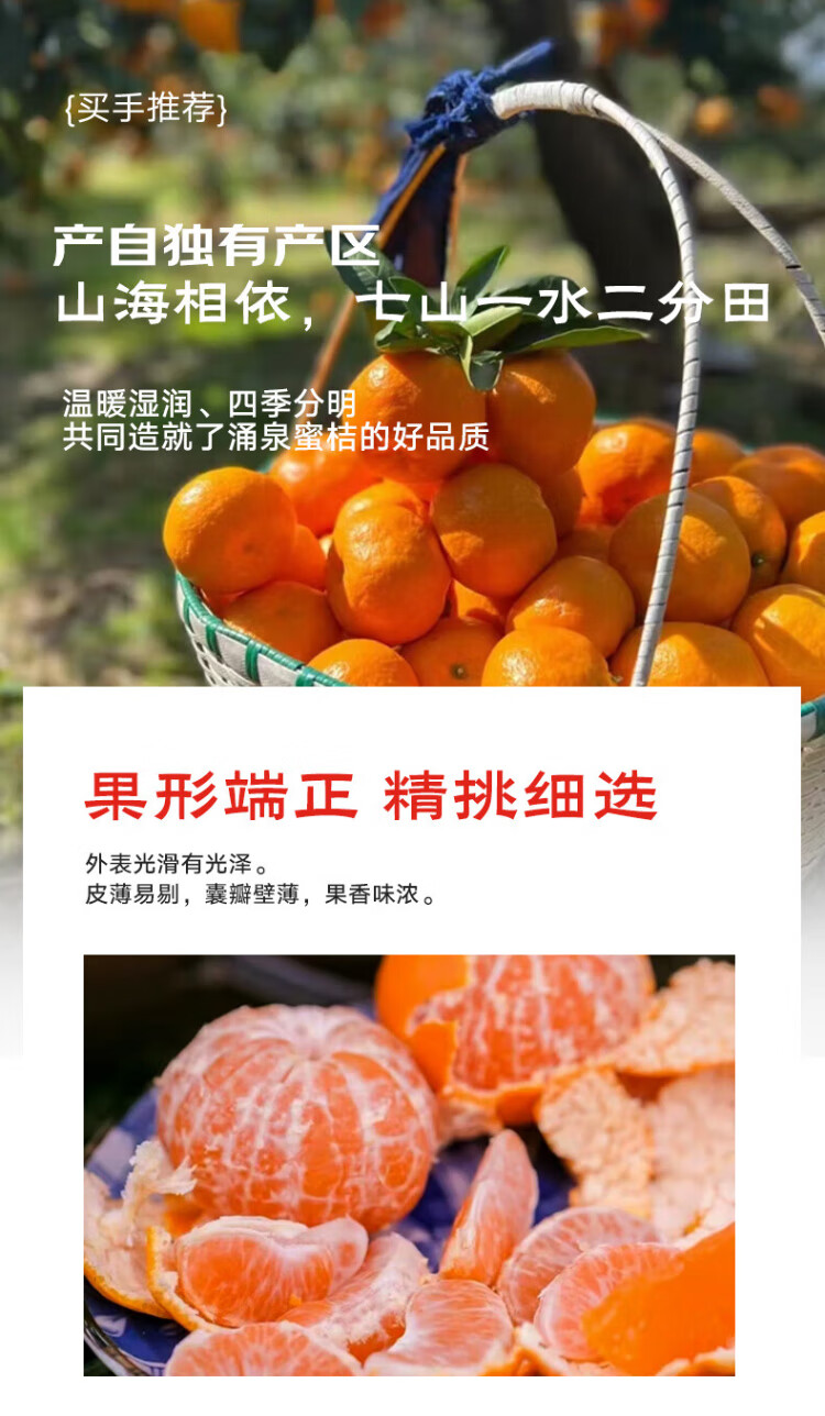 京鲜生 浙江涌泉蜜桔 净重2.5-3斤 大果70-85mm 生鲜水果 源头直发包邮