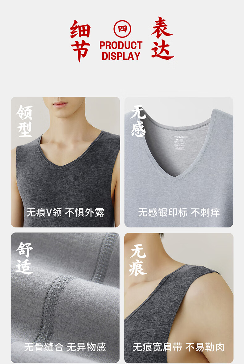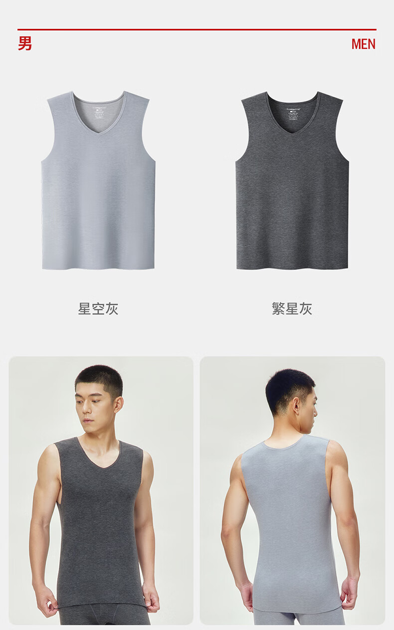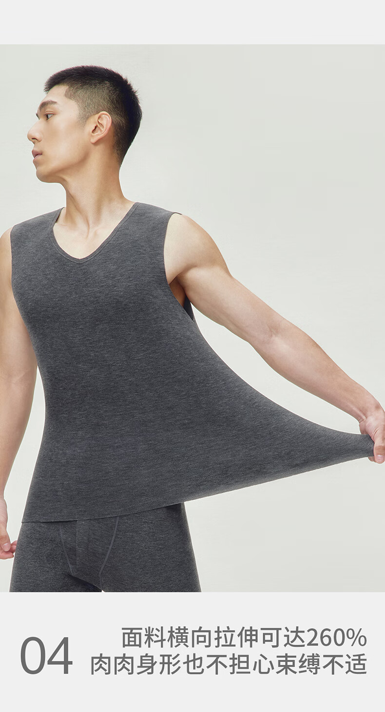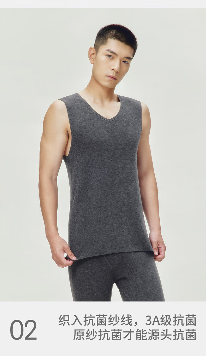 Three-shot naked-feeling seamless brushed cashmere silk 3A antibacterial thermal elastic V-neck men’s vest warm and highly elastic