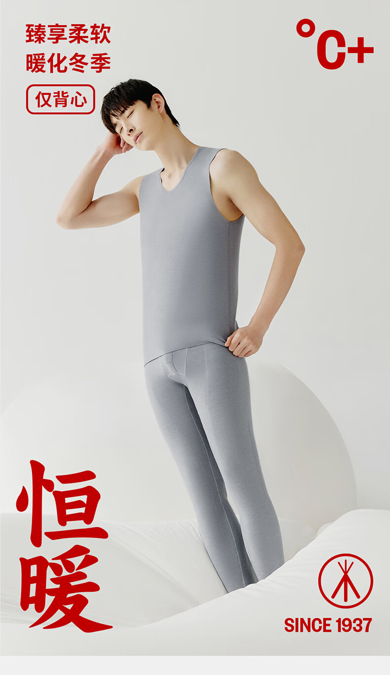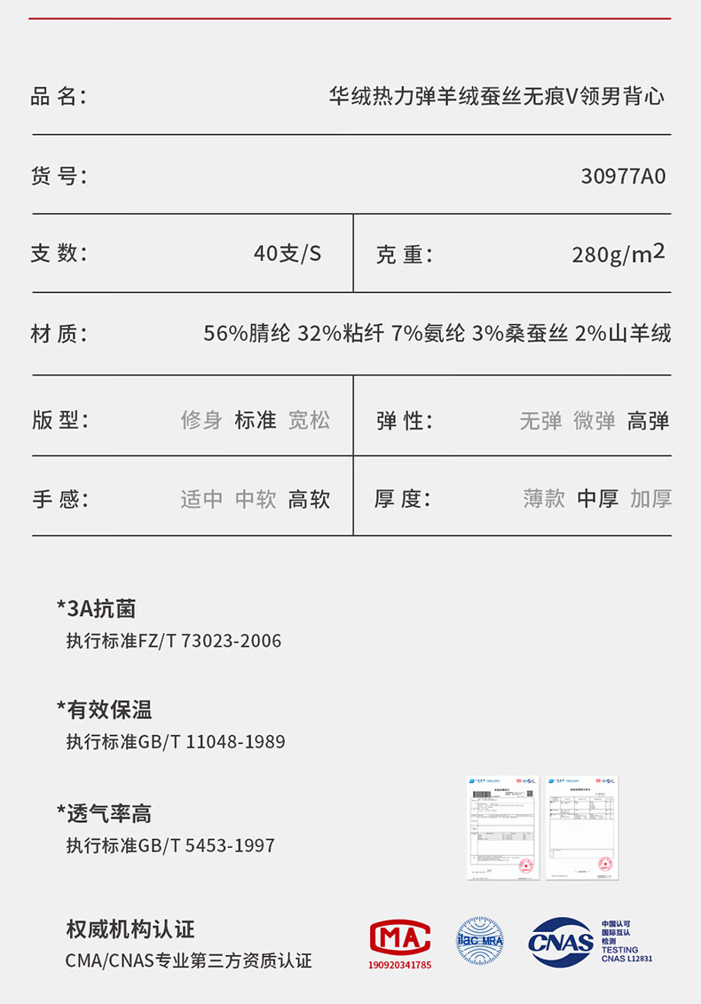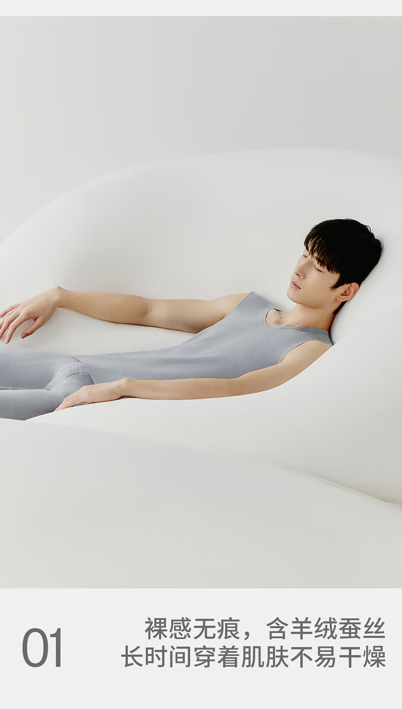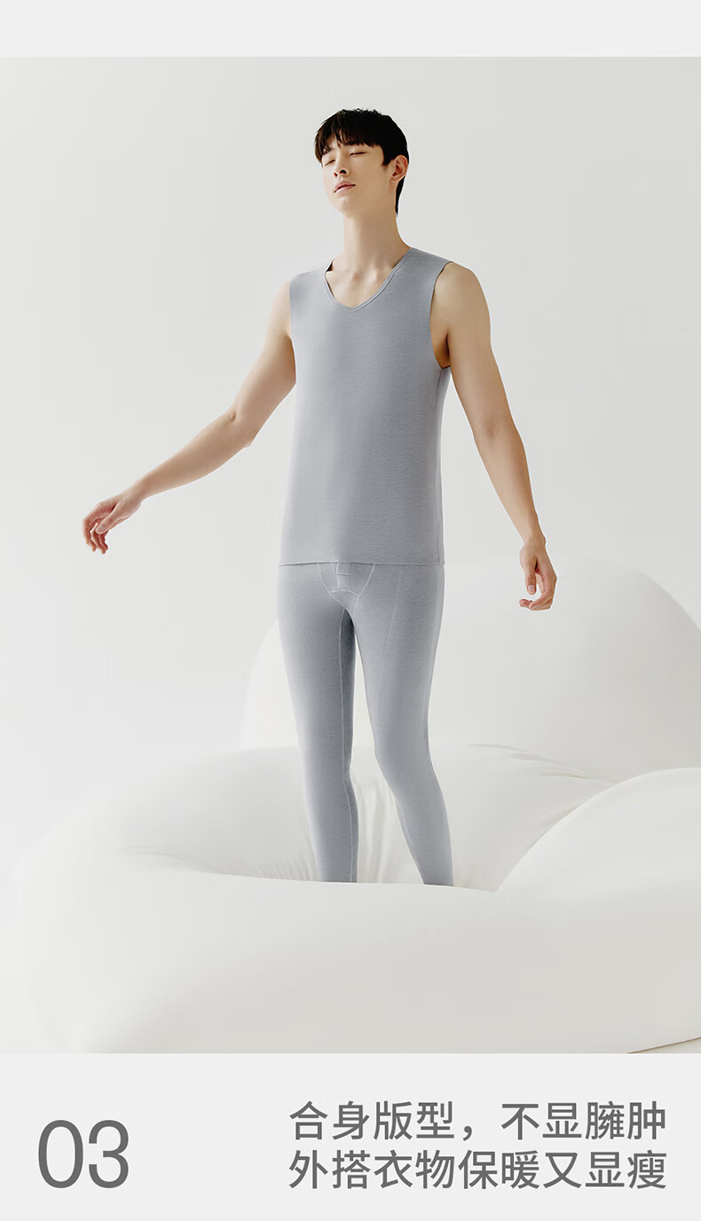 Three-shot naked-feeling seamless brushed cashmere silk 3A antibacterial thermal elastic V-neck men’s vest warm and highly elastic