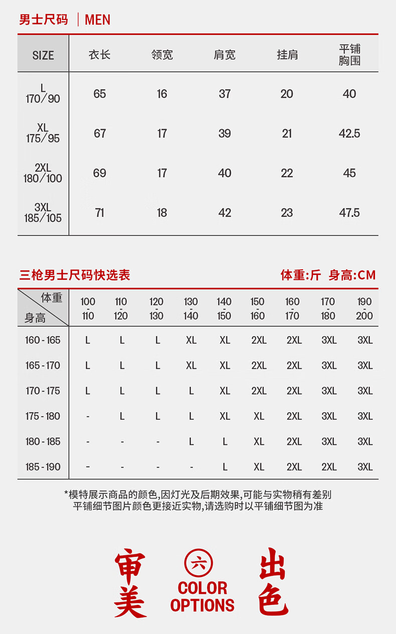 China (cm) 165 / 88-90 170 / 96-98 175 / 108-110 180 / 118-122 185 / 126-130