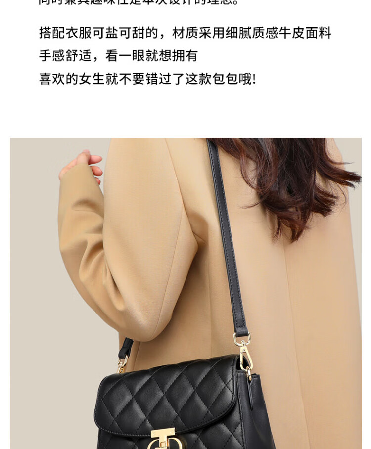 YUYULA cowhide bag women's bag crossbody bag light luxury brand rhombus shoulder bag birthday gift high-end for girlfriend and wife