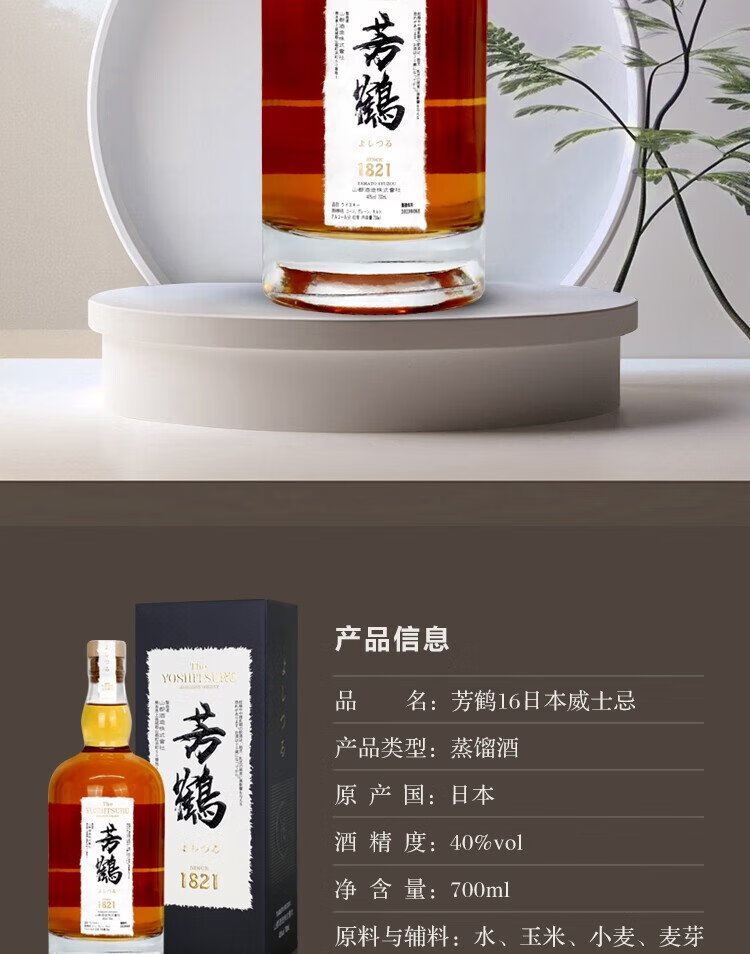 芳鹤(Yoshitsuru)日本原瓶进口威士忌 芳鹤16日威 700ml *2 双瓶装