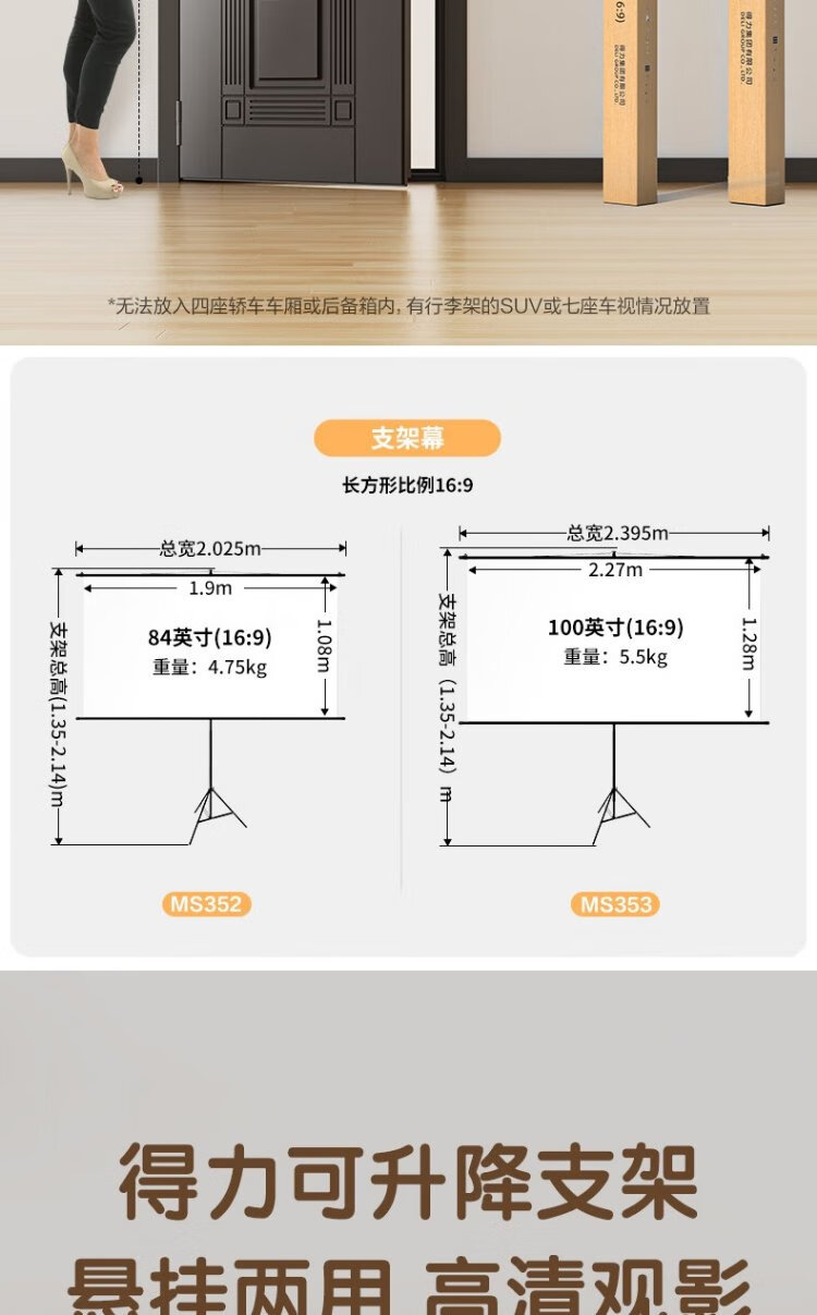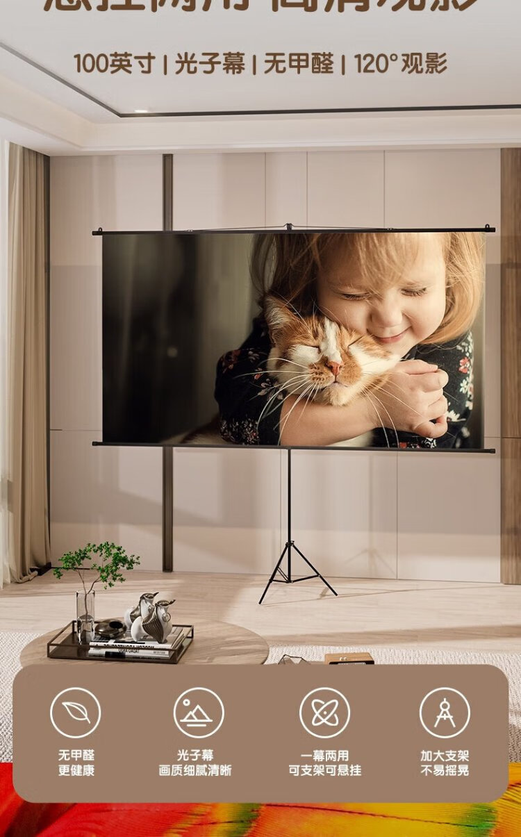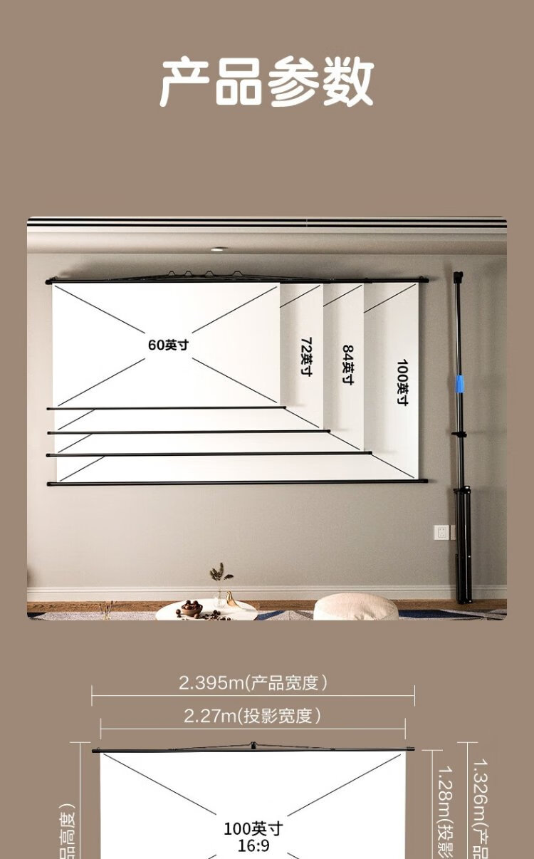 Deli 100-Zoll-16-Zoll-9-Halterung-Wandmontage-Doppelzweck-Photonenbildschirm, genießen Sie eine ultraklare und schlagfreie 8K-Heimprojektionswand, geeignet für den XGIMI Nut Dangbei-Projektor MS353