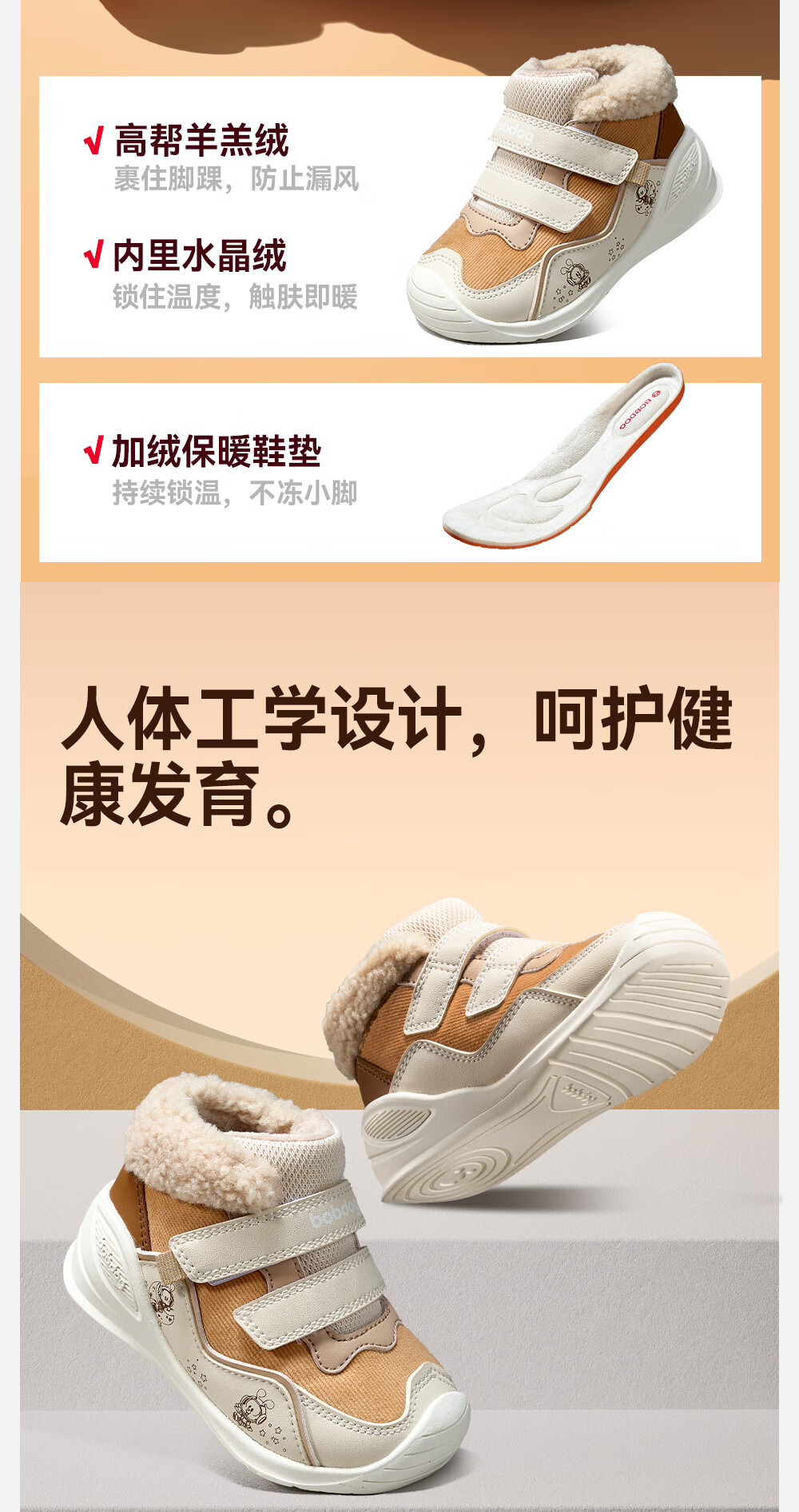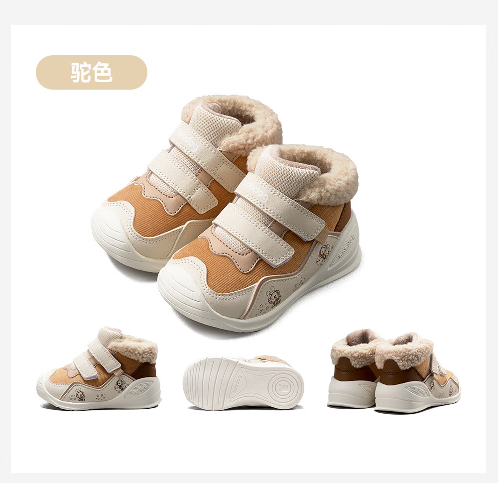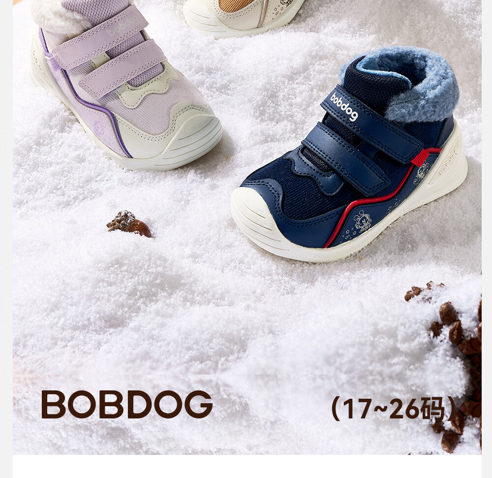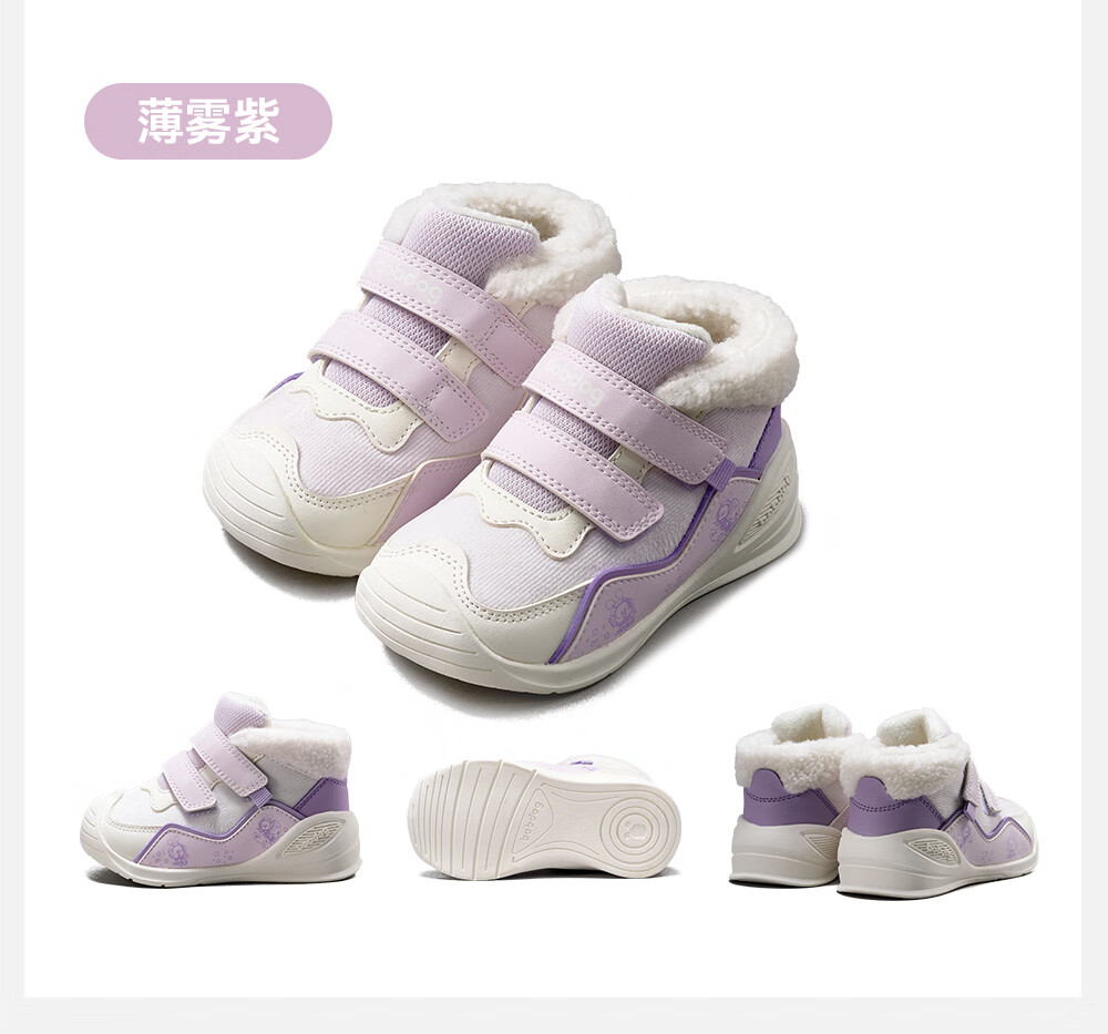 巴布豆童鞋男女宝宝学步鞋25冬款保暖防滑高帮机能鞋新款 薄雾紫 26