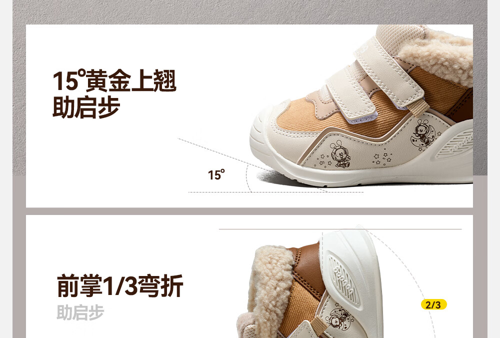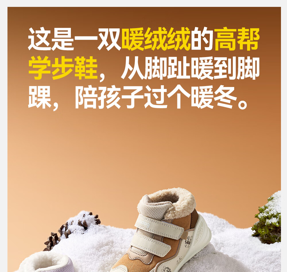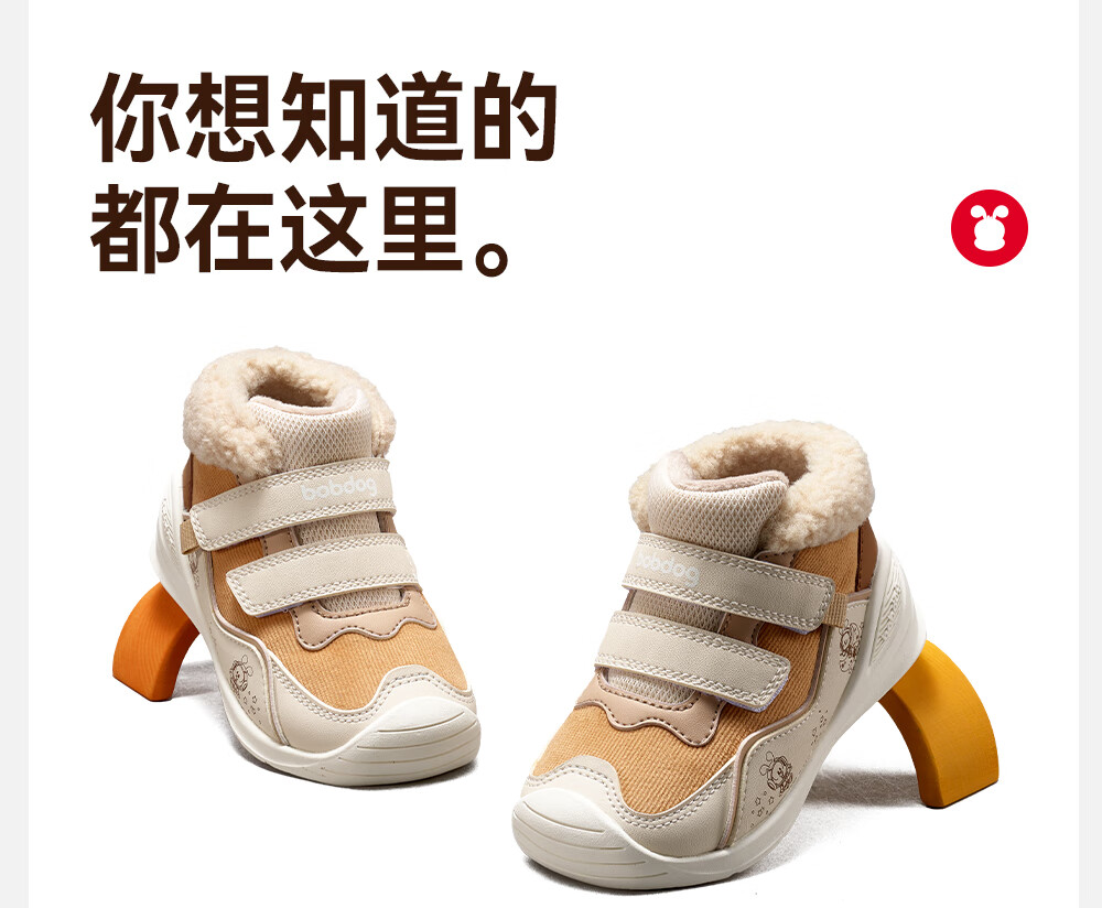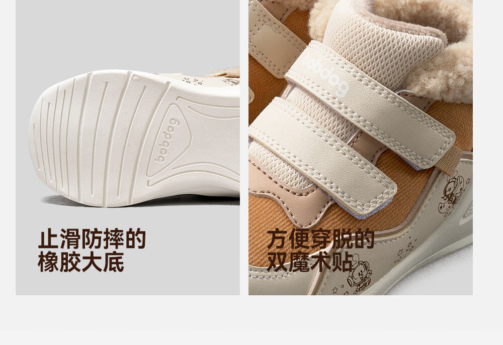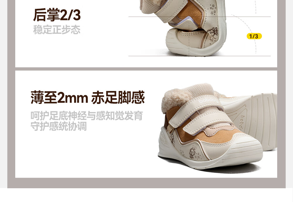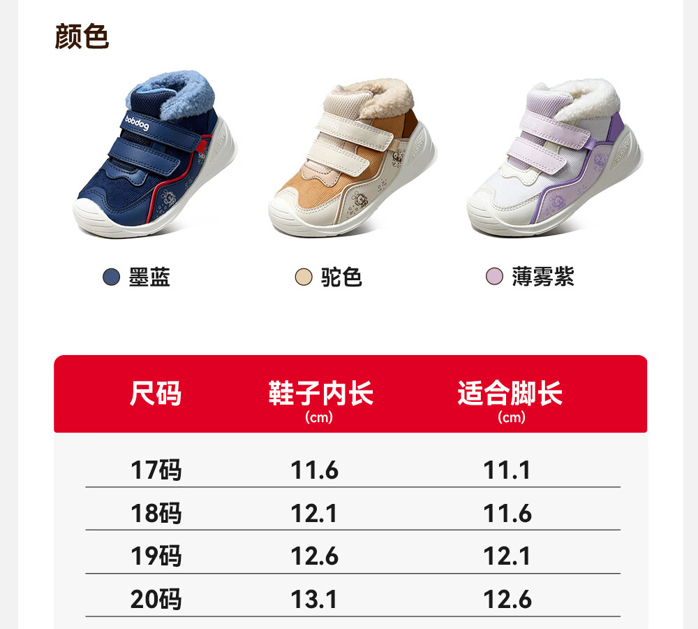 巴布豆童鞋男女宝宝学步鞋25冬款保暖防滑高帮机能鞋新款 薄雾紫 26