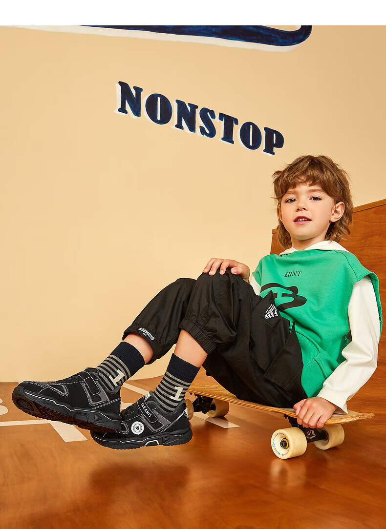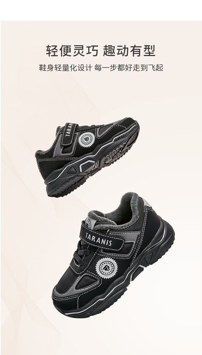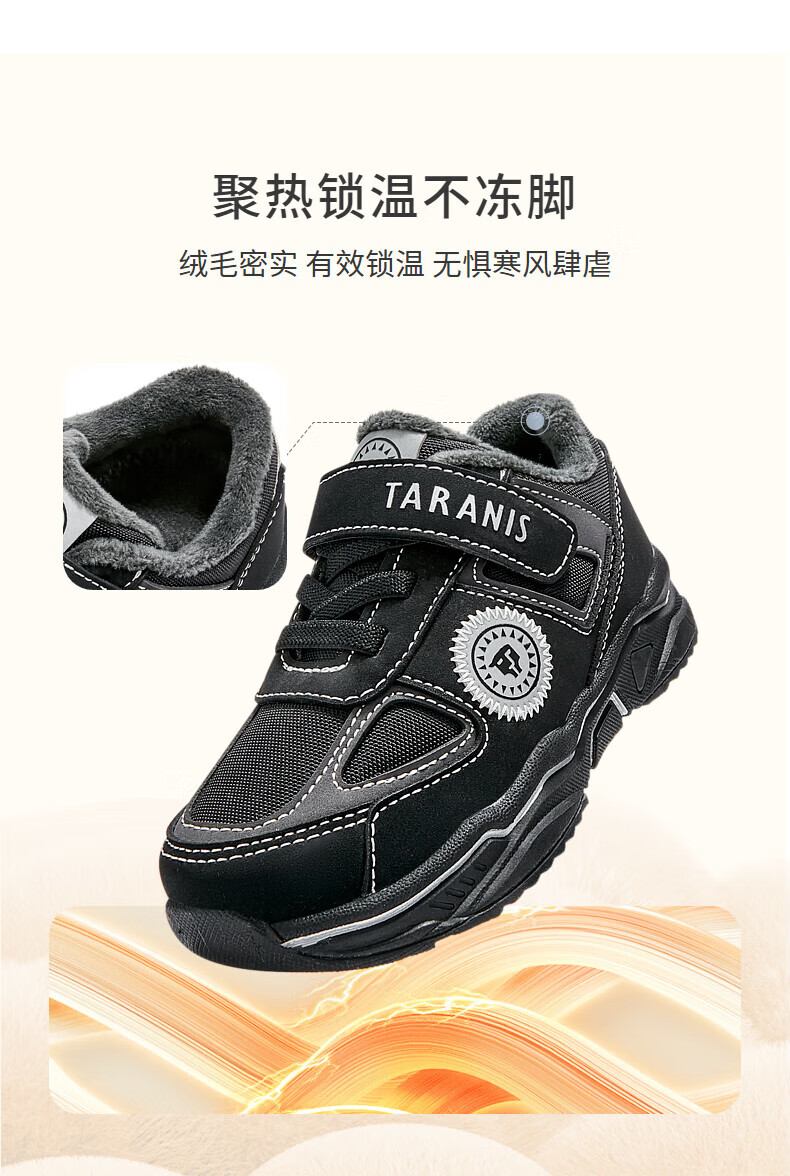 Terranis winter children's sports shoes plus velvet warm cotton shoes boys' running shoes fashionable flick dad shoes size 29