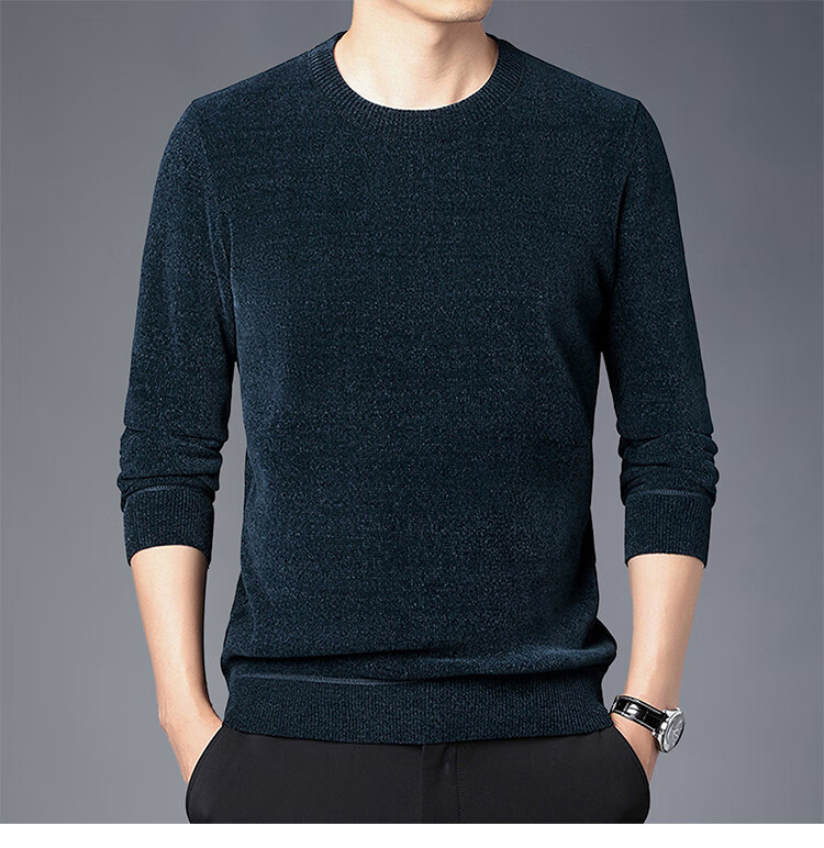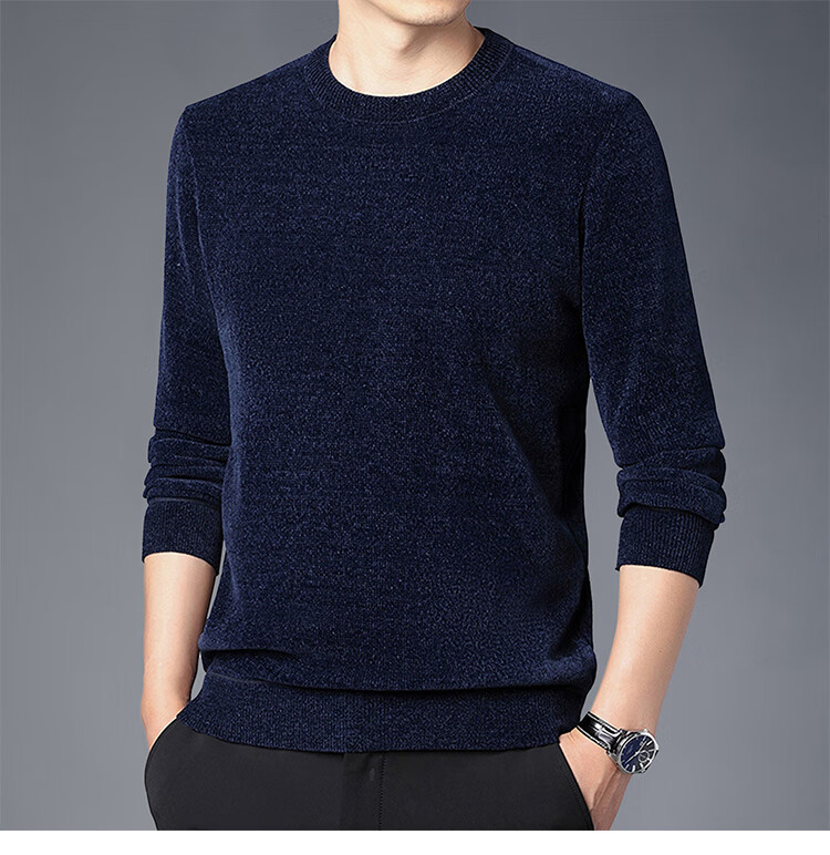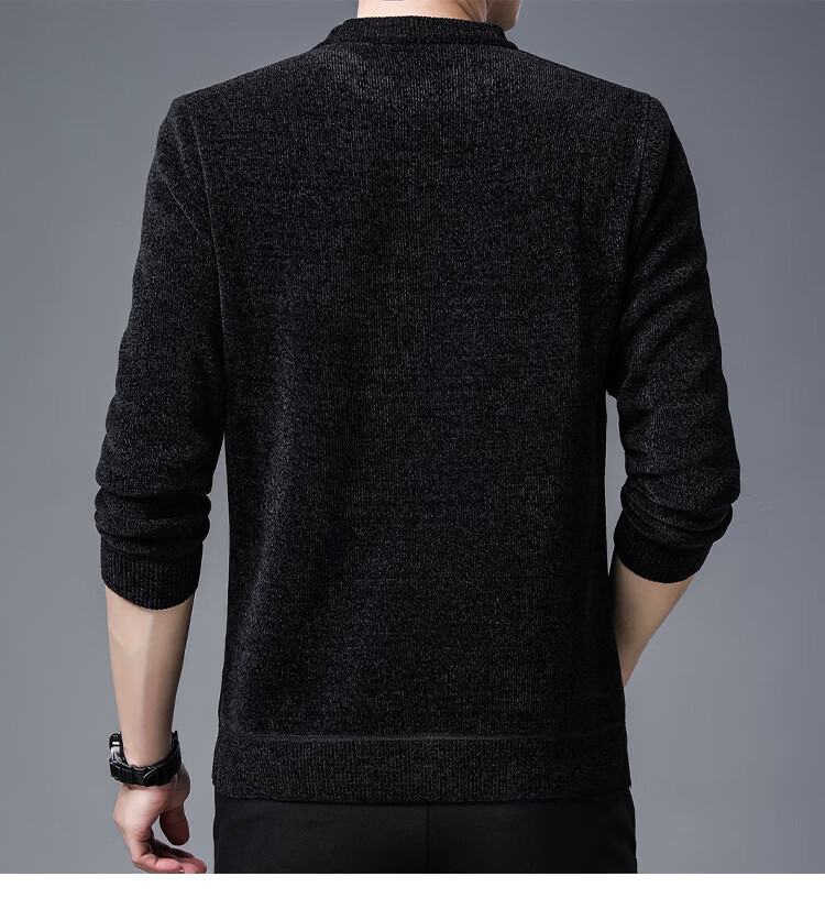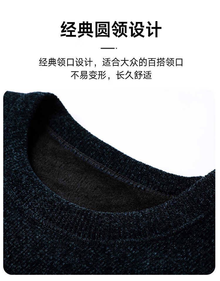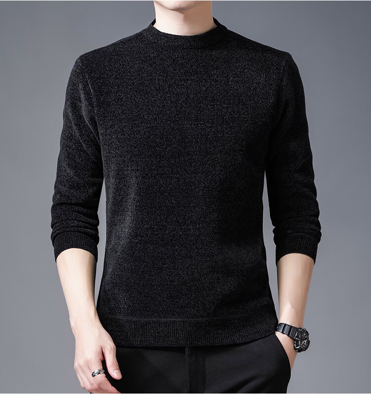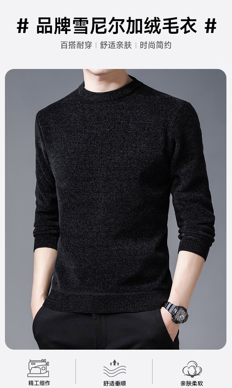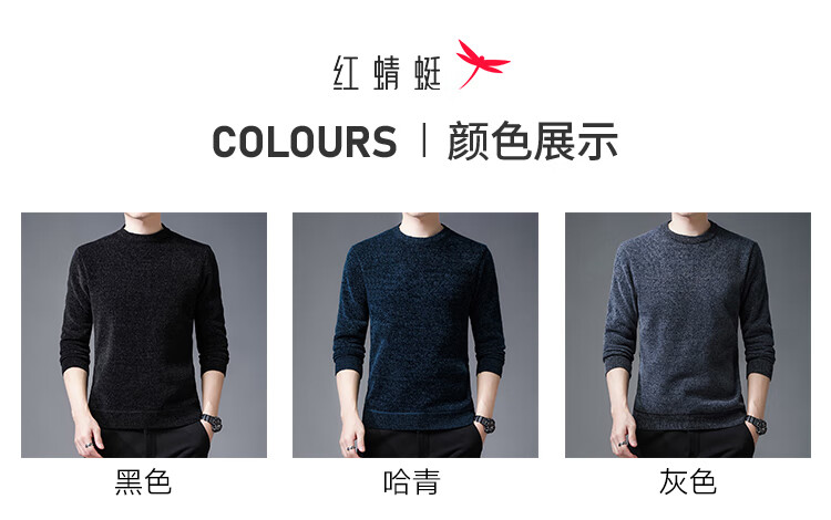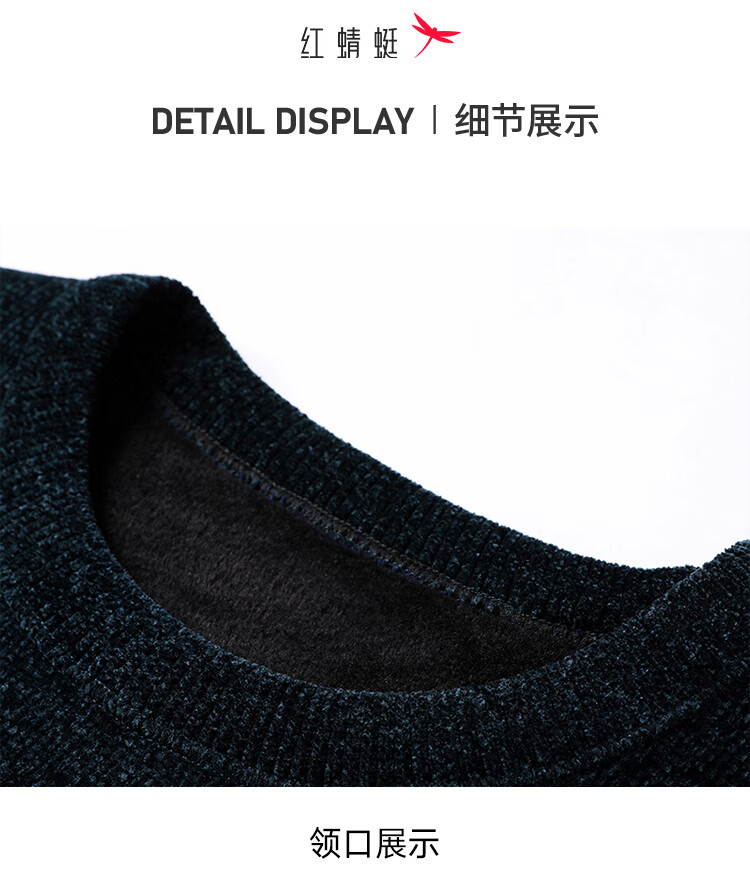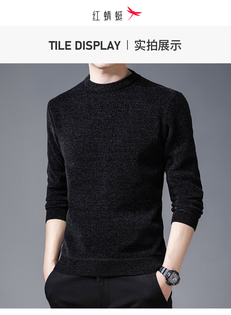 红蜻蜓(RED DRAGONFLY)毛衣男冬季加厚加绒保暖舒适圆领雪尼尔针织衫上衣打底 黑色 2XL