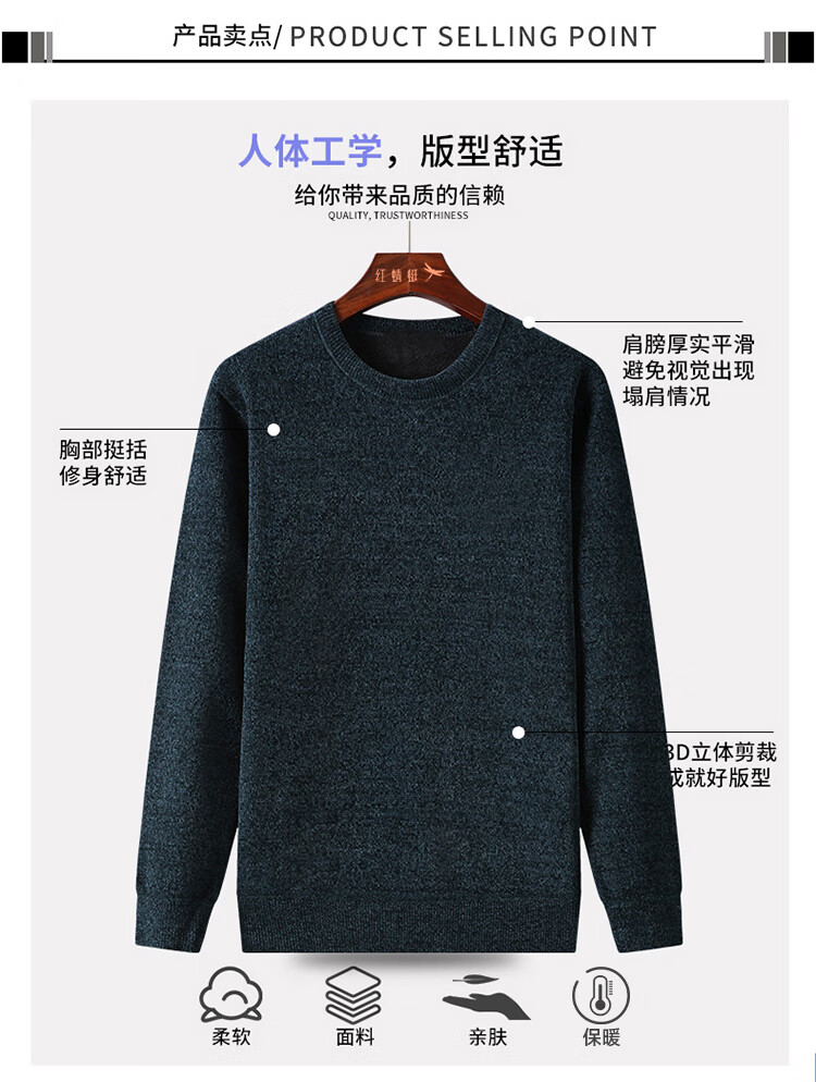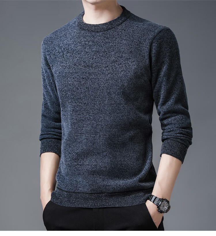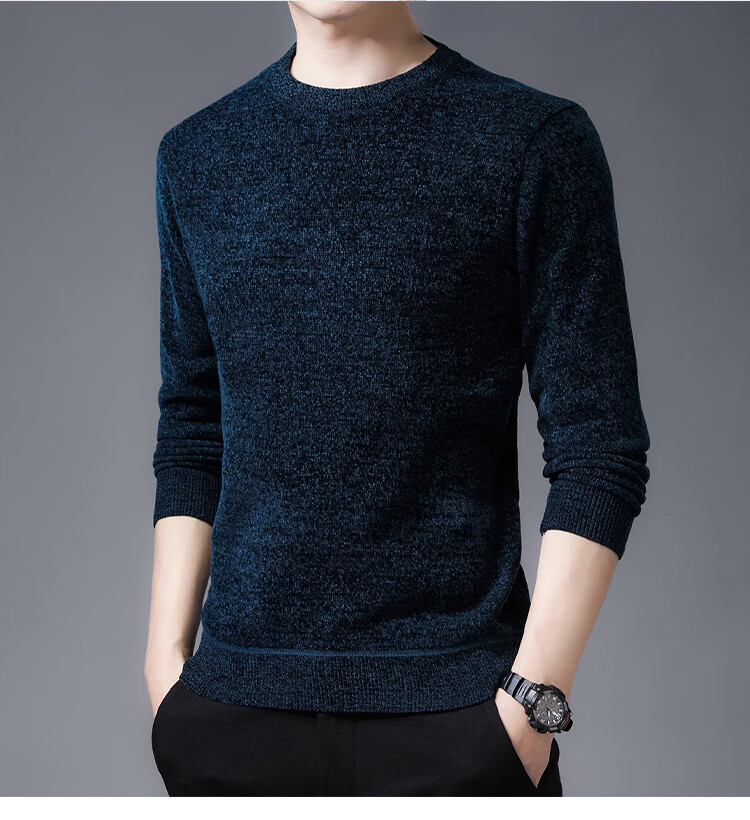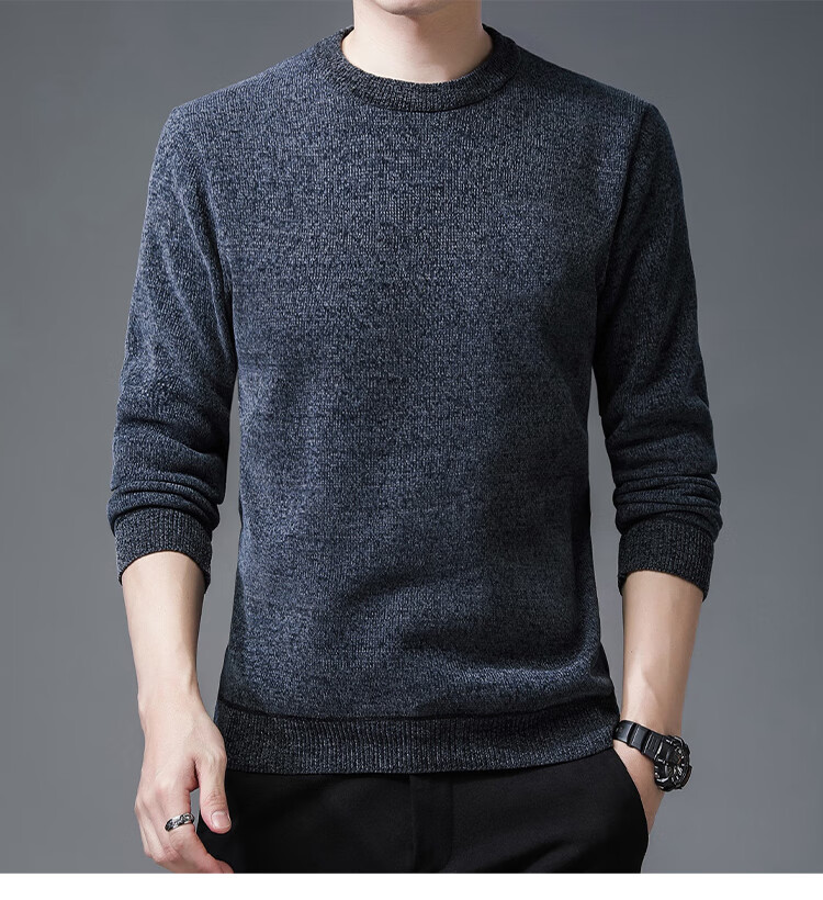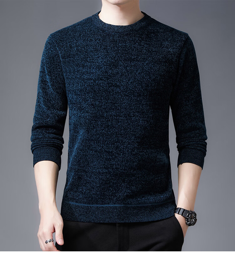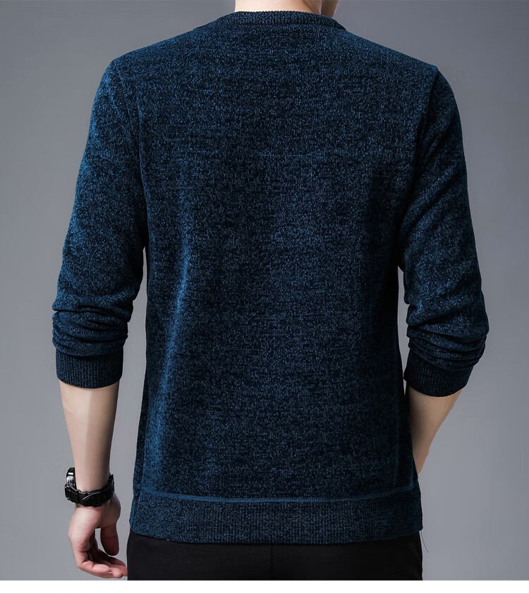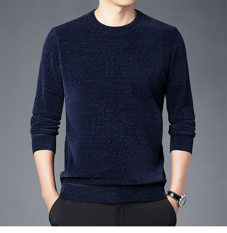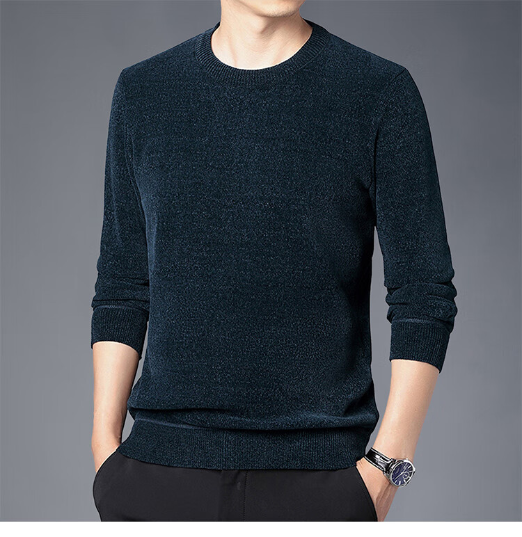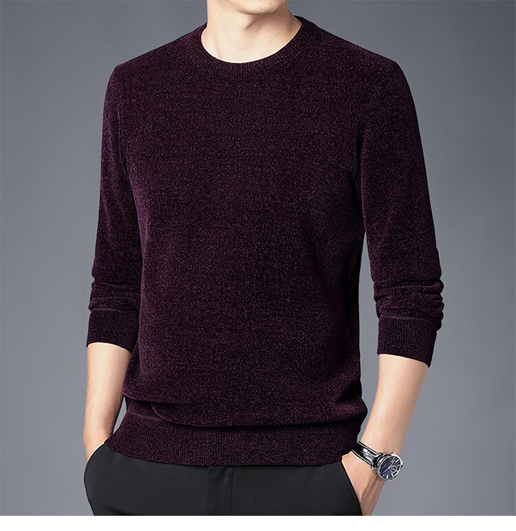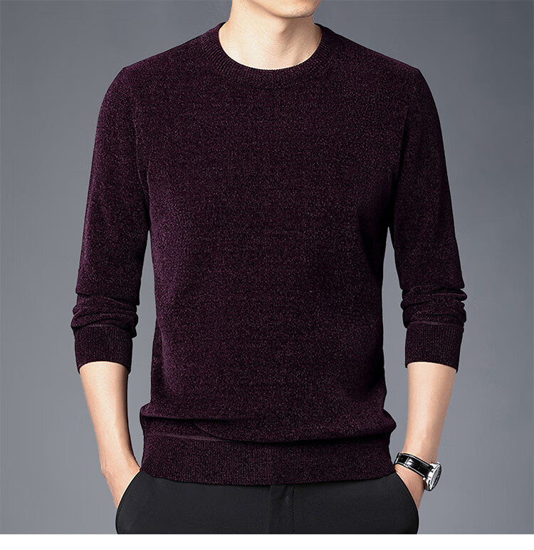 红蜻蜓(RED DRAGONFLY)毛衣男冬季加厚加绒保暖舒适圆领雪尼尔针织衫上衣打底 黑色 2XL