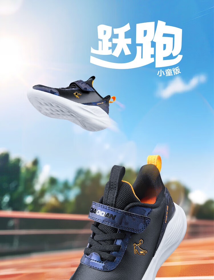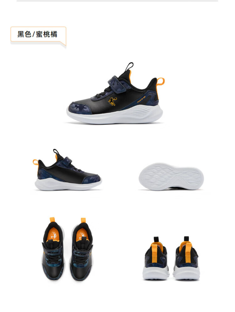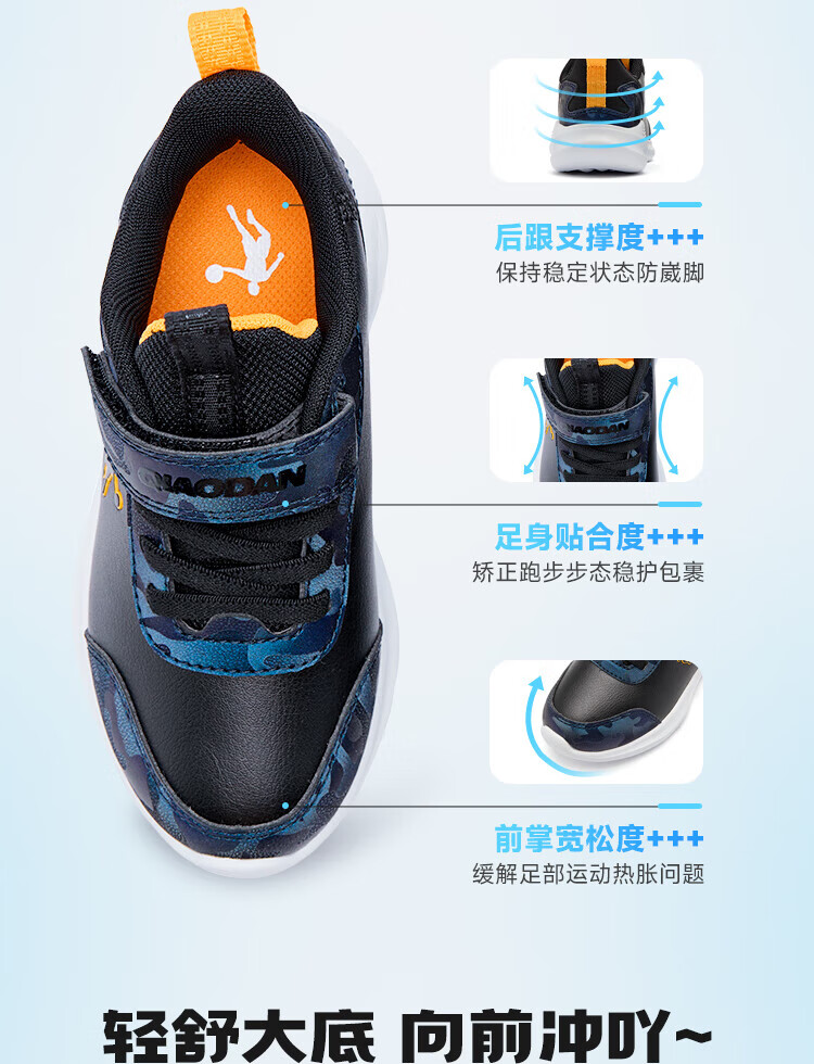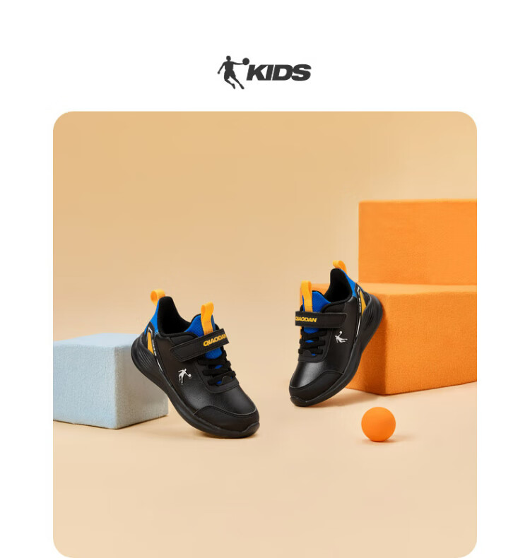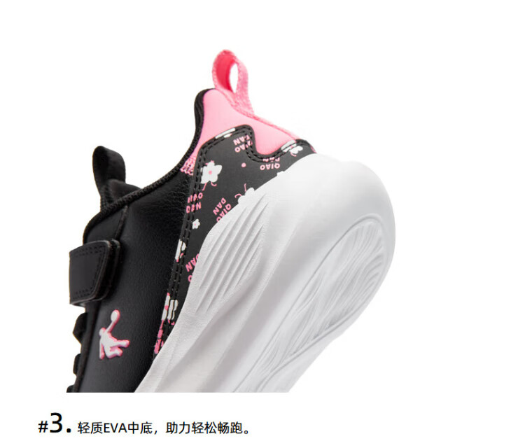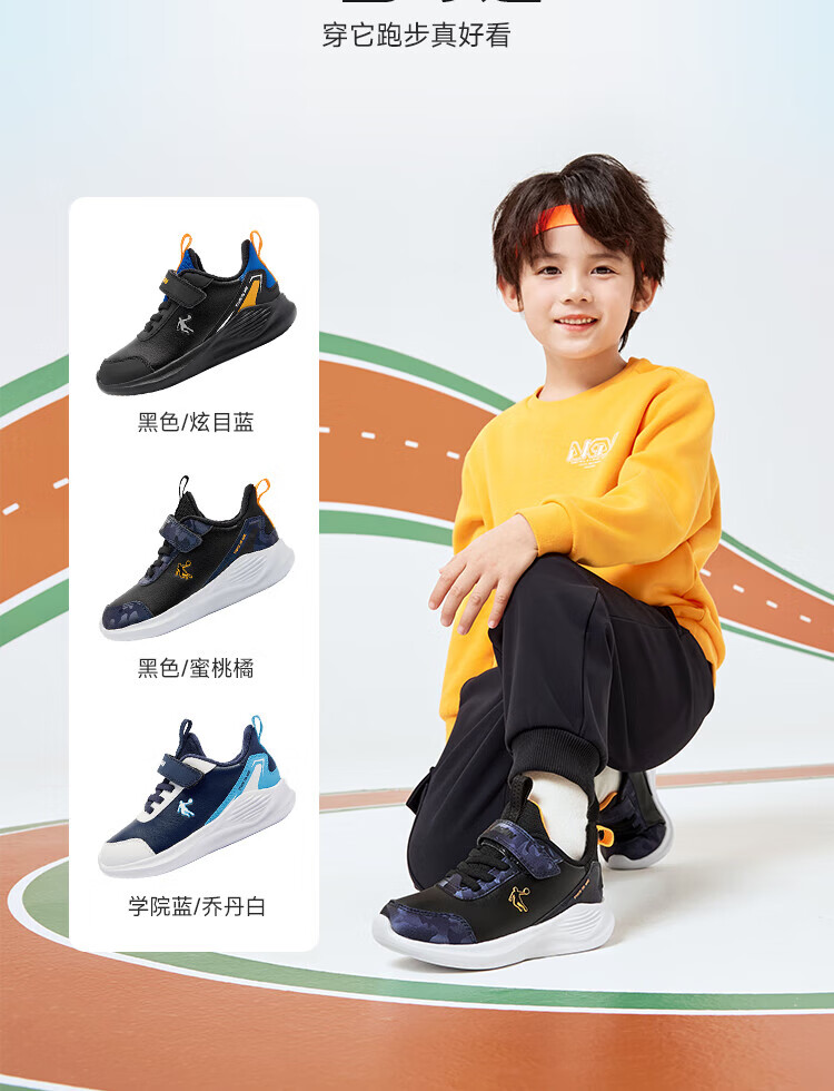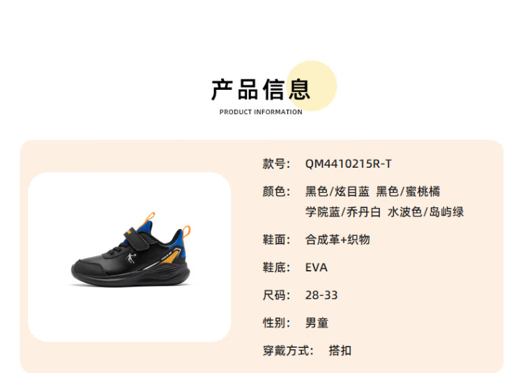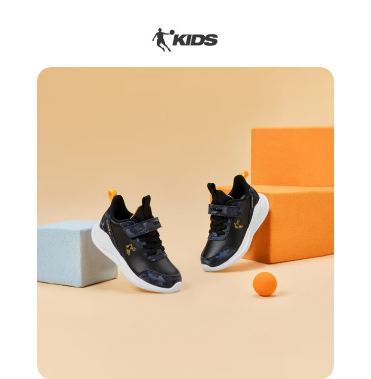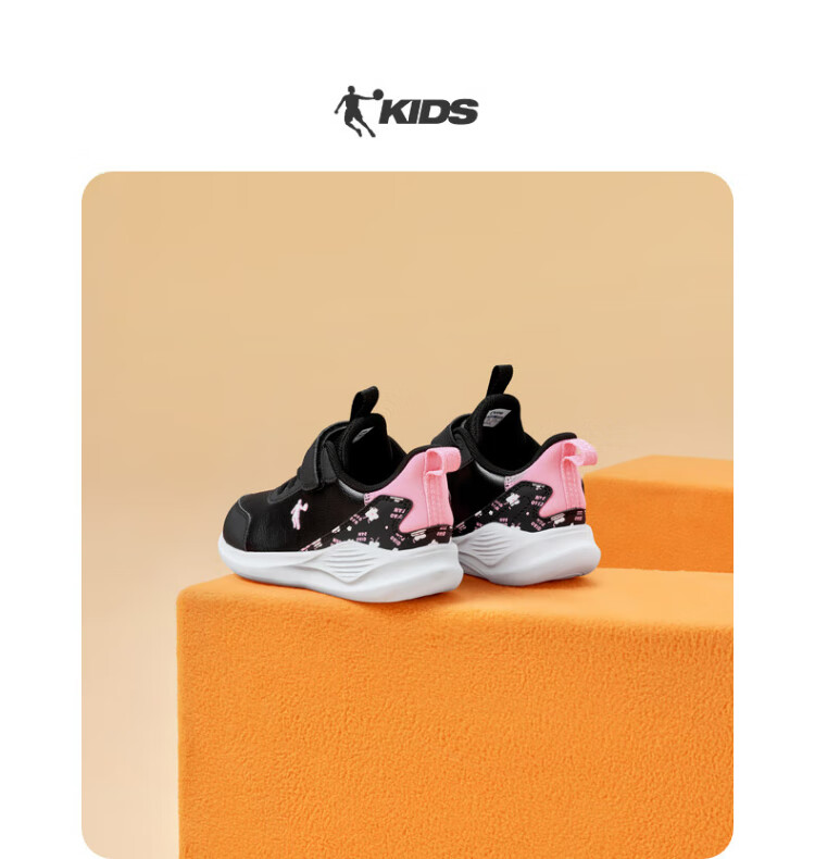 乔丹男童跑步鞋小童冬季革面运动鞋魔术贴童鞋 黑色/蜜桃橘32