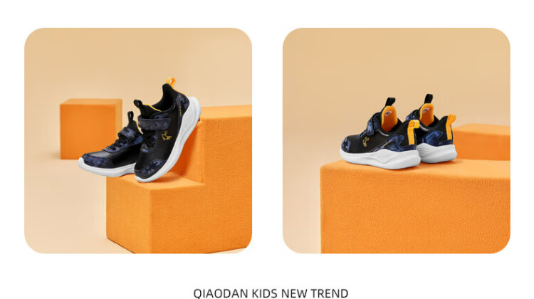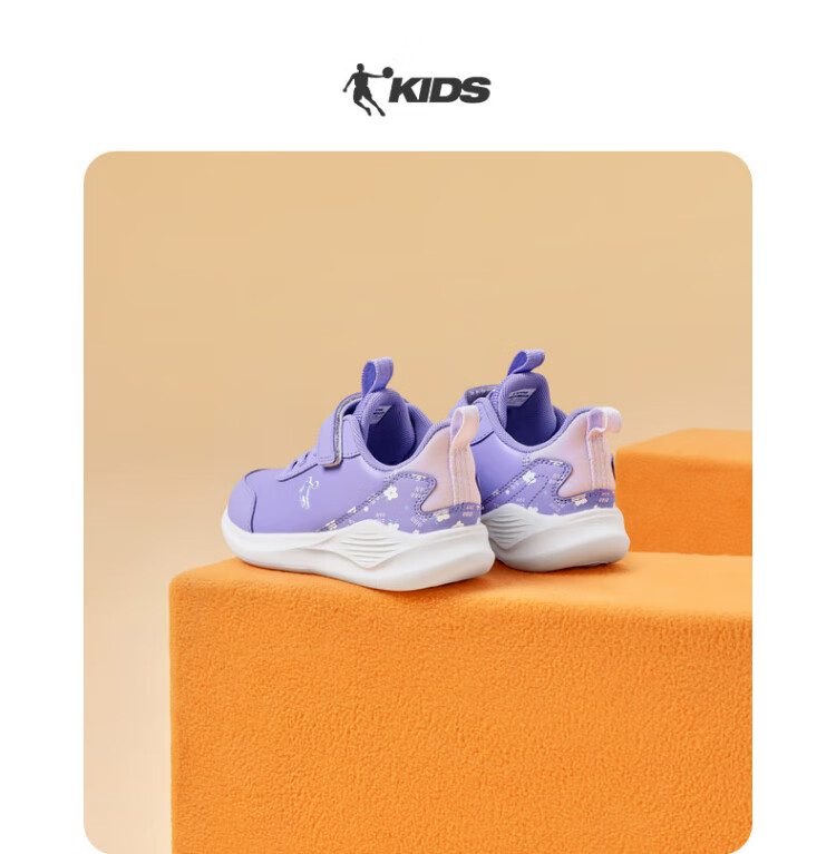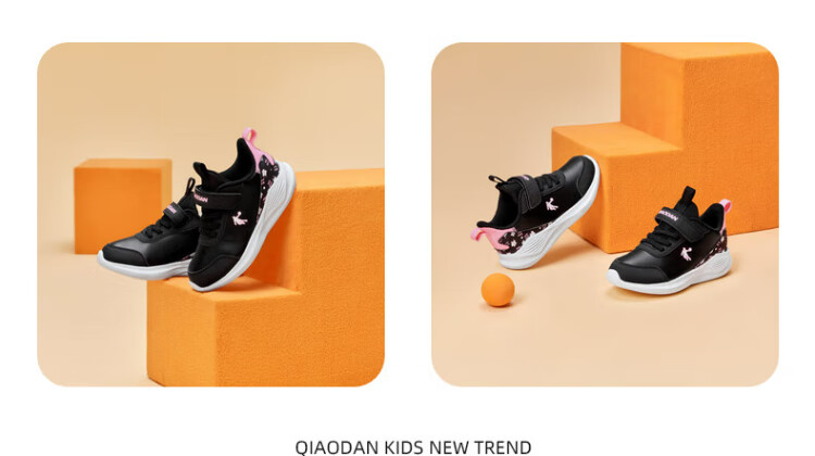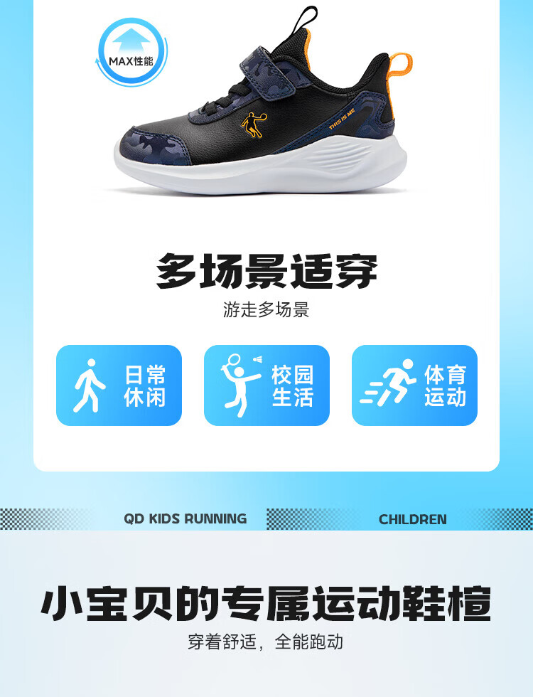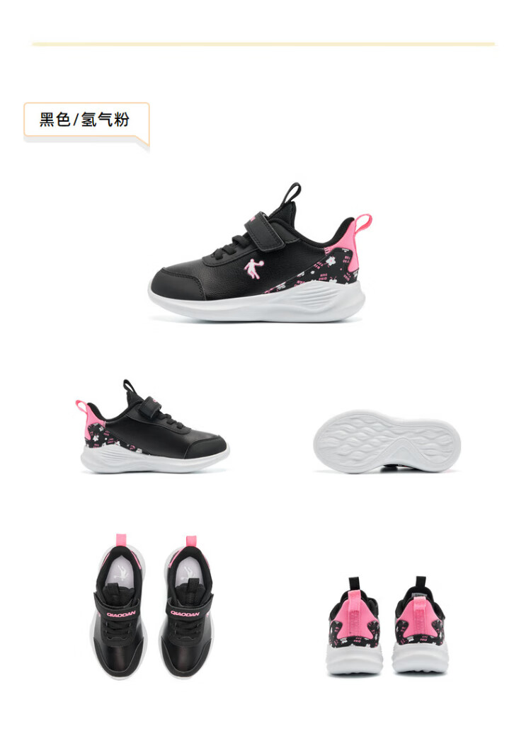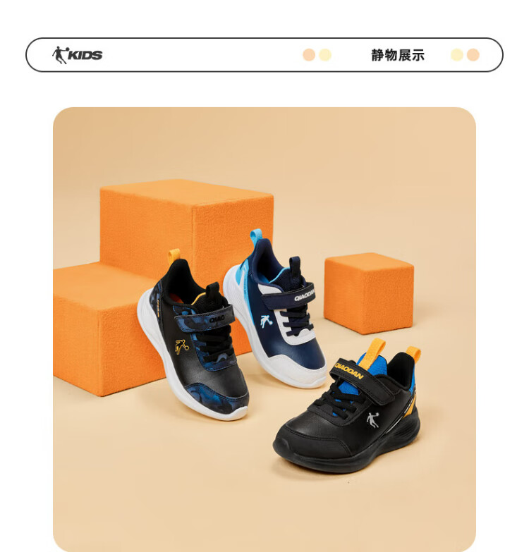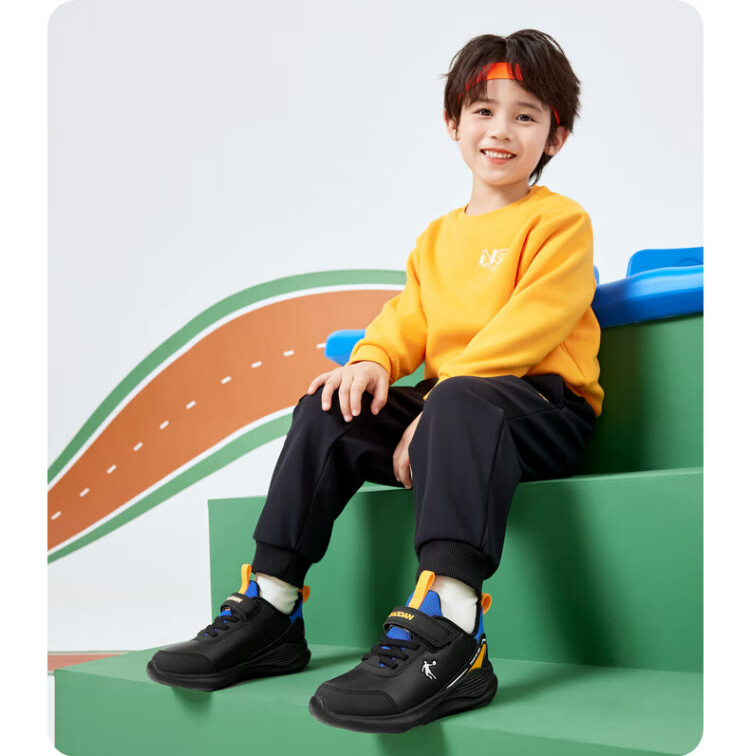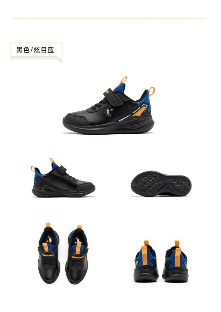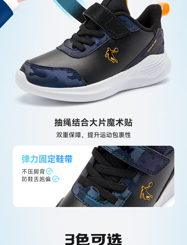 乔丹男童跑步鞋小童冬季革面运动鞋魔术贴童鞋 黑色/蜜桃橘32