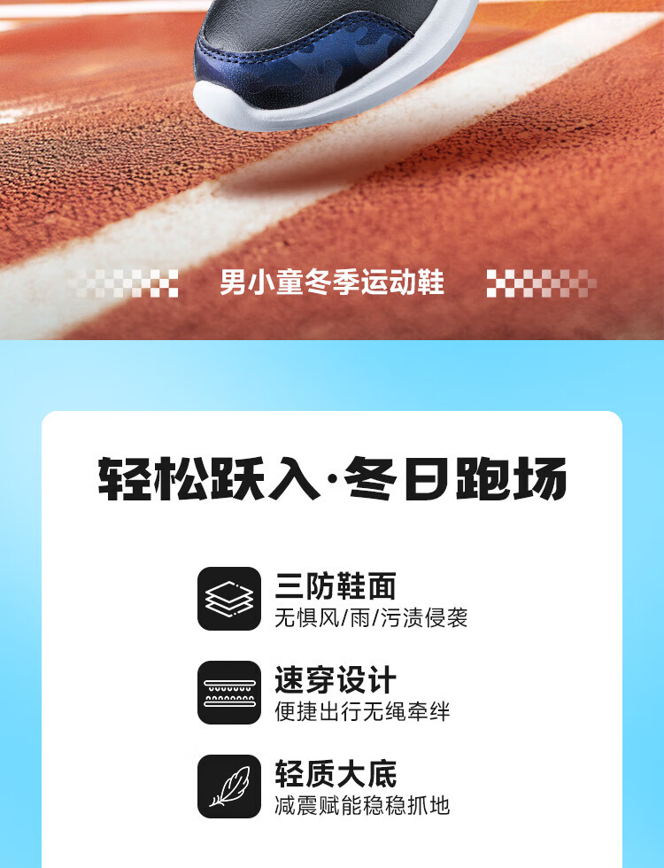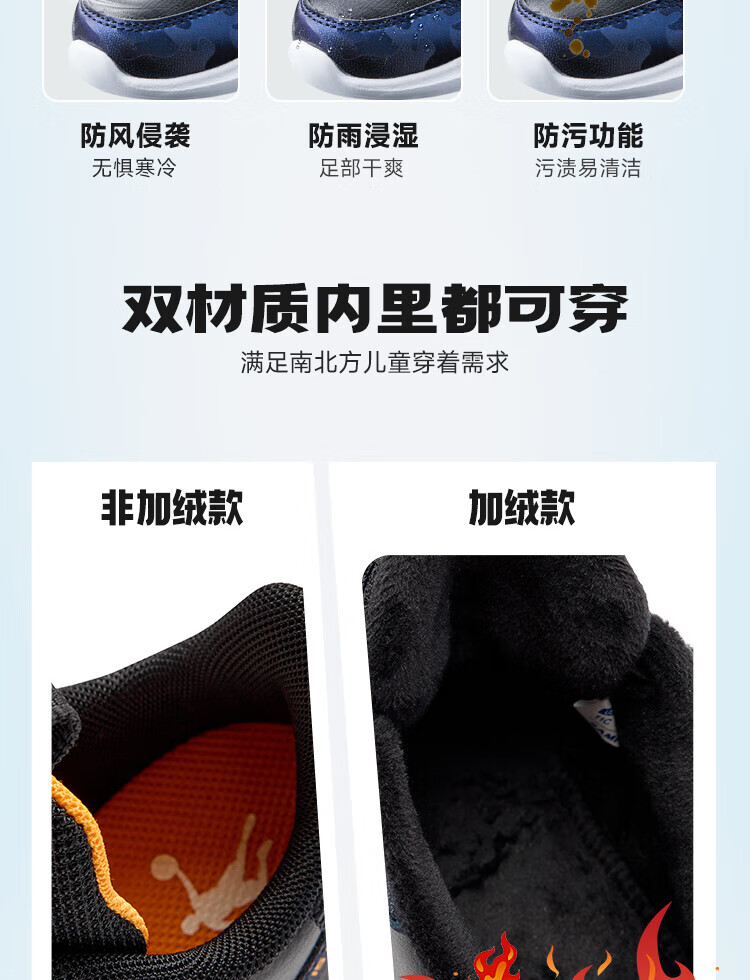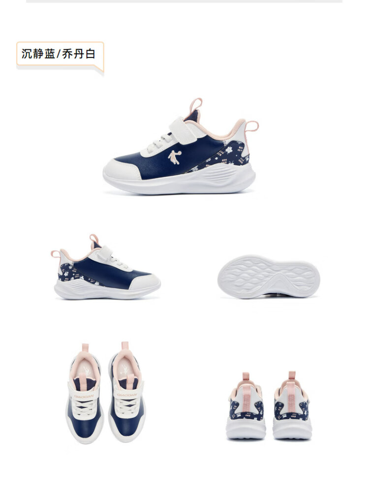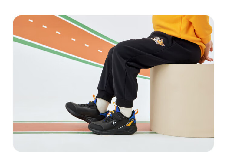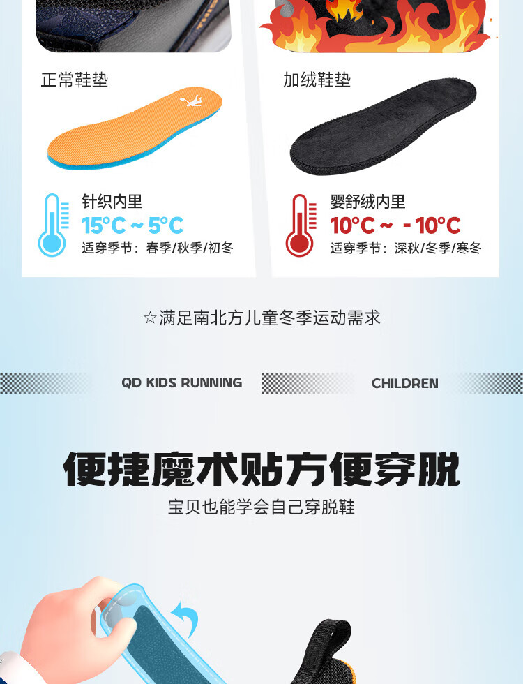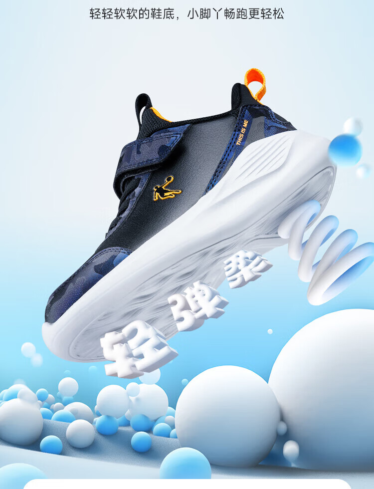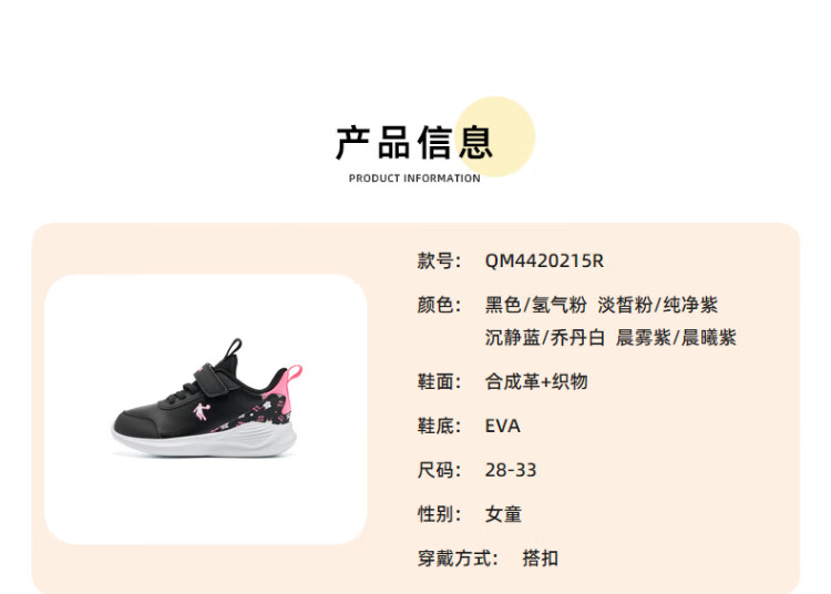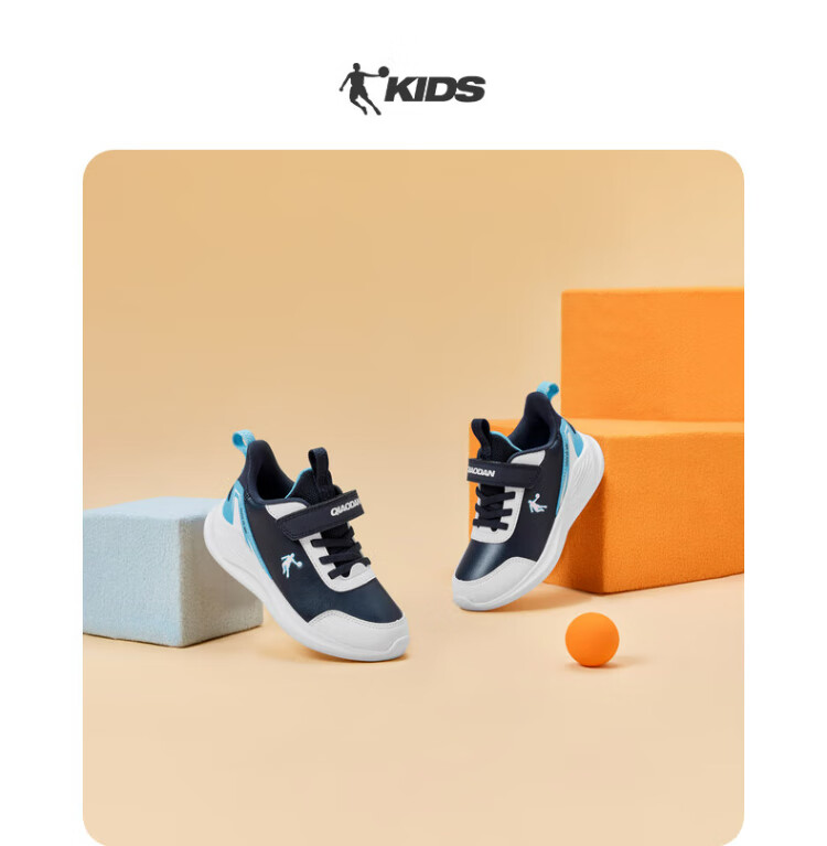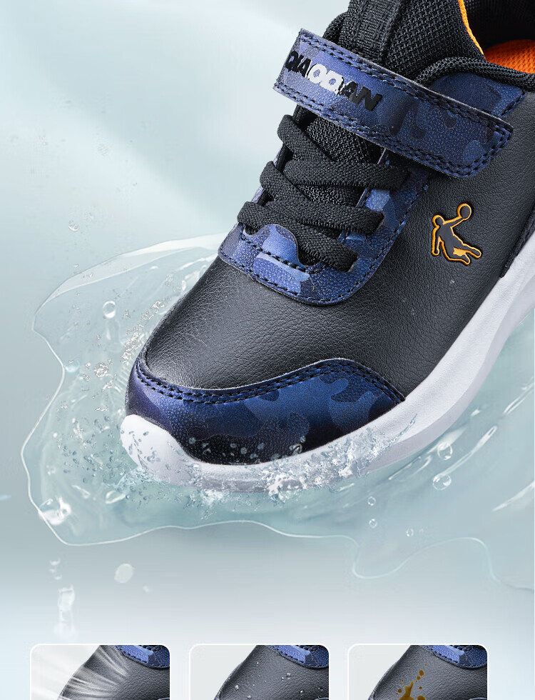 乔丹男童跑步鞋小童冬季革面运动鞋魔术贴童鞋 黑色/蜜桃橘32