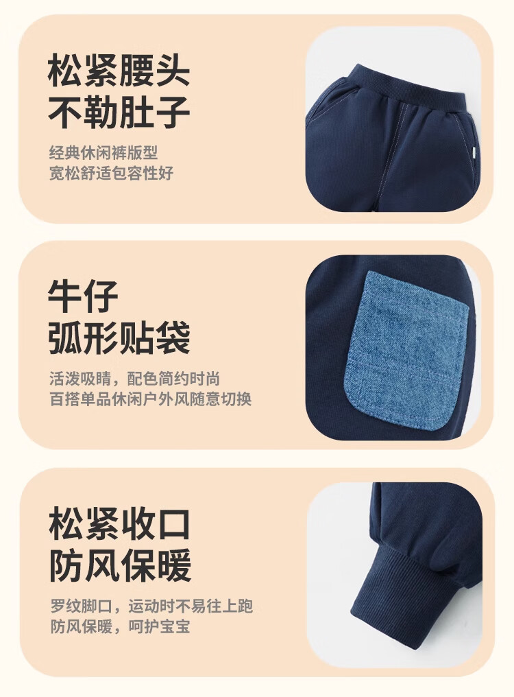 齐齐熊【一体绒】齐齐熊宝宝加绒裤子加厚冬款男童休闲裤儿童针织裤冬季