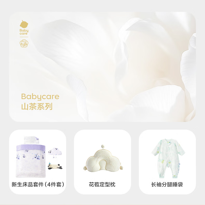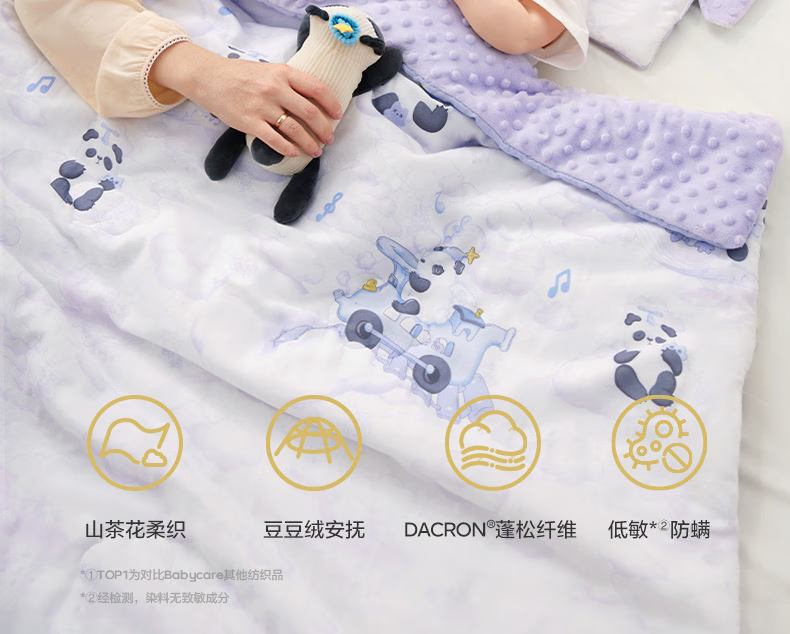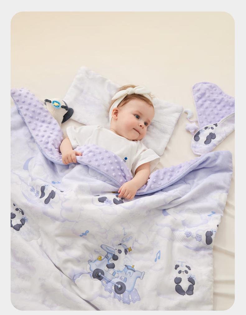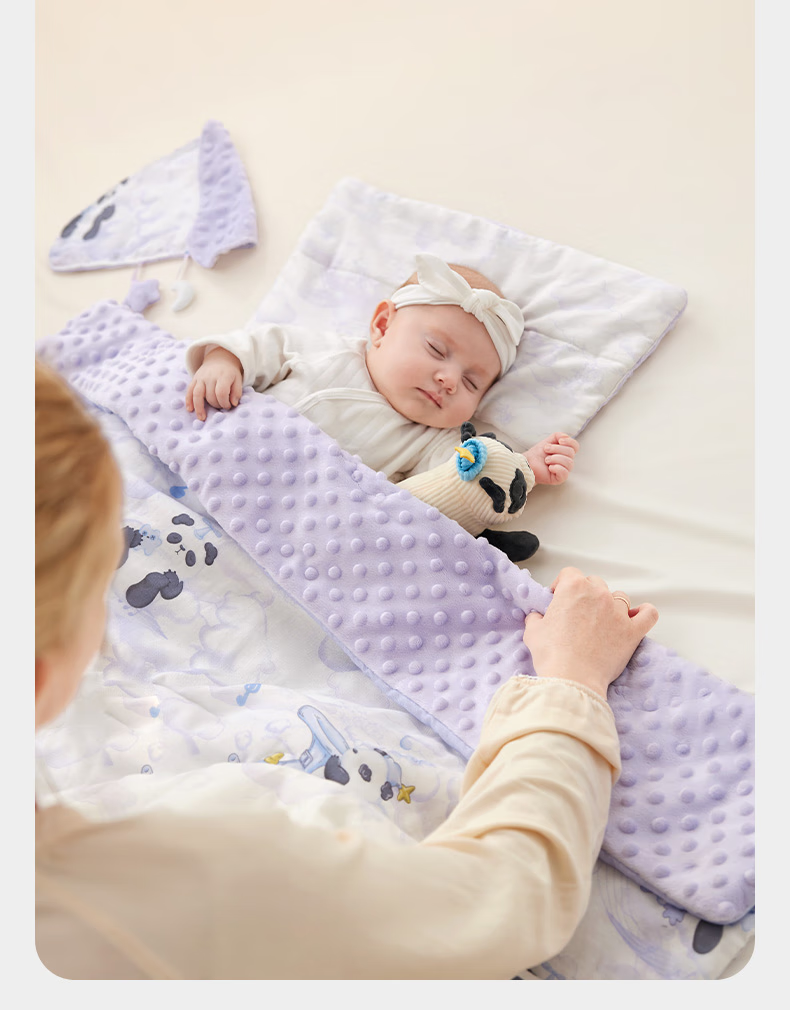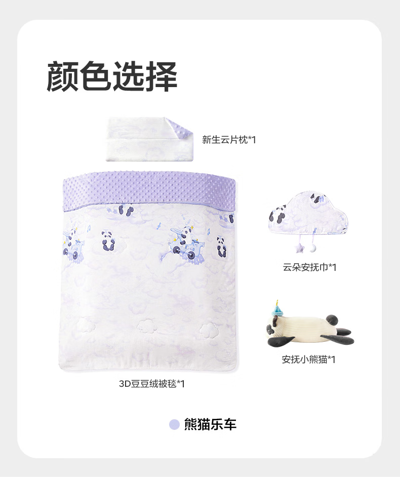 babycare山茶花新生儿豆豆绒床品四件套儿童午睡床上用品枕头被套熊猫乐车