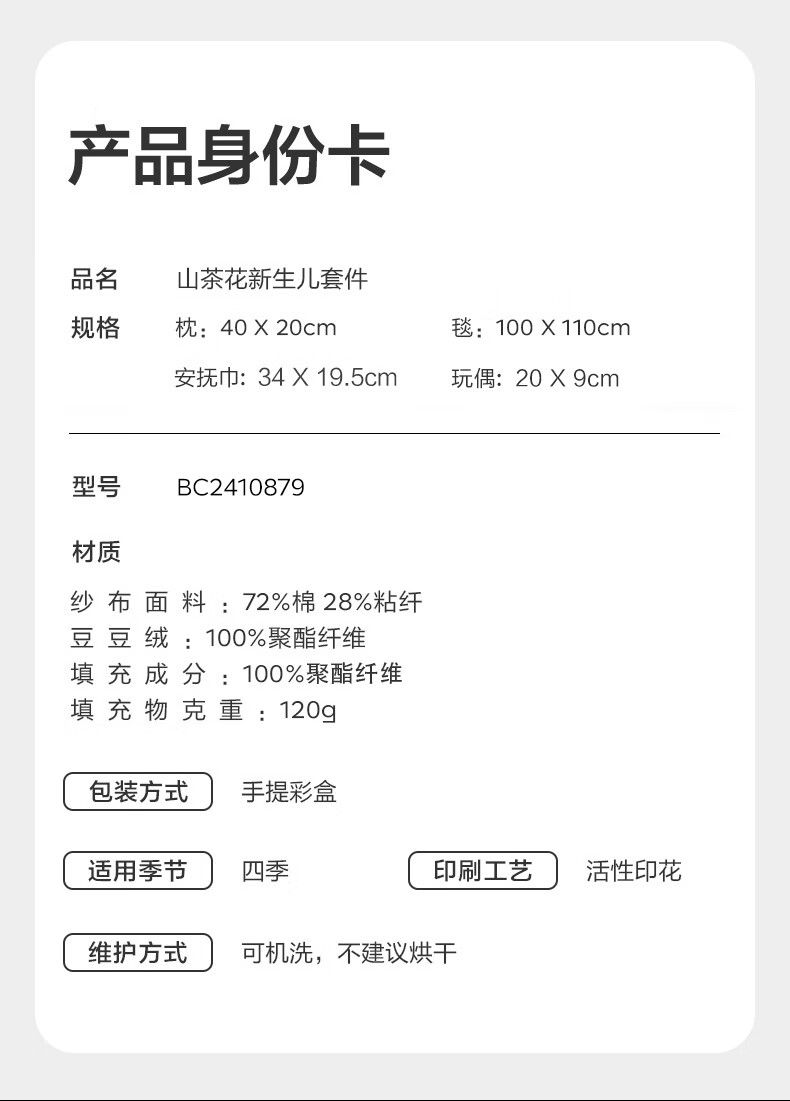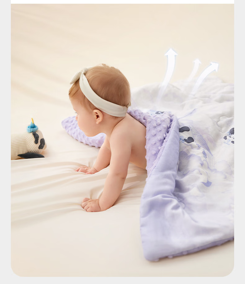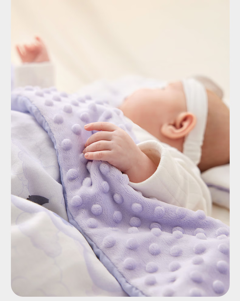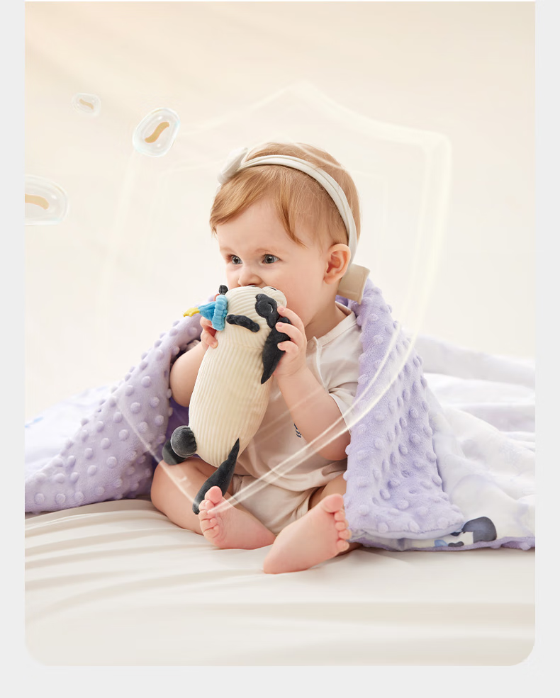babycare山茶花新生儿豆豆绒床品四件套儿童午睡床上用品枕头被套熊猫乐车