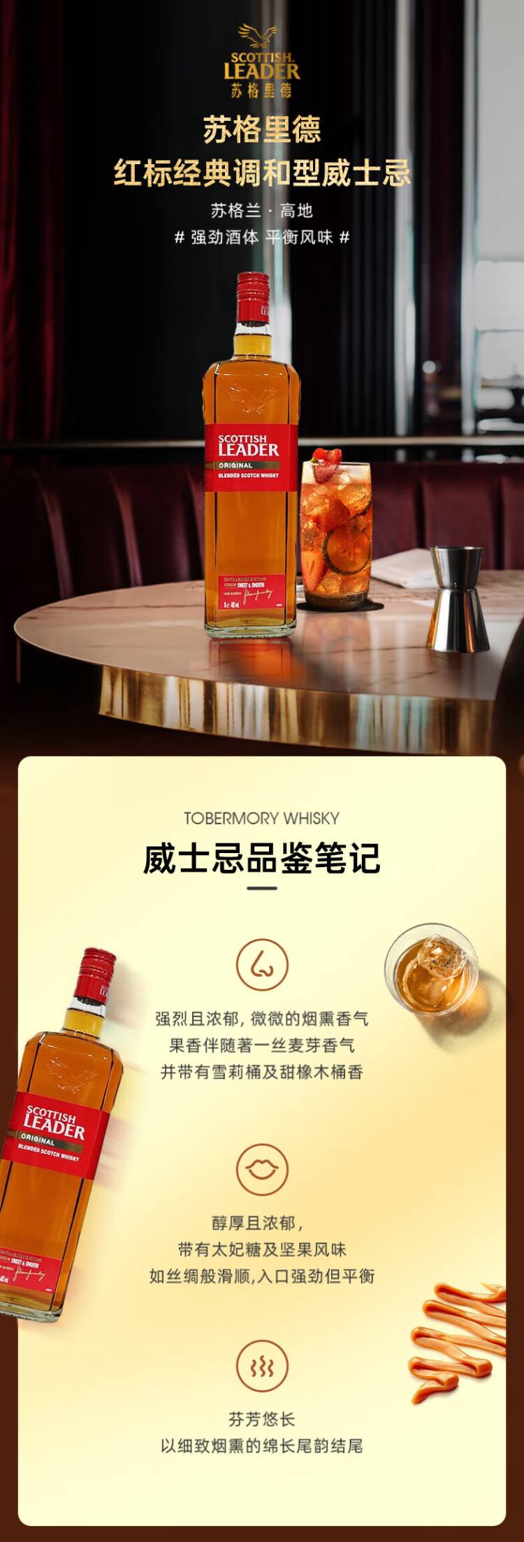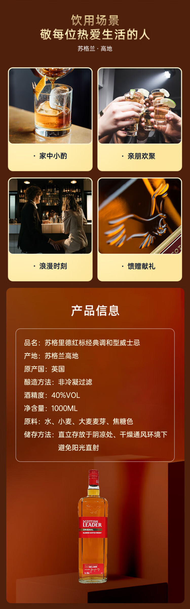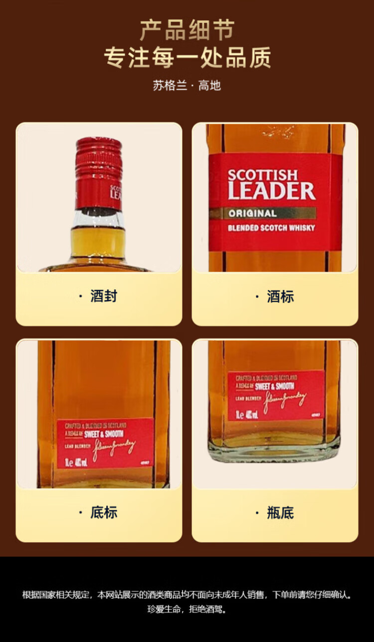 Scottish leader Sugrid red label classic Scottish highland blended whiskey 1000ml imported wine