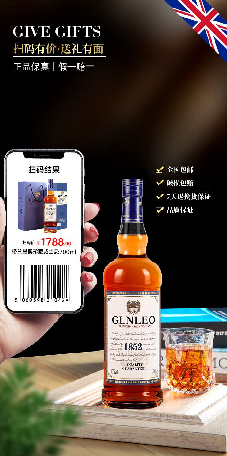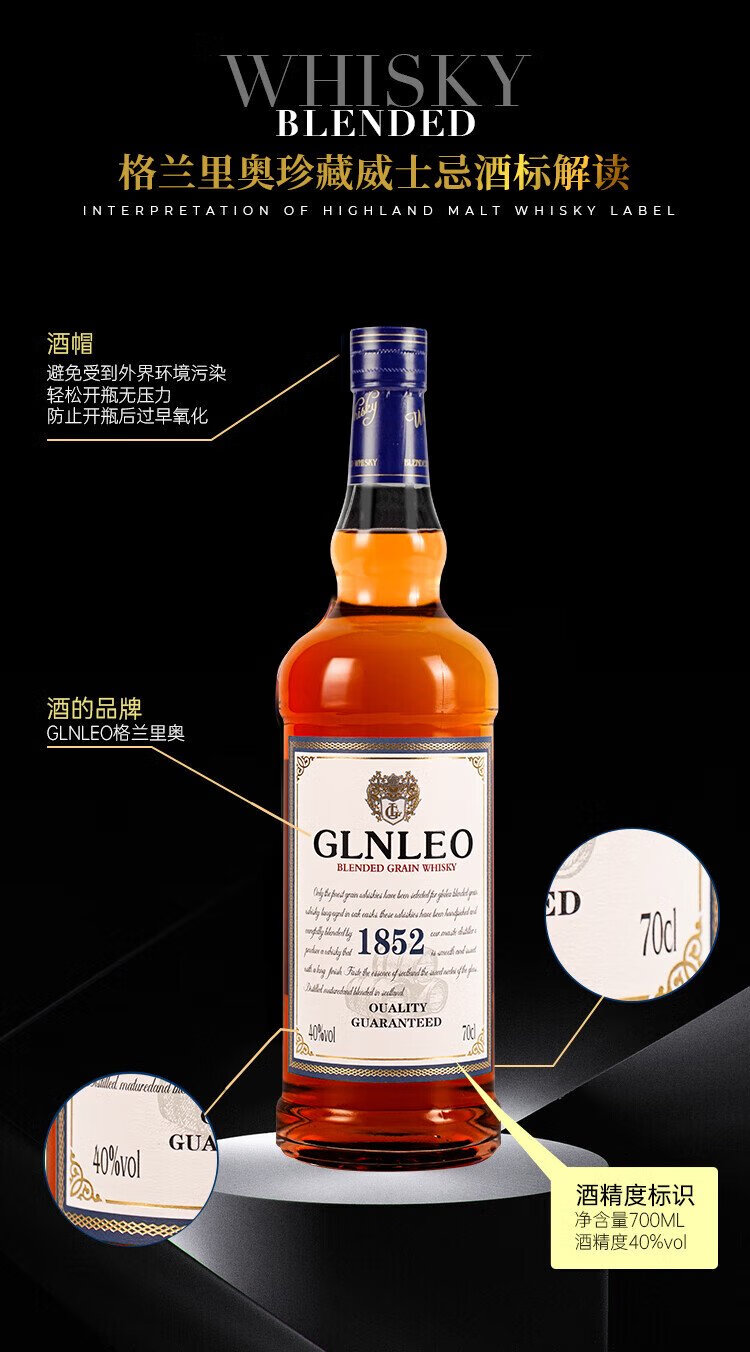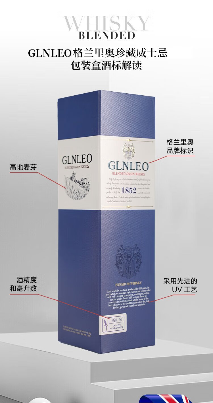 格兰尼维英国进口格兰里奥高地麦芽威士忌洋酒烈酒基酒40度礼盒装700ML