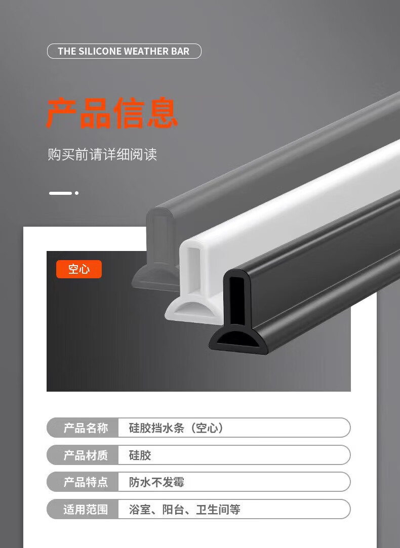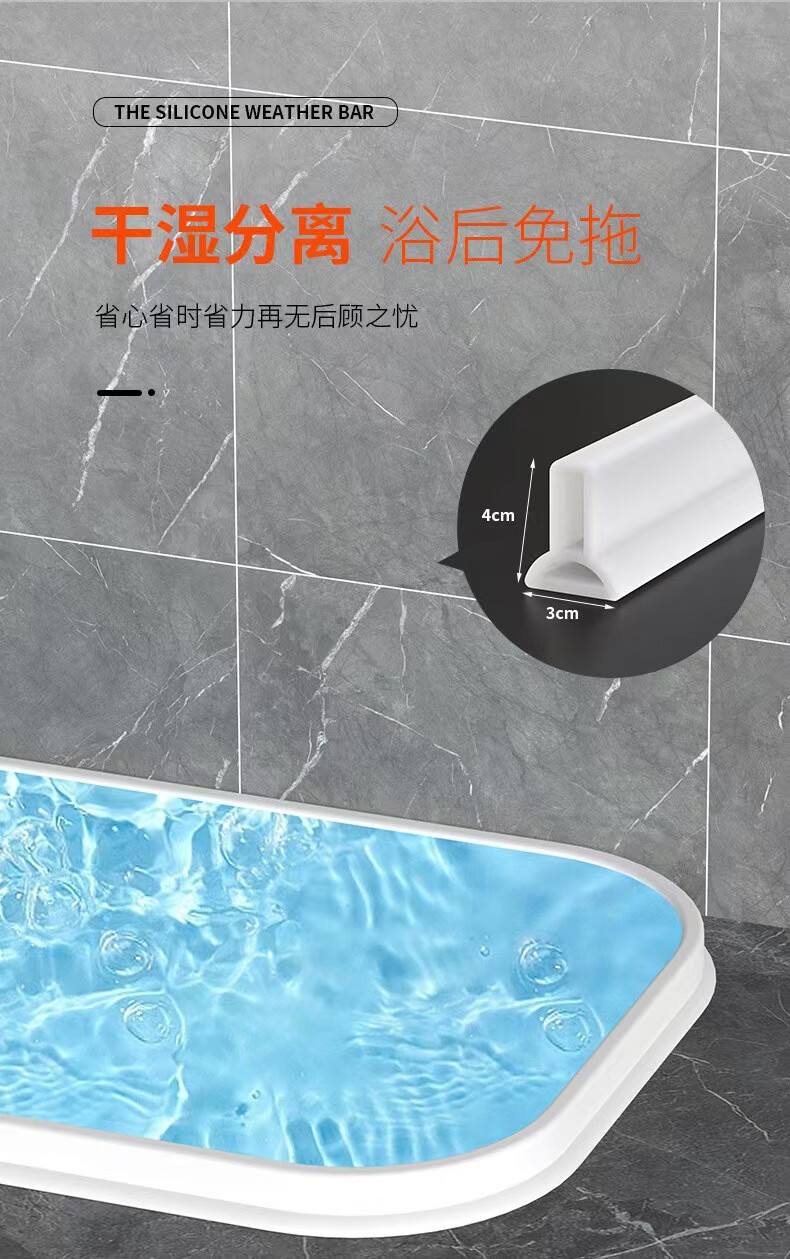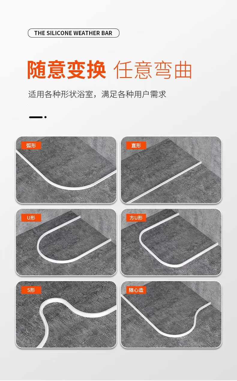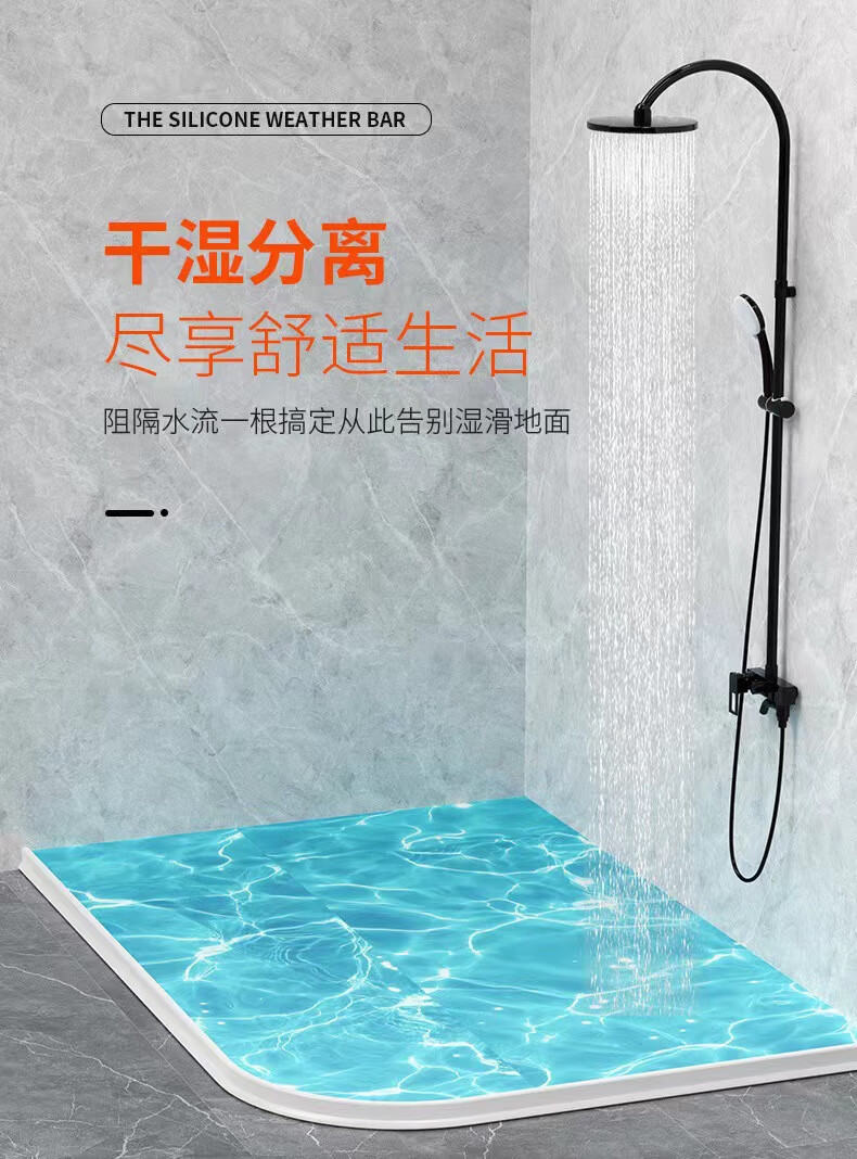 Dajujiang bathroom water-blocking strip silicone toilet wet and dry separation waterproof strip 200cm self-adhesive water-blocking strip white