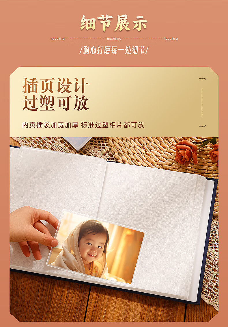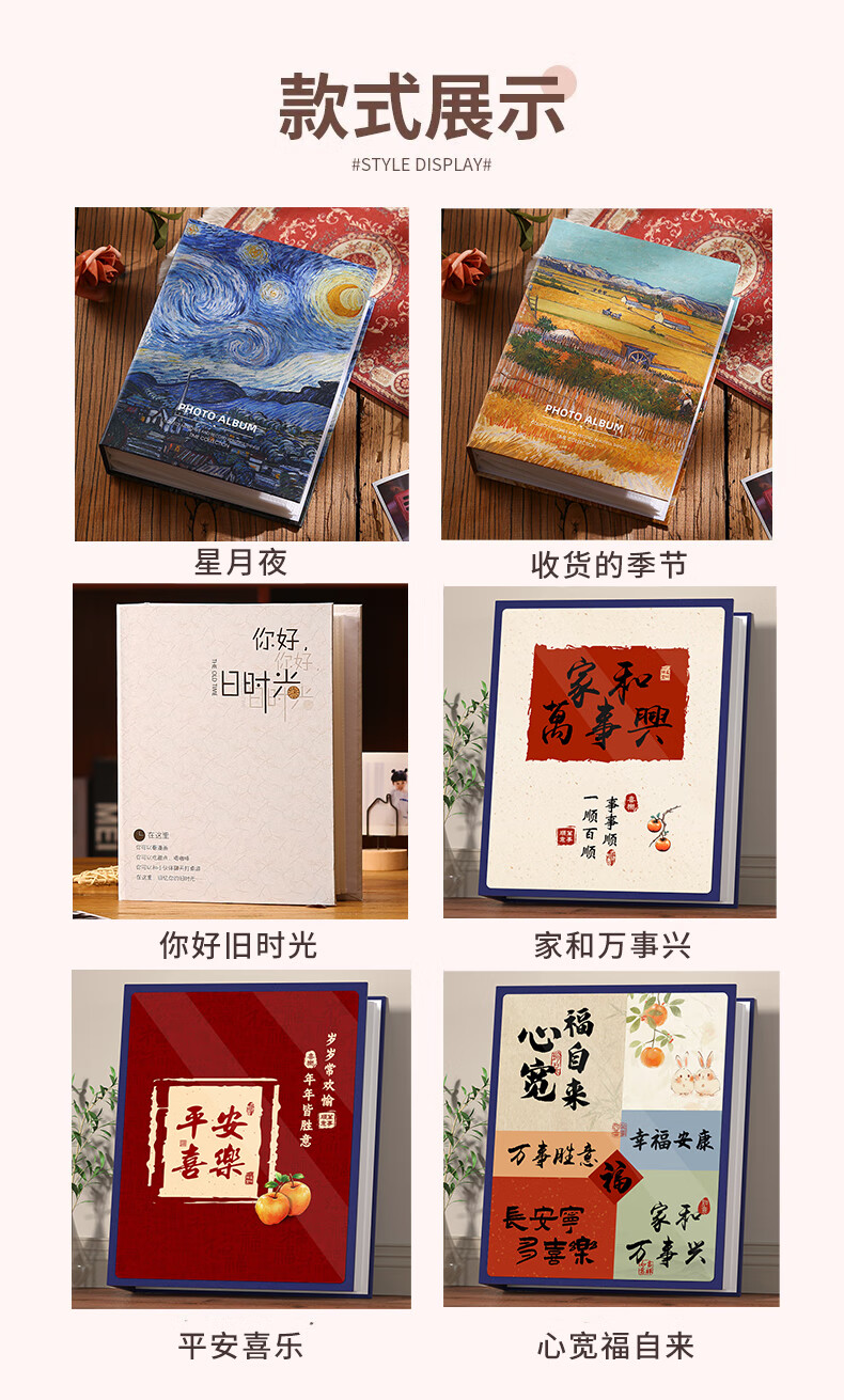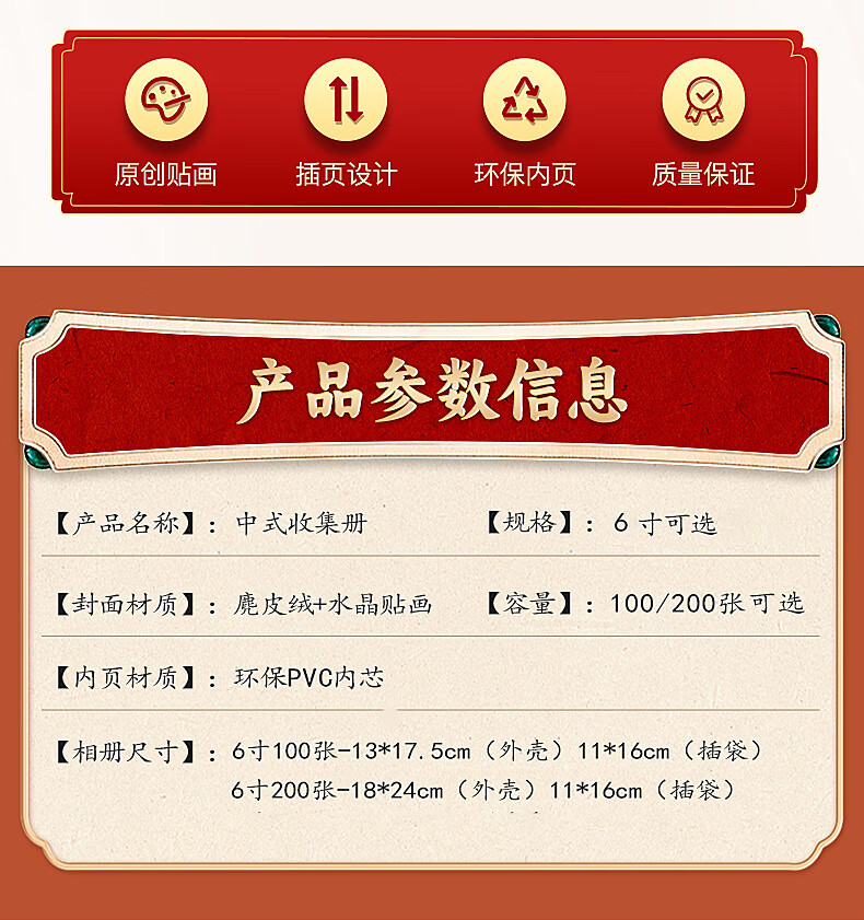 舒星国风相册影集6寸相册 家庭相册本纪念册大容量照片过塑插页式收纳册情侣相册宝宝成长纪念册 100张