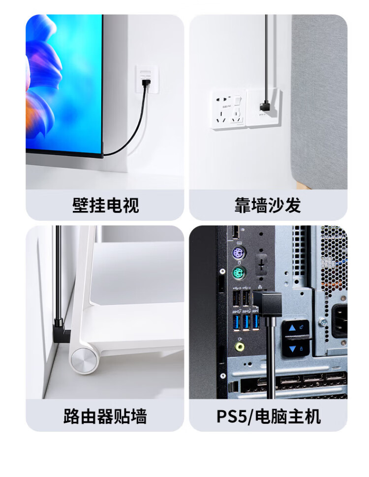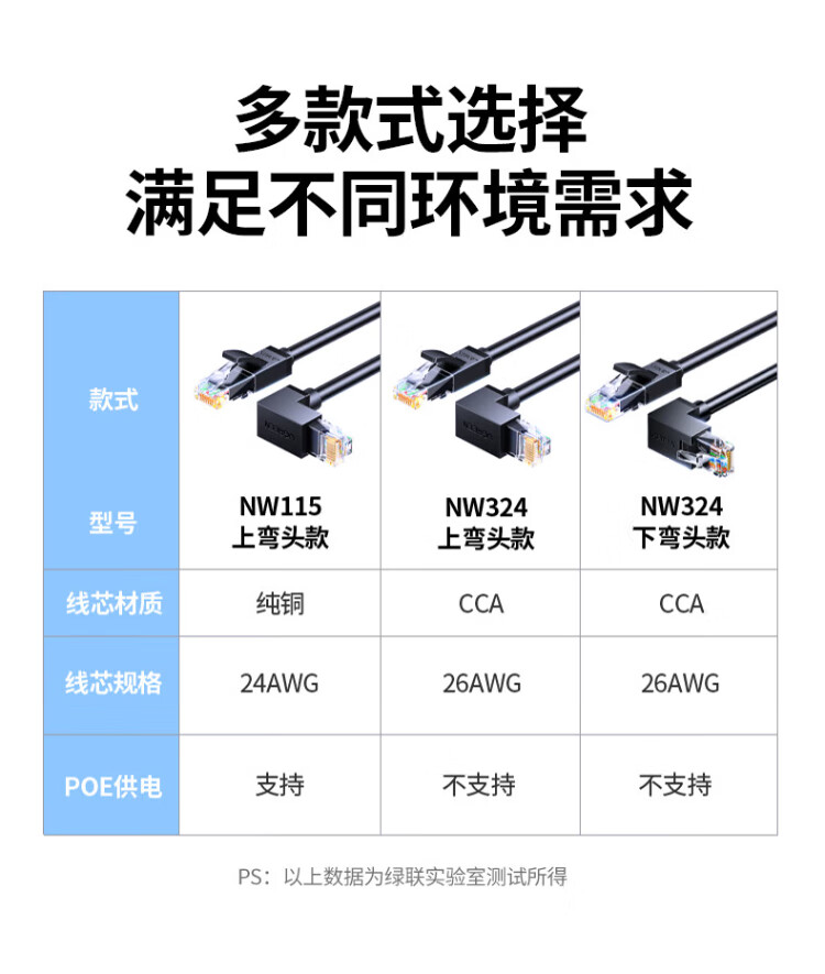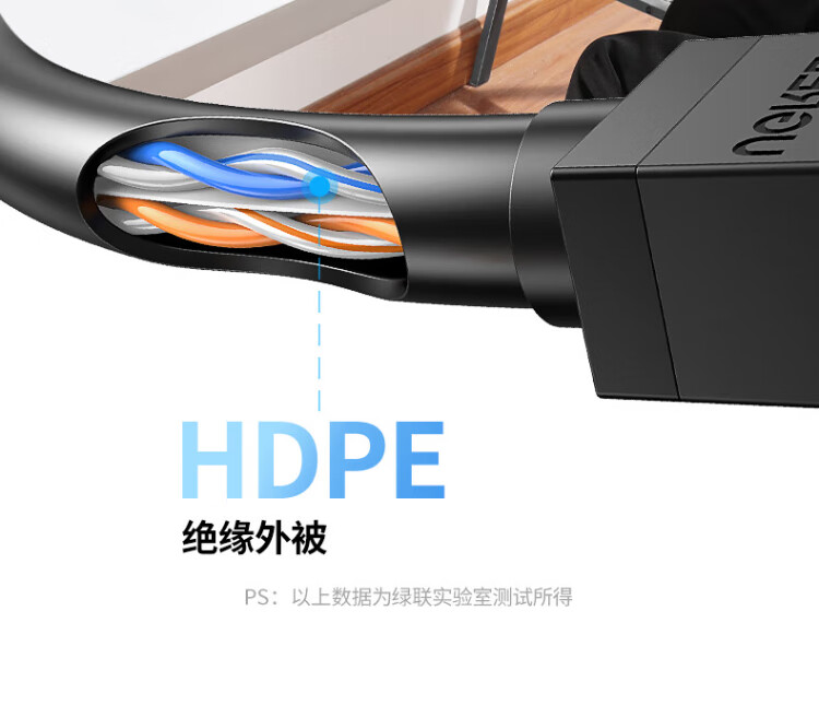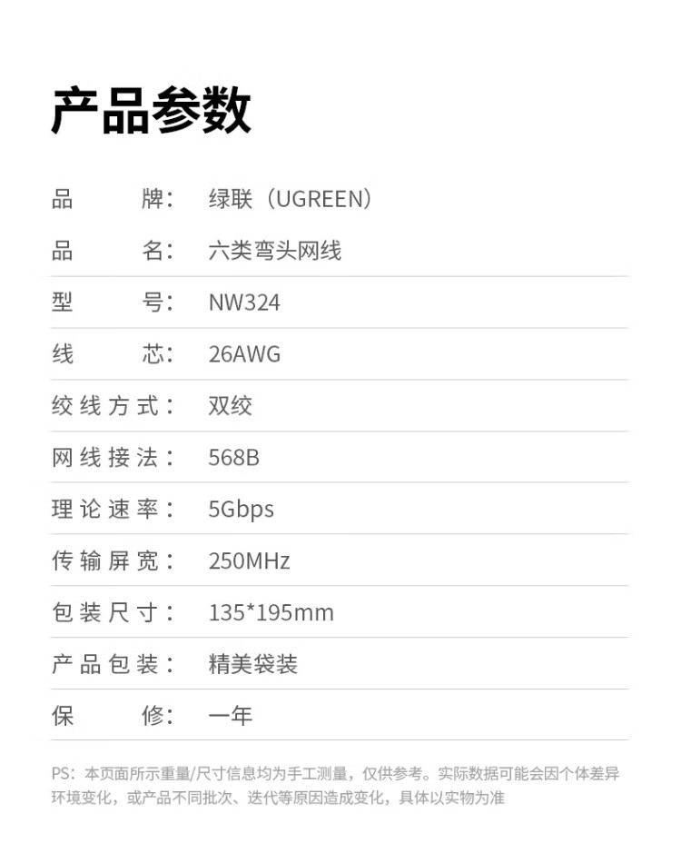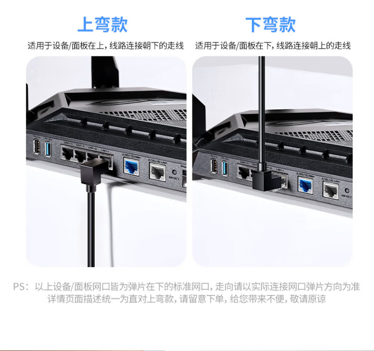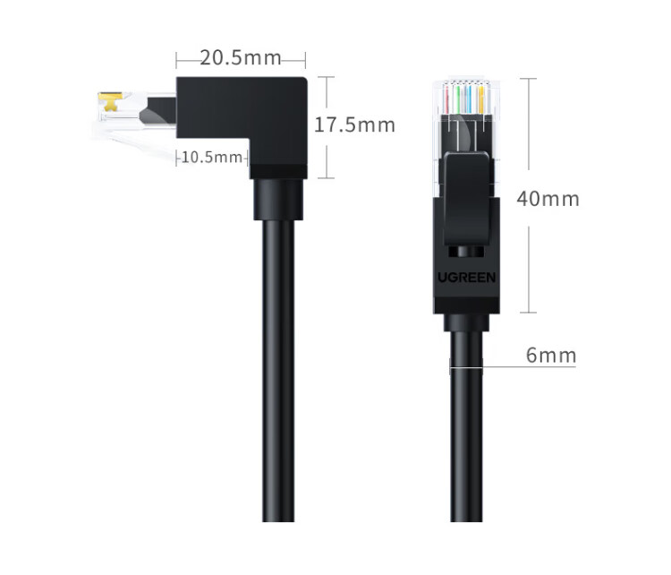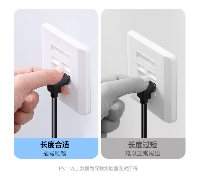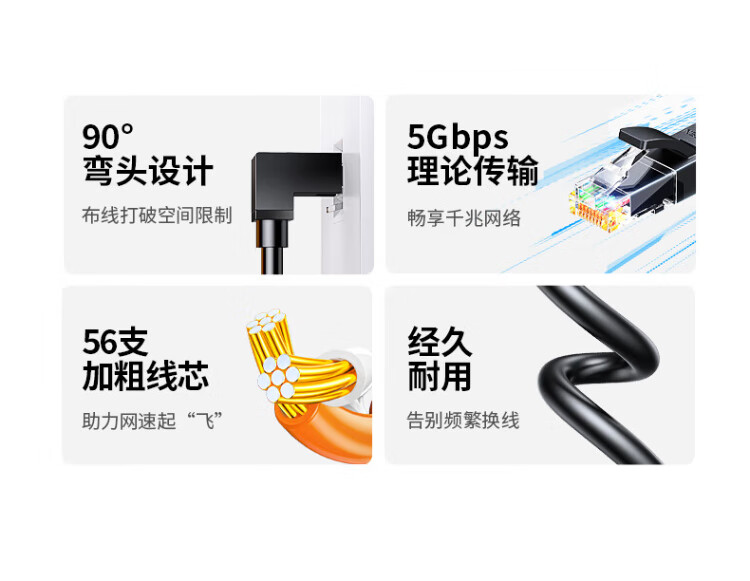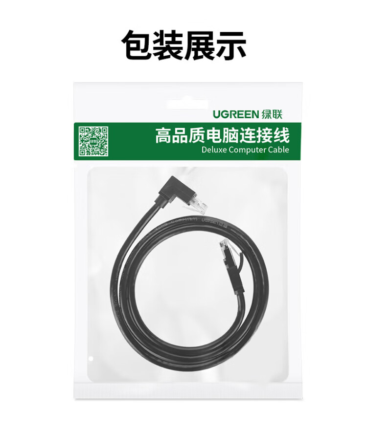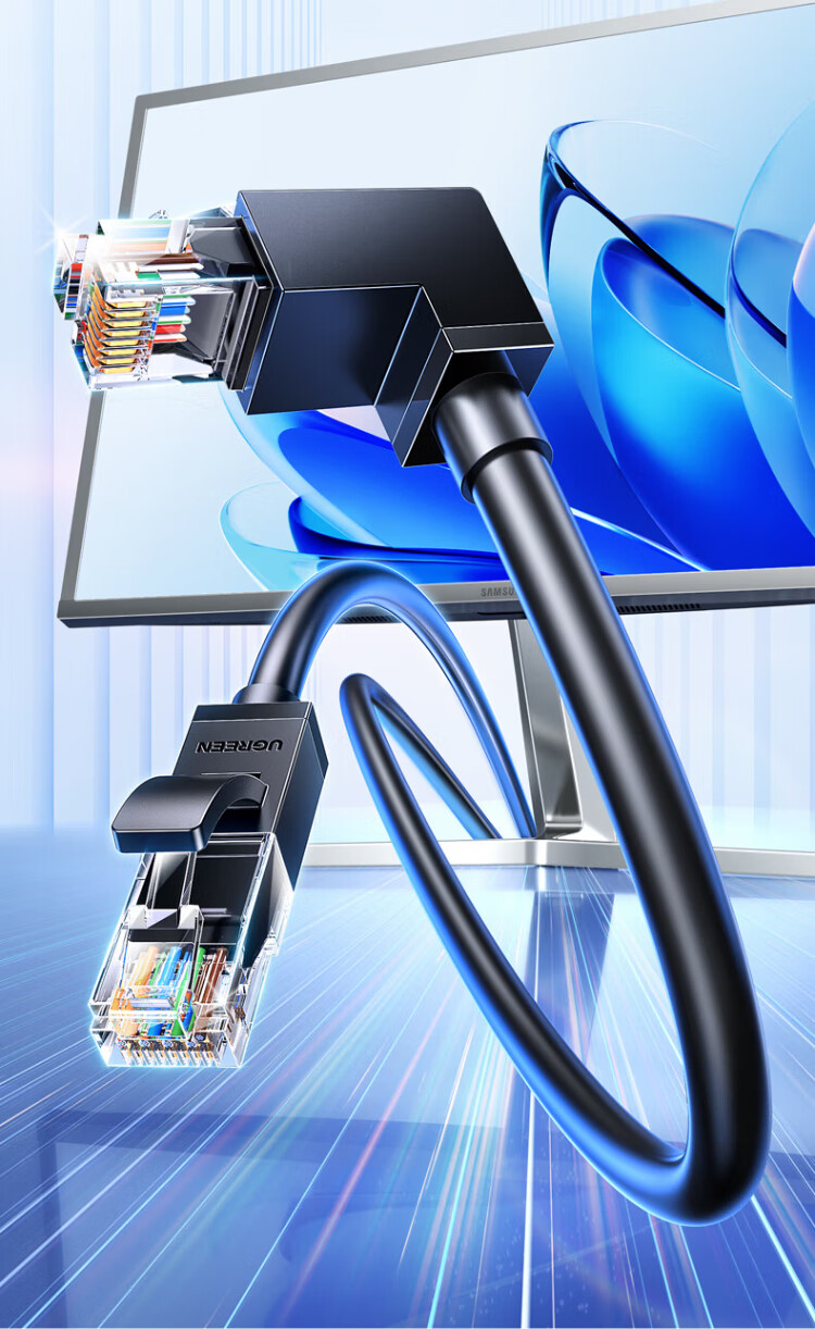 绿联(UGREEN)六类下弯头网线 CAT6类千兆网络连接线 直角l型电脑宽带高速网线 电视网络跳线转角90度 2米55203