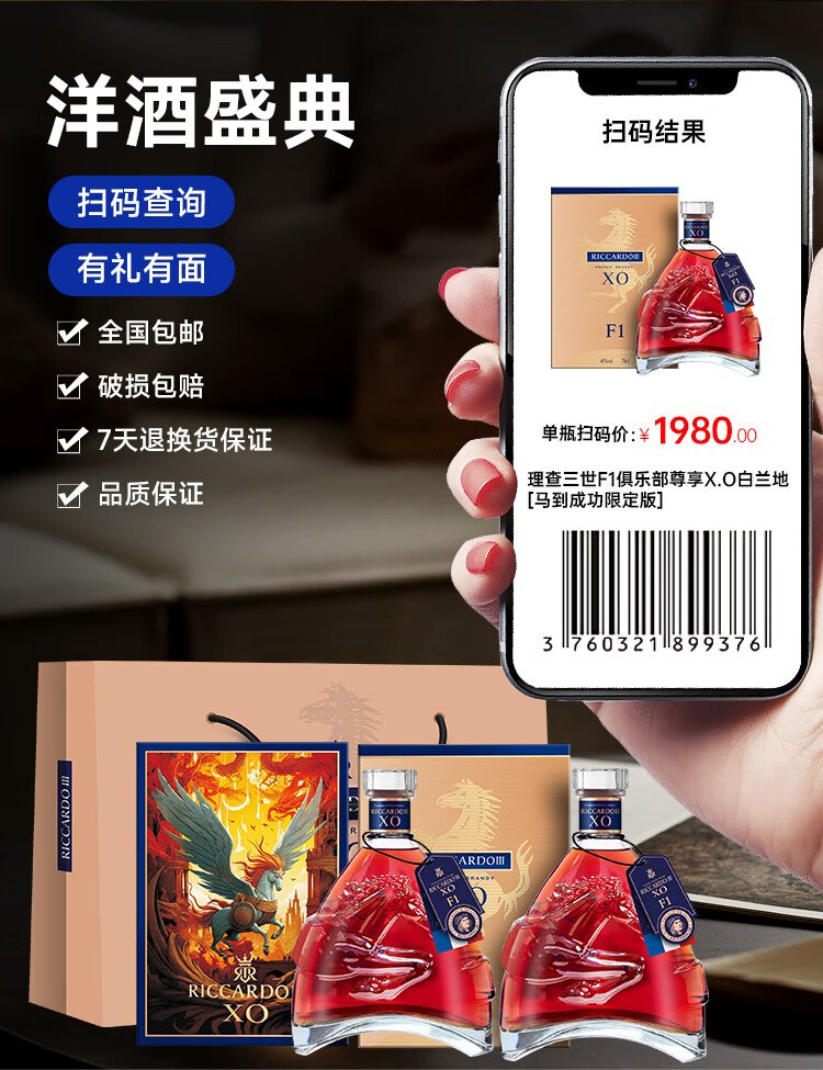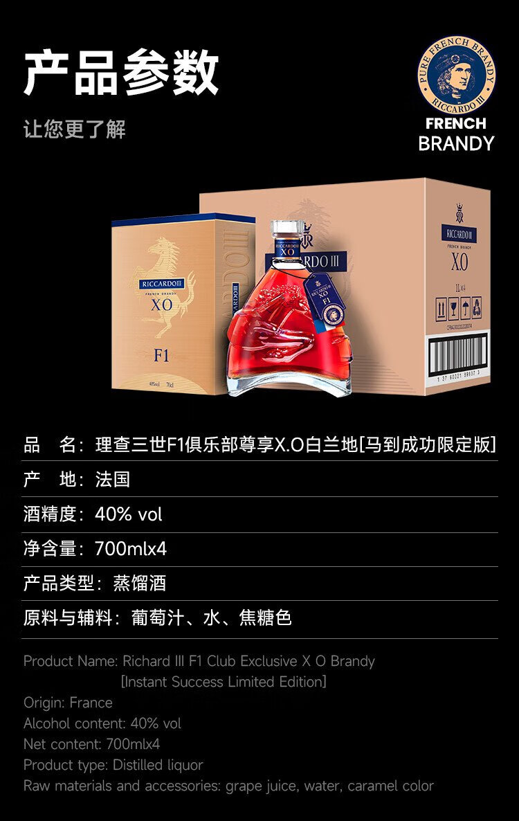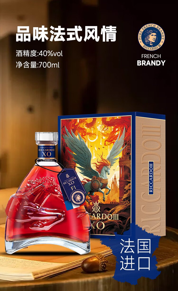 格兰尼维法国进口洋酒xo白兰地 理查三世马到成功40度烈酒 700ml