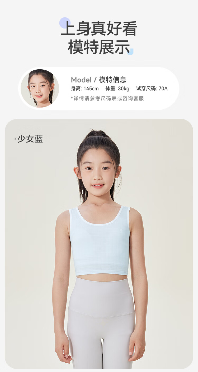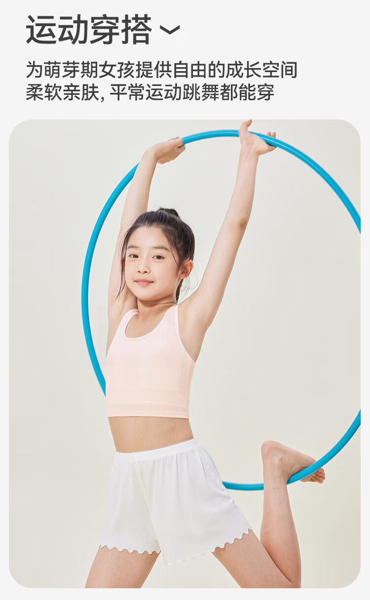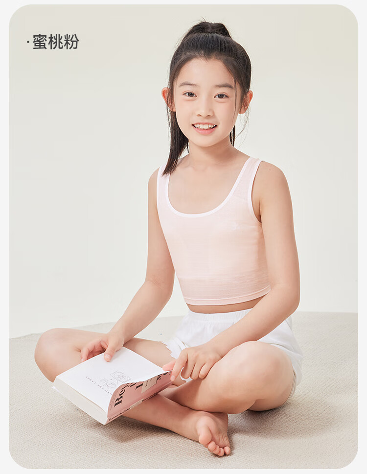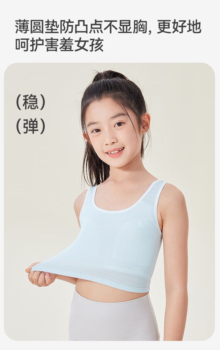 久岁伴儿童内衣女童发育期少女文胸中大童8-10岁学生棉质运动中长款背心