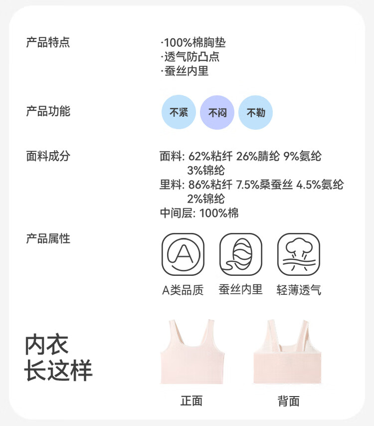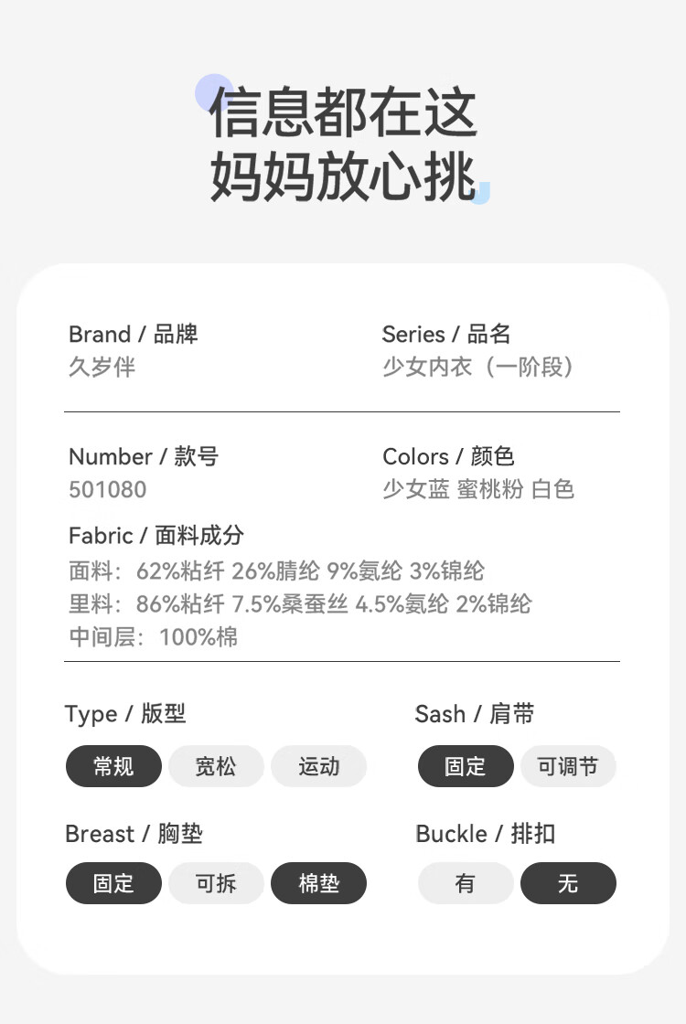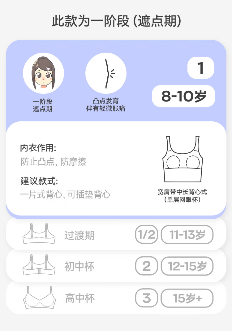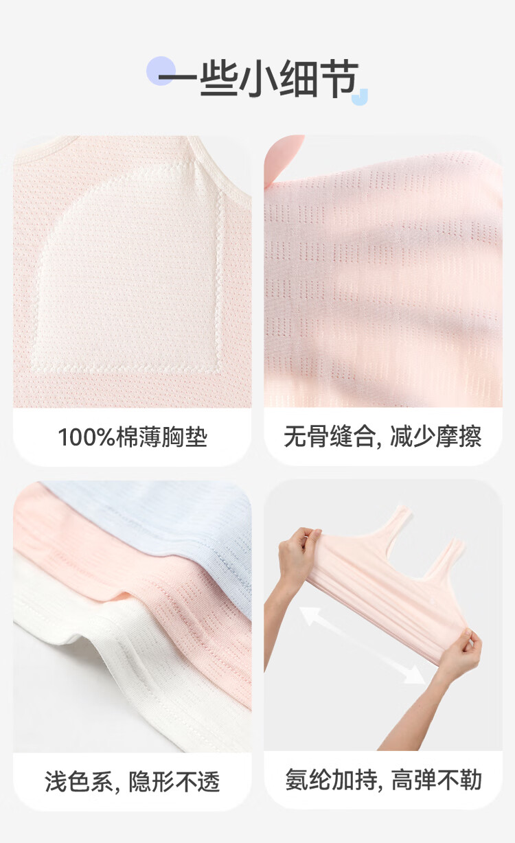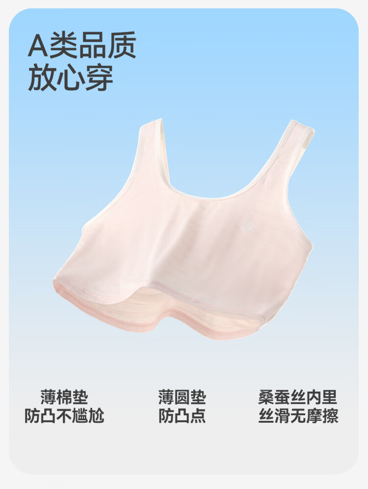 久岁伴儿童内衣女童发育期少女文胸中大童8-10岁学生棉质运动中长款背心