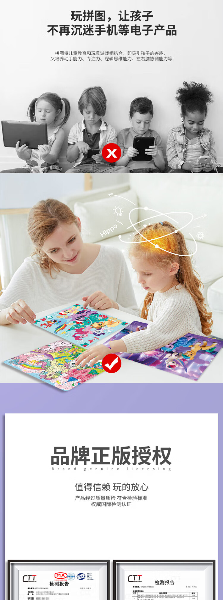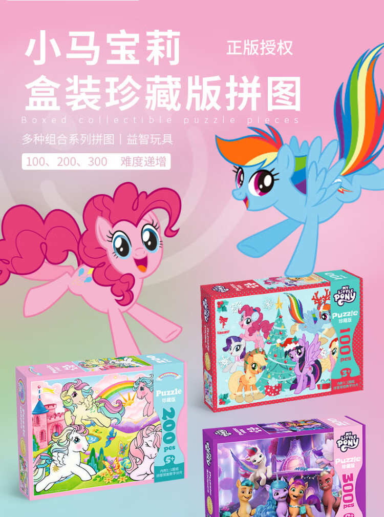 小马宝莉100片儿童益智早教玩具圣诞款3-6岁7-10岁拼装大块卡通拼图