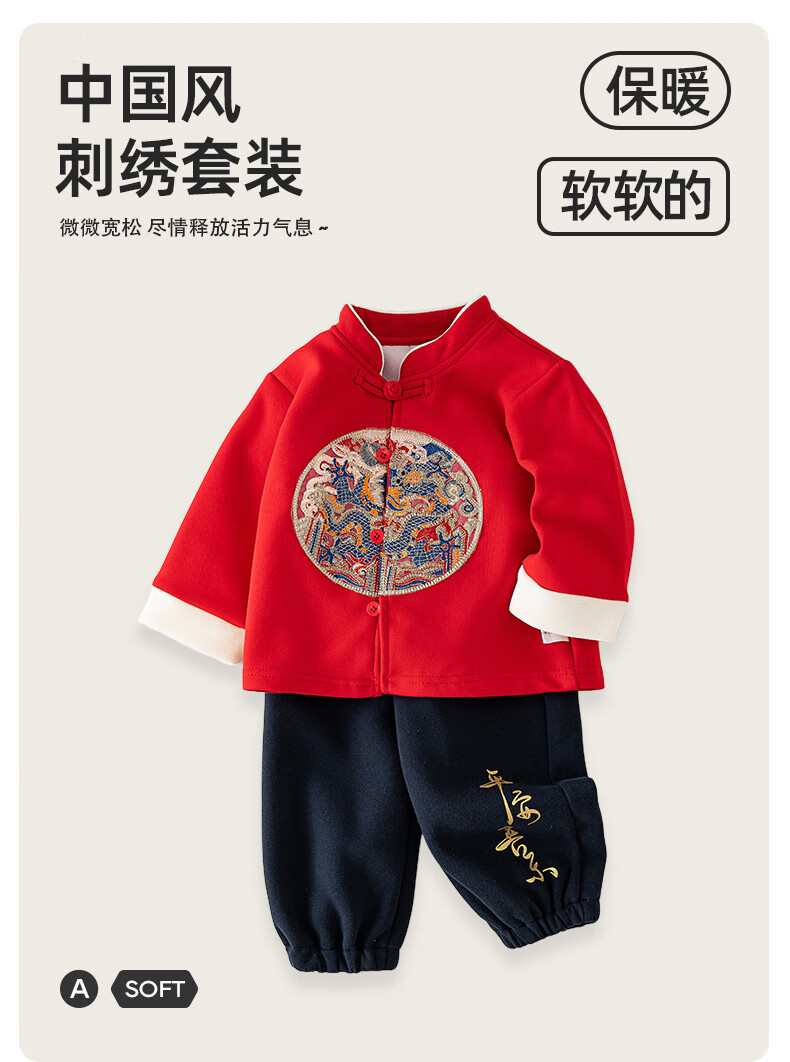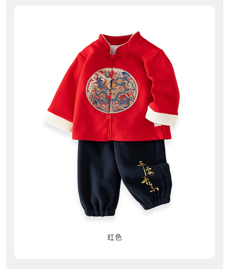 舒贝怡婴儿衣服汉服男童套装中式国风唐装小少爷周岁宝宝红色分体套装90