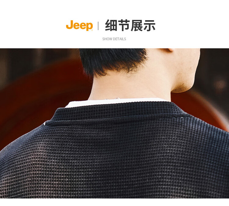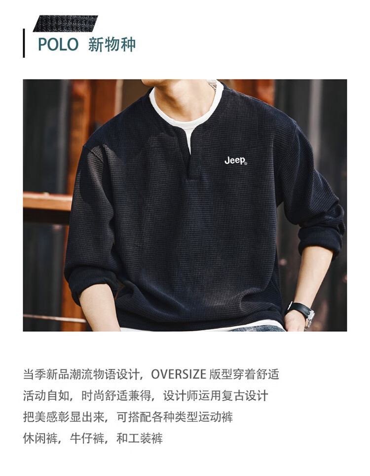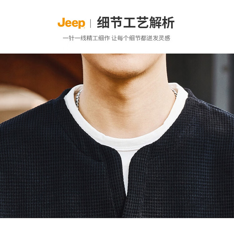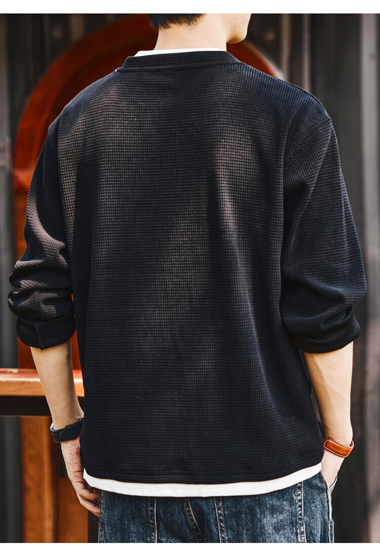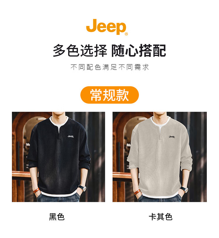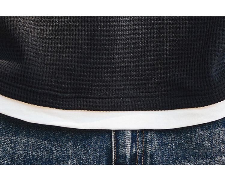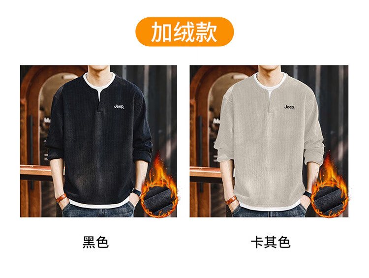 Jeep (JEEP) sweatshirt men's autumn and winter heavyweight waffle fake two-piece bottoming shirt top men's black XL