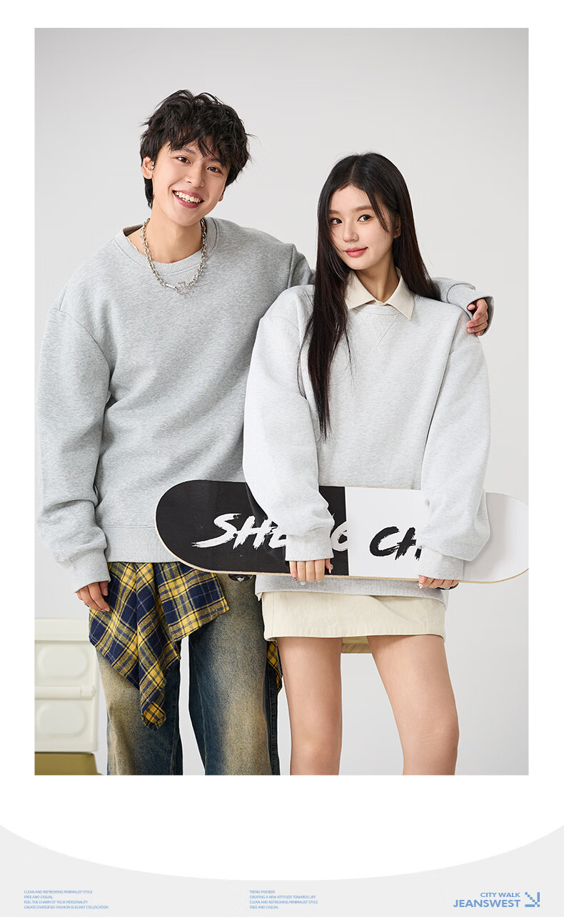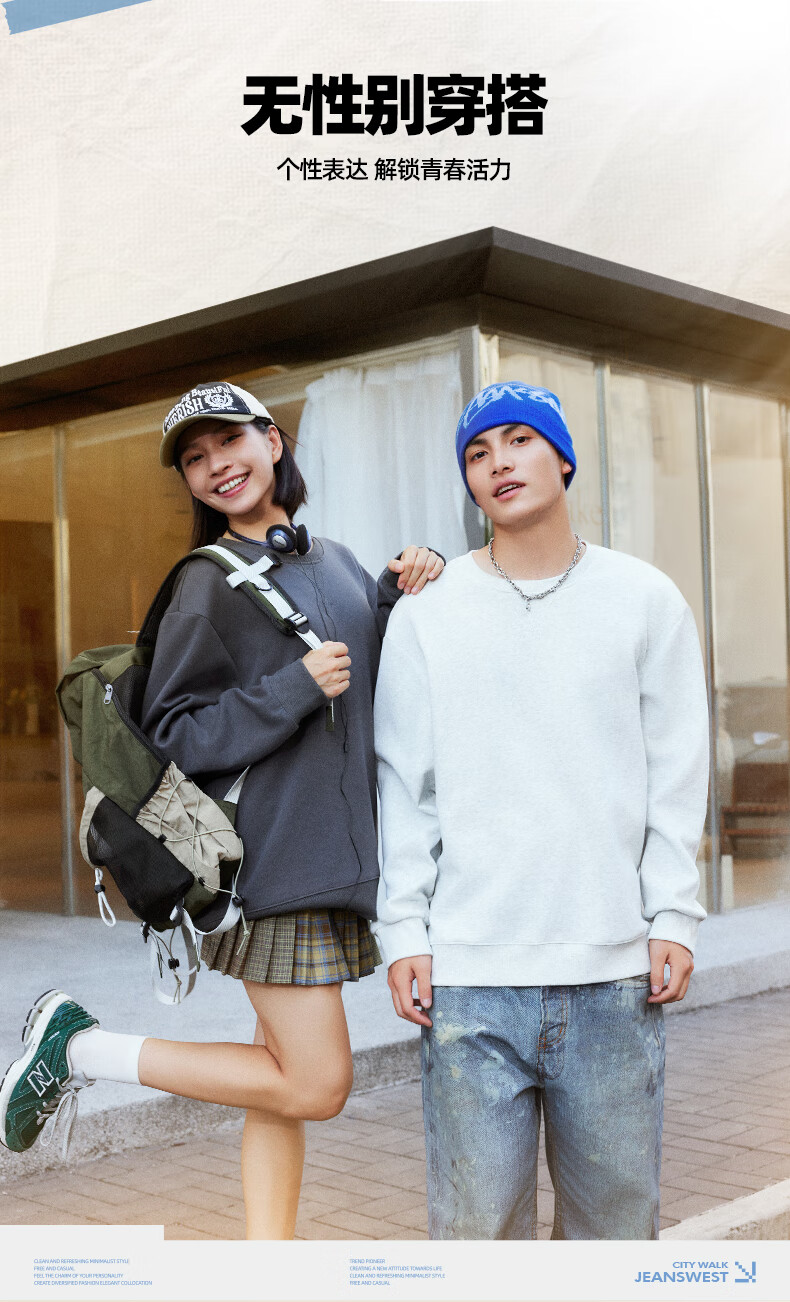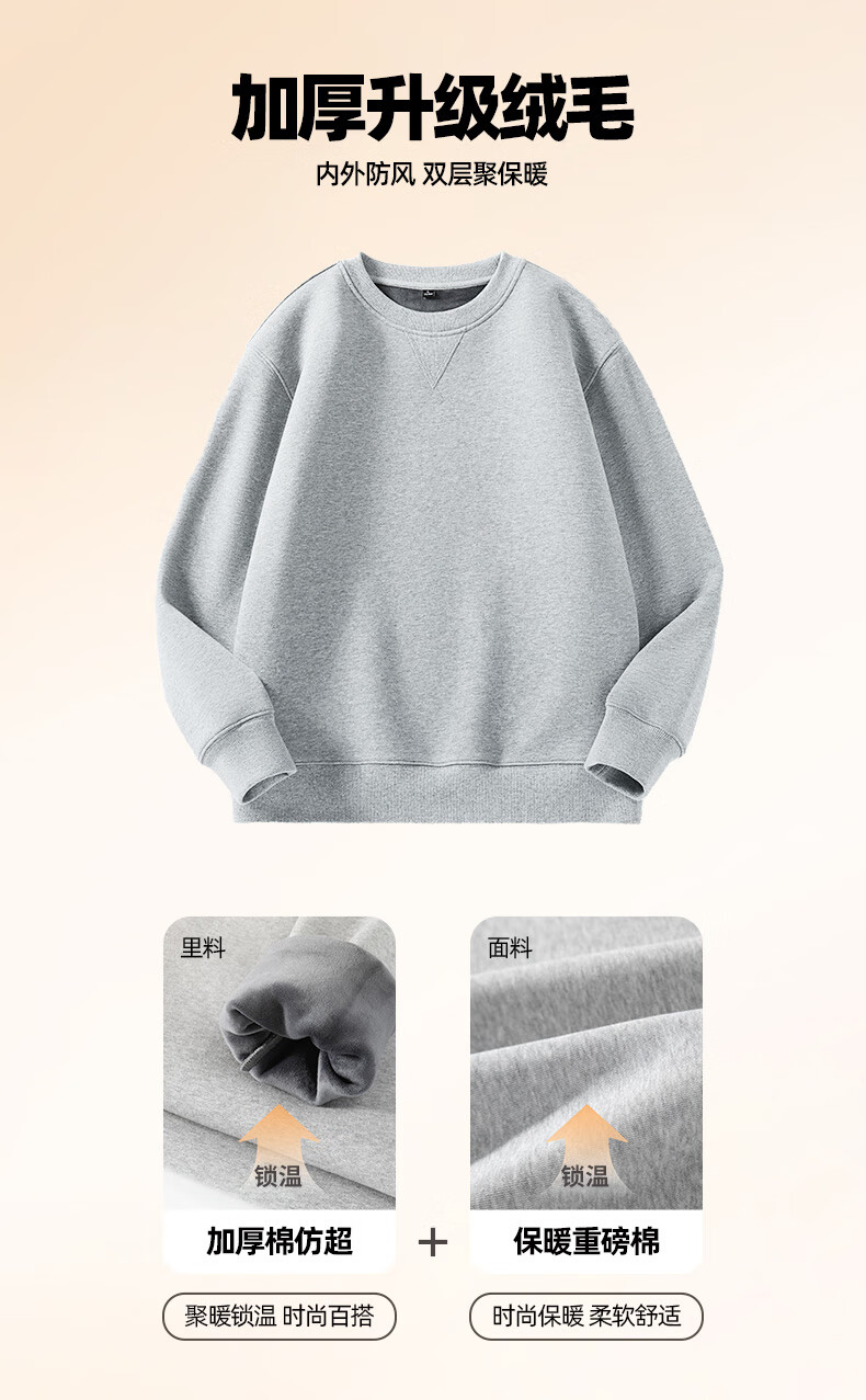 JEANSWEST LIFE Jeans velvet sweatshirt men's autumn and winter thickened top men's winter heavy cotton thermal inner round neck jacket