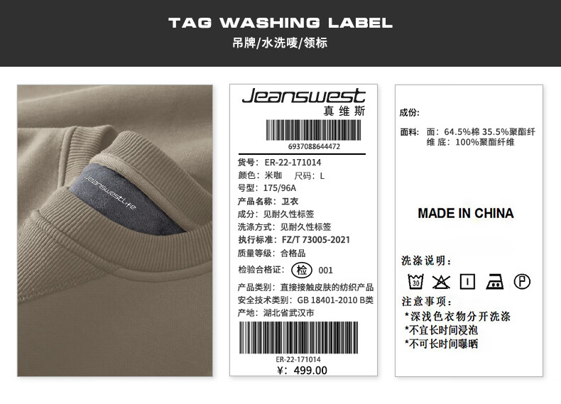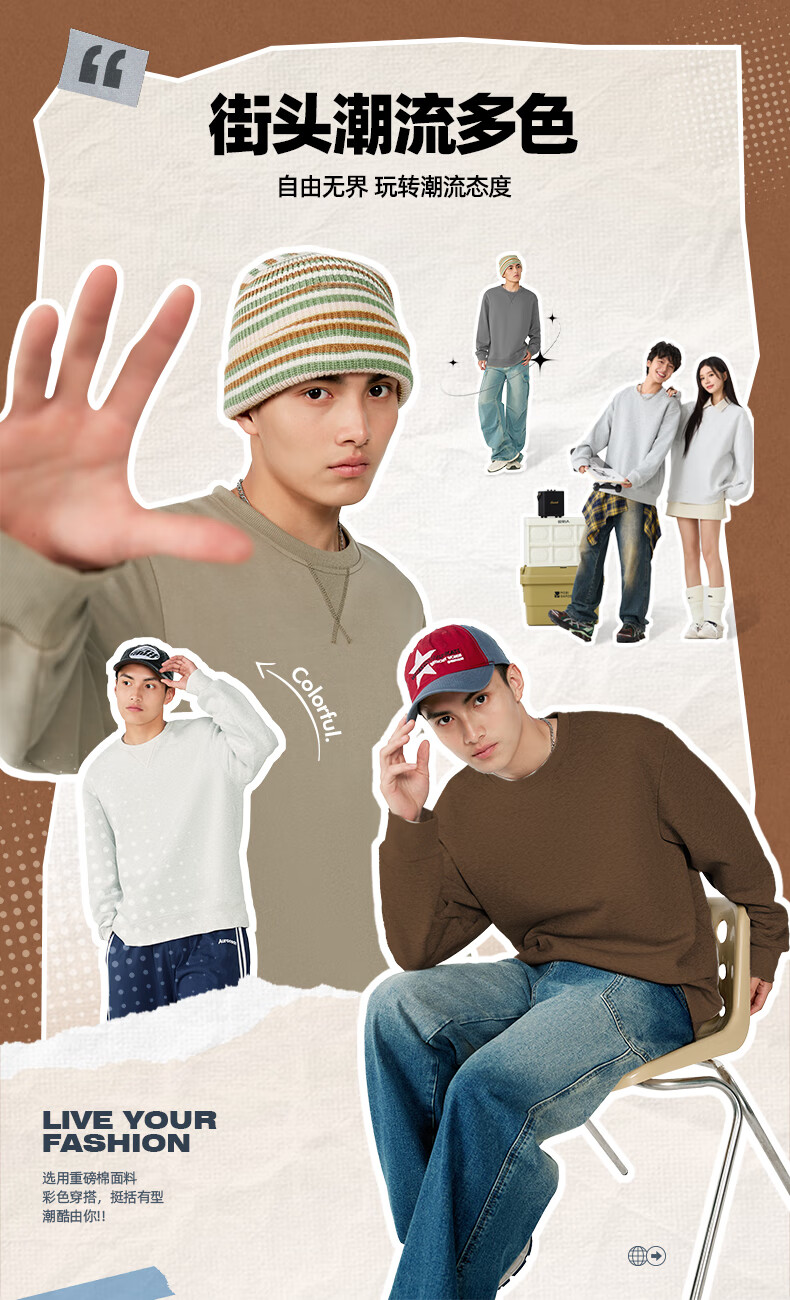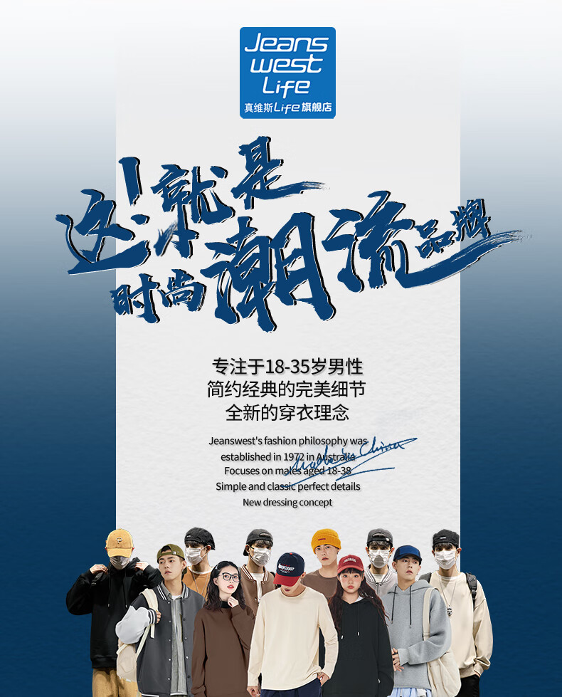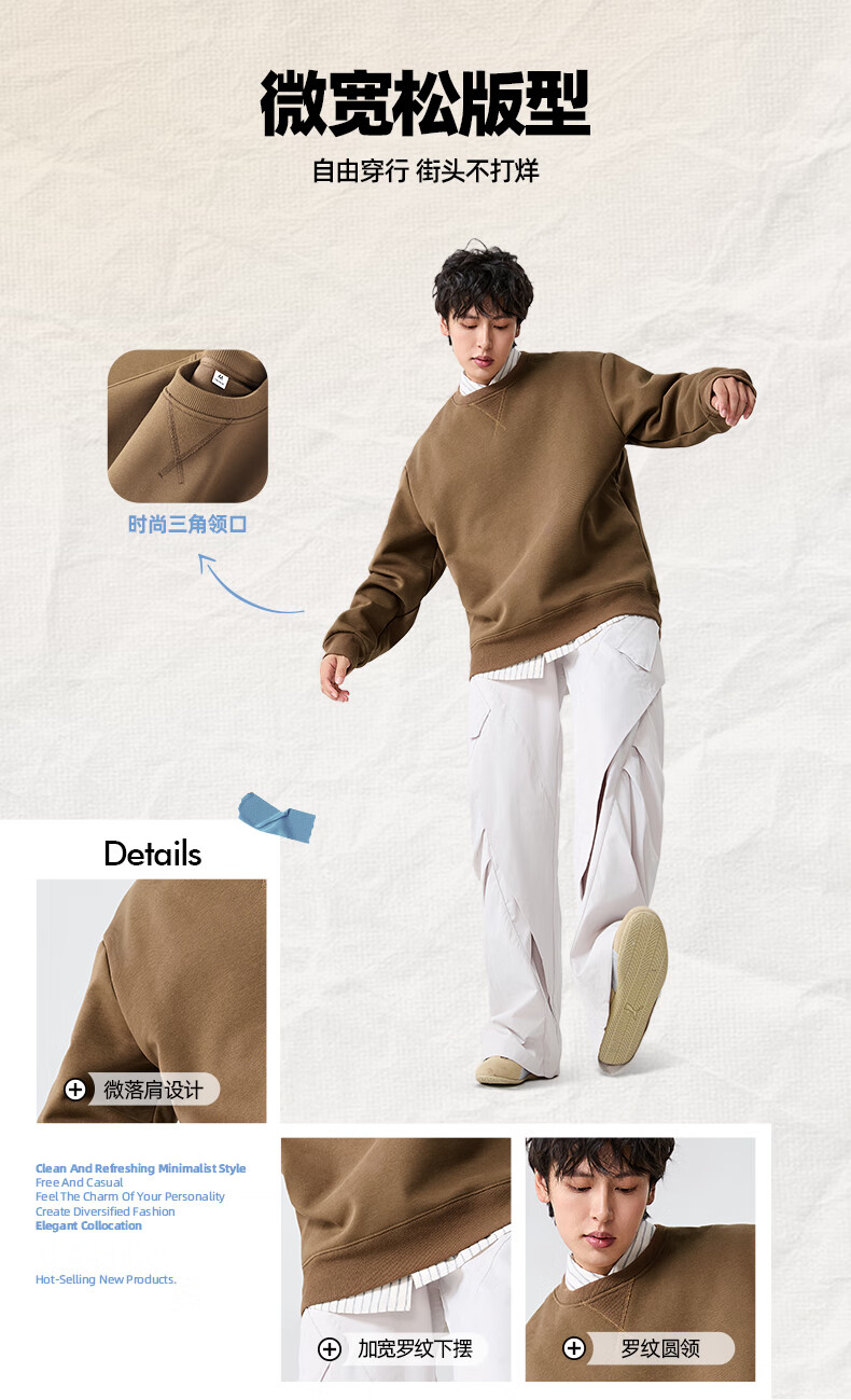 JEANSWEST LIFE Jeans velvet sweatshirt men's autumn and winter thickened top men's winter heavy cotton thermal inner round neck jacket