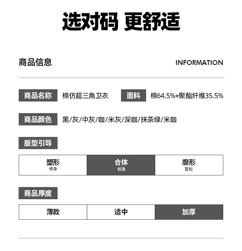 China (cm) 165 / 88-90 170 / 96-98 175 / 108-110 180 / 118-122 185 / 126-130