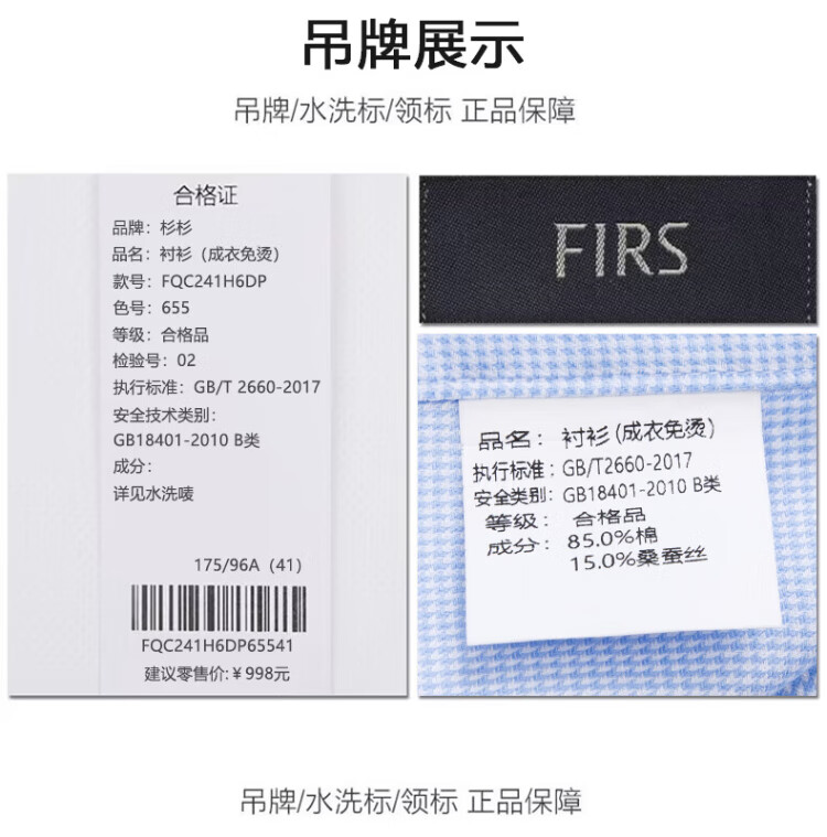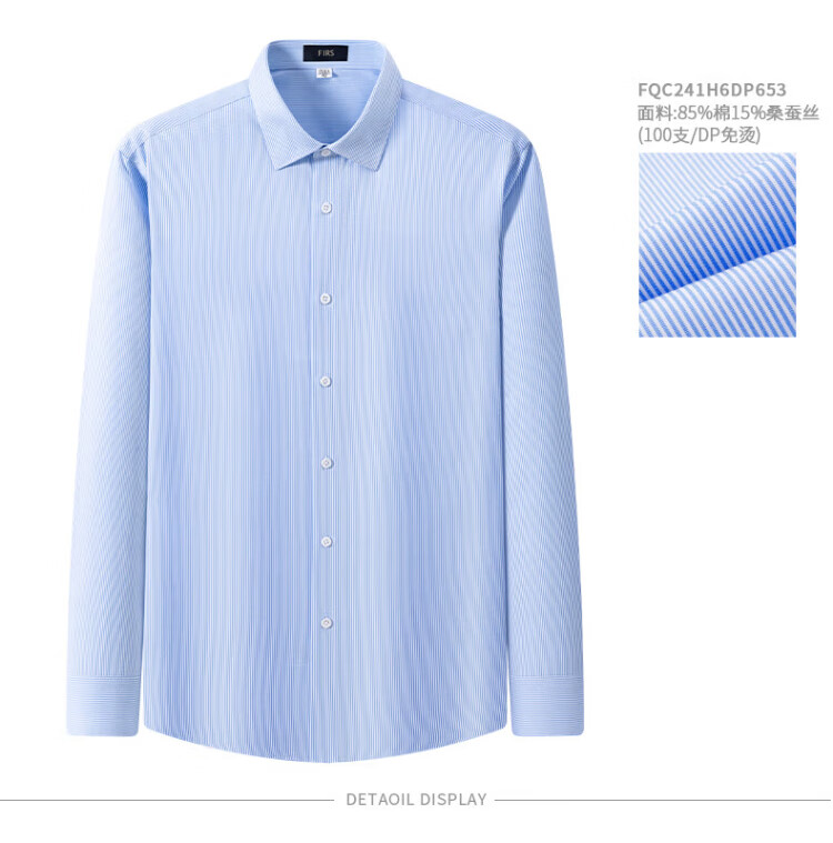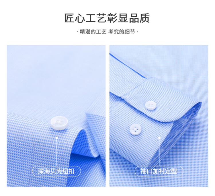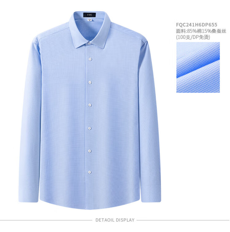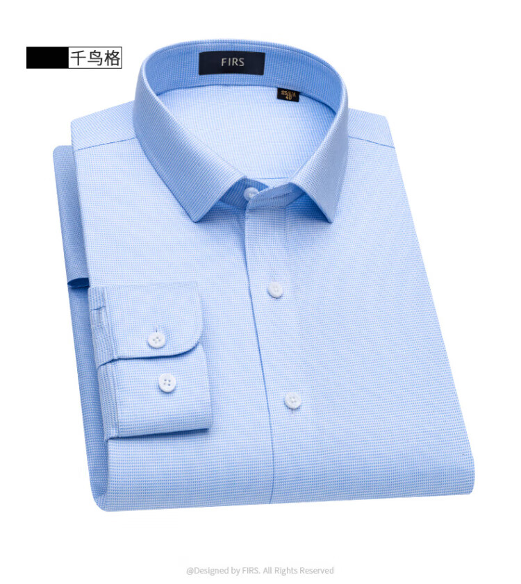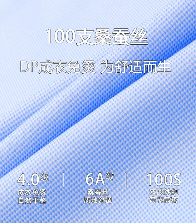 杉杉【桑蚕丝DP免烫】衬衫男长袖商务高端100支衬衣 蓝色千鸟格 41