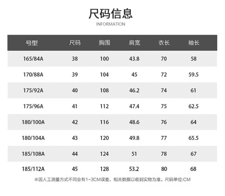 China (cm) 160-165/84-86 165-170 / 88-90 167-172 / 92-96 168-173 / 98-102 170-176 / 106-110