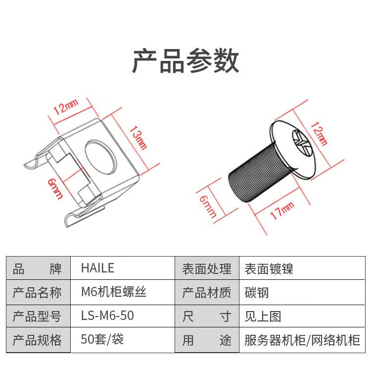 HAILE cabinet screws M6 high-quality cabinet-specific cross slot screws 50 sets/bag LS-M6-50