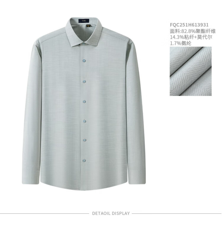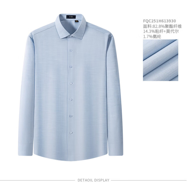 Shanshan Chemise modale à motif foncé pour homme, manches longues, décontractée, confortable, élastique, sans repassage, haut de gamme, bleu clair 40