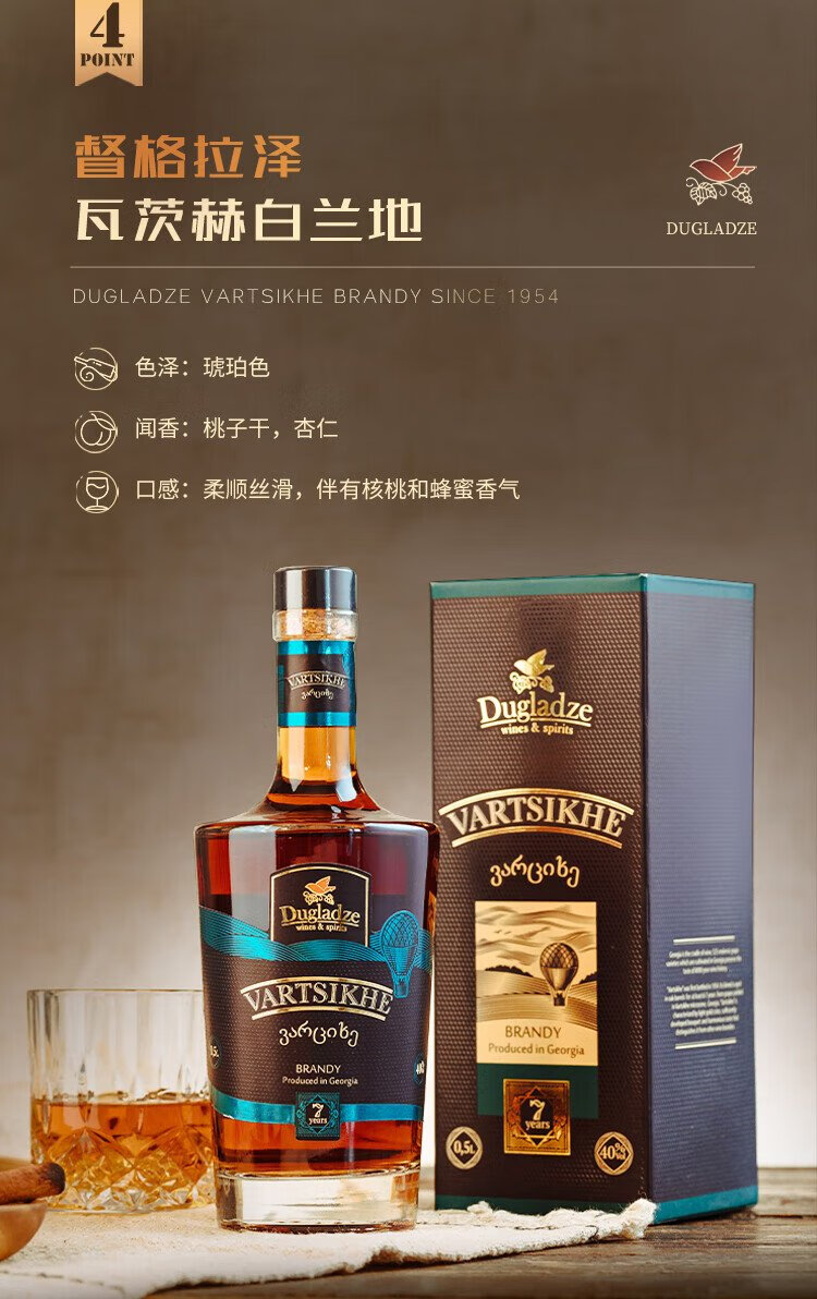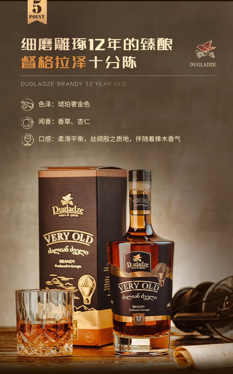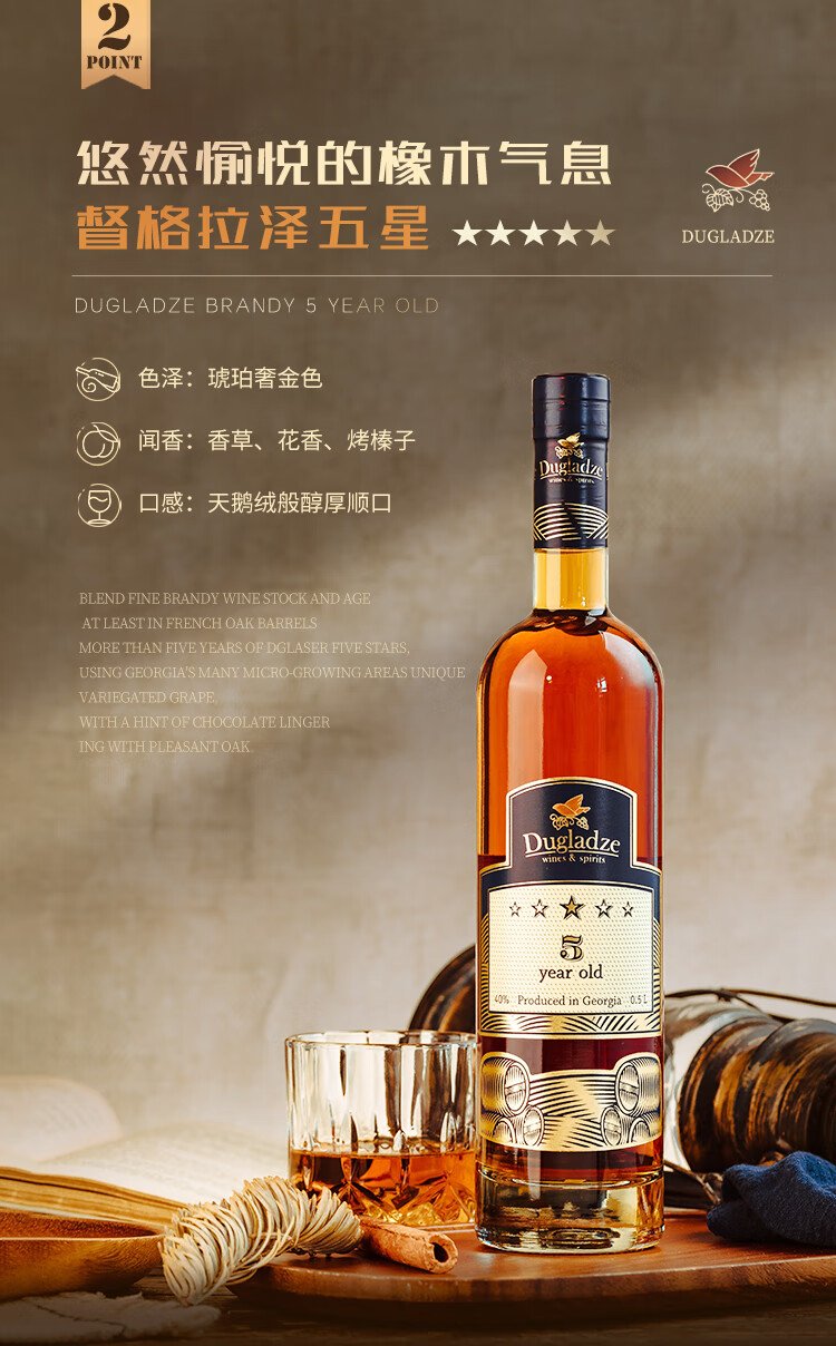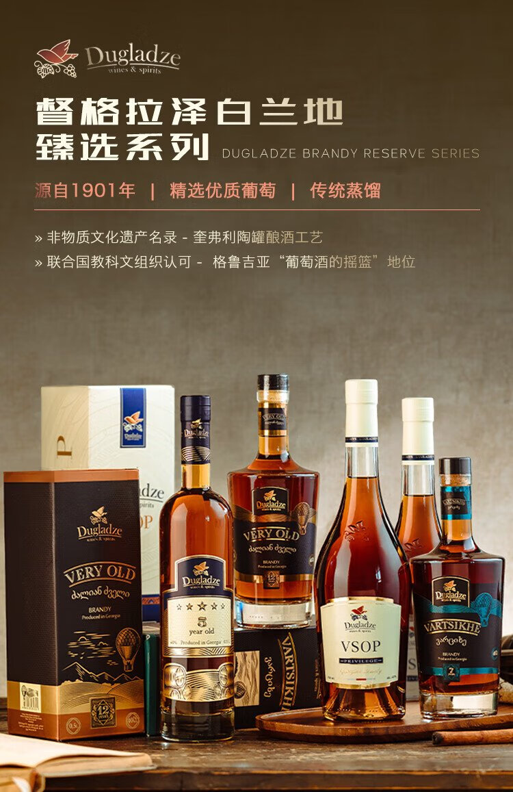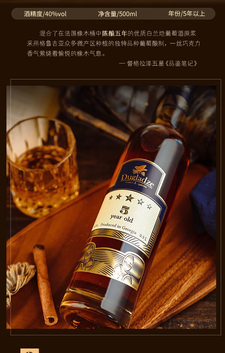 督格拉泽格鲁吉亚原瓶进口白兰地诞生地洋酒调酒基酒烈酒 五星 500mL 1瓶