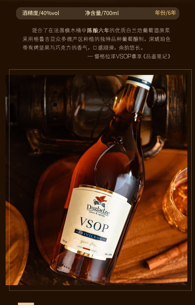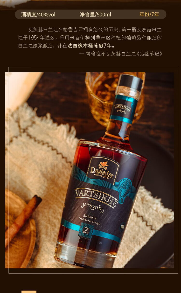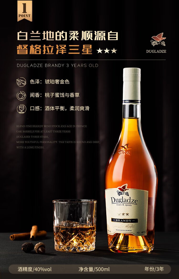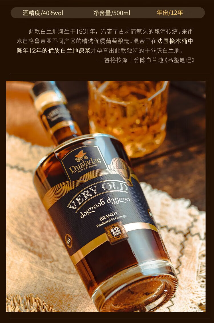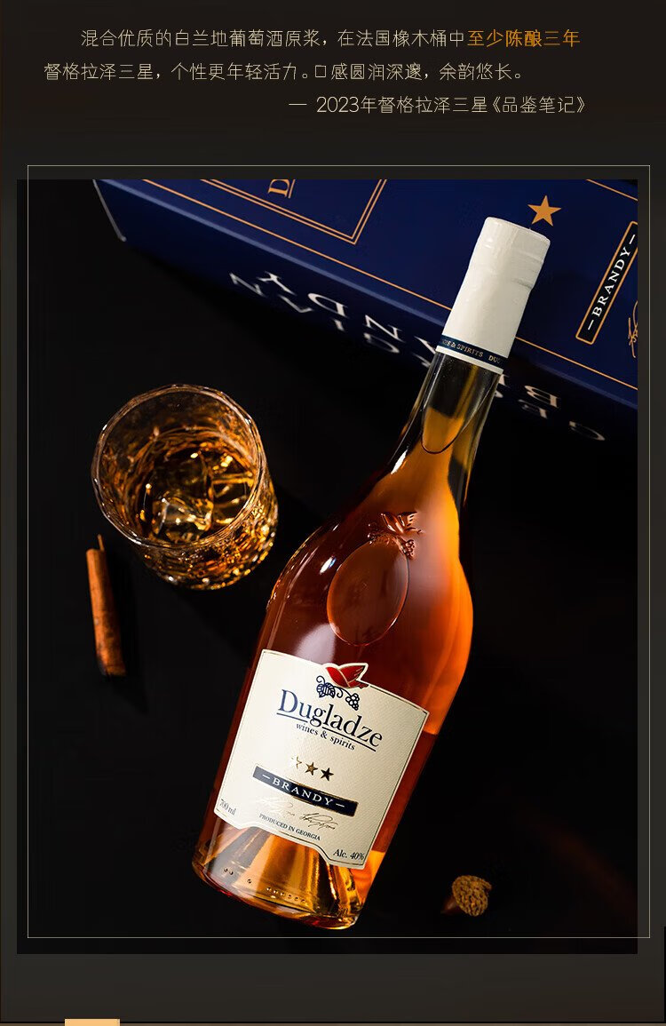 督格拉泽格鲁吉亚原瓶进口白兰地诞生地洋酒调酒基酒烈酒 五星 500mL 1瓶
