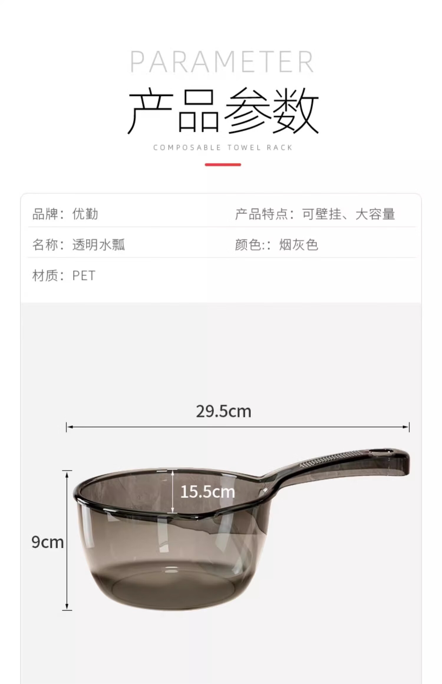 Increased home kitchen water spoon that cannot be broken is deepened and thickened long-handled plastic large creative transparent water ladle shampoo spoon