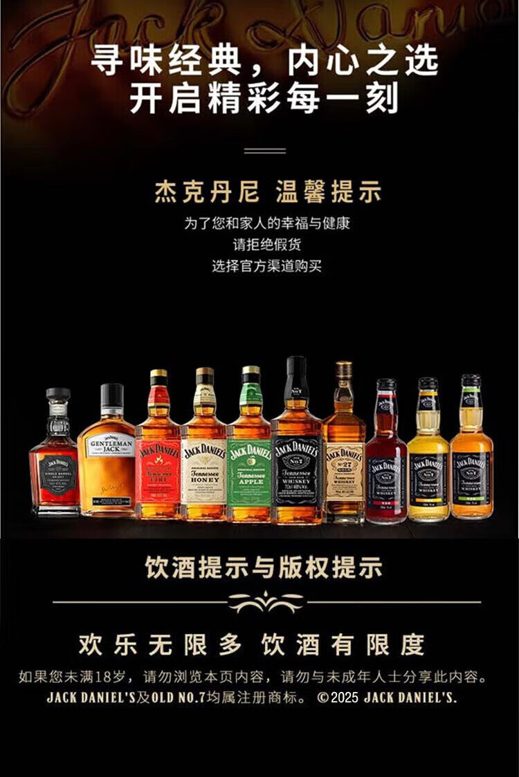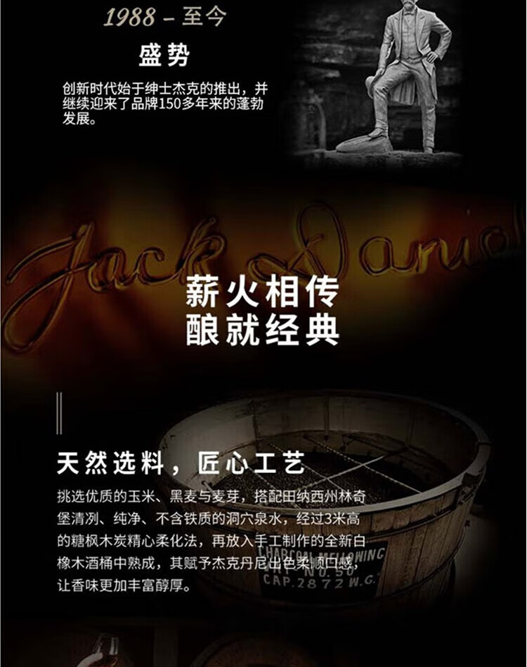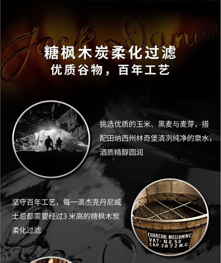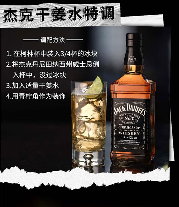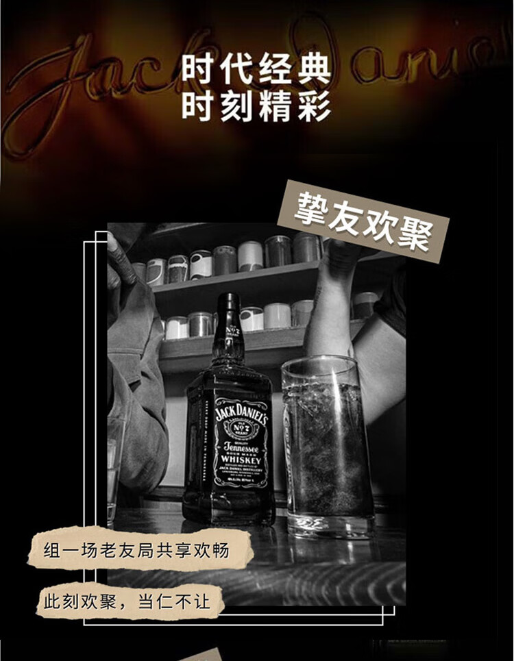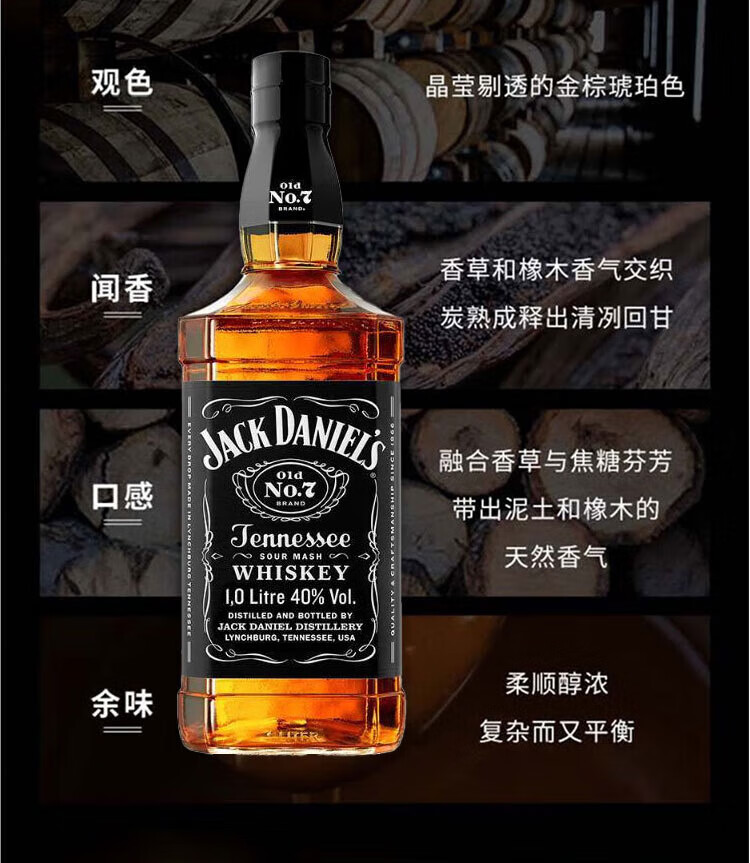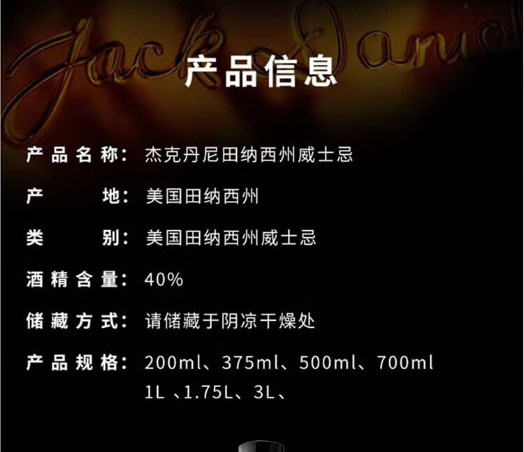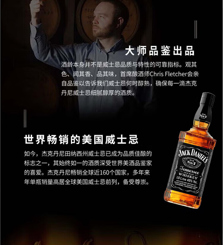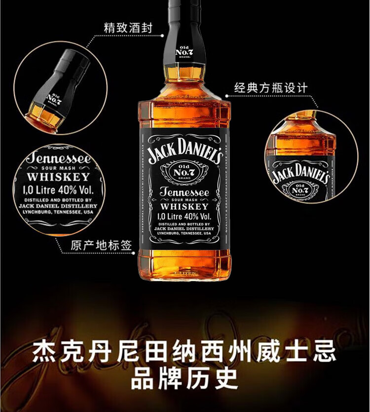 杰克丹尼美国田纳西州 调和型 威士忌 40度 洋酒 黑标 1L*1 送礼