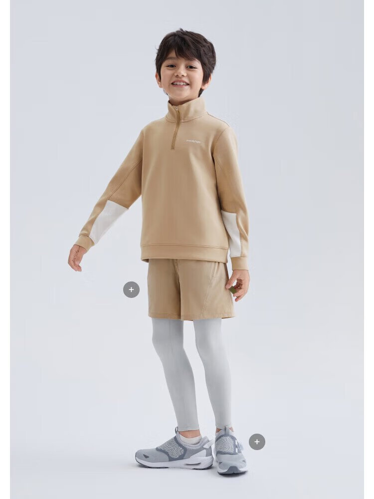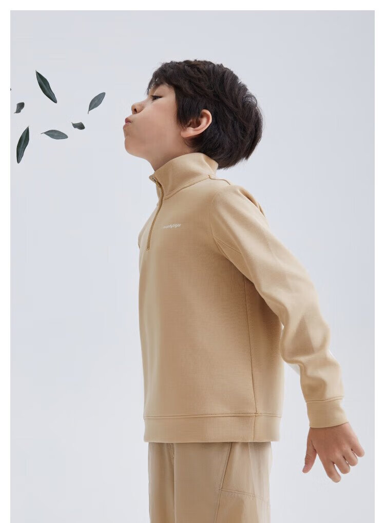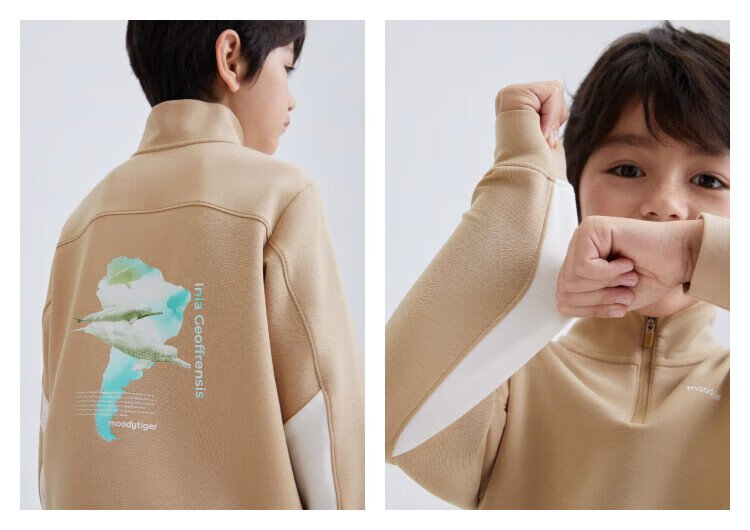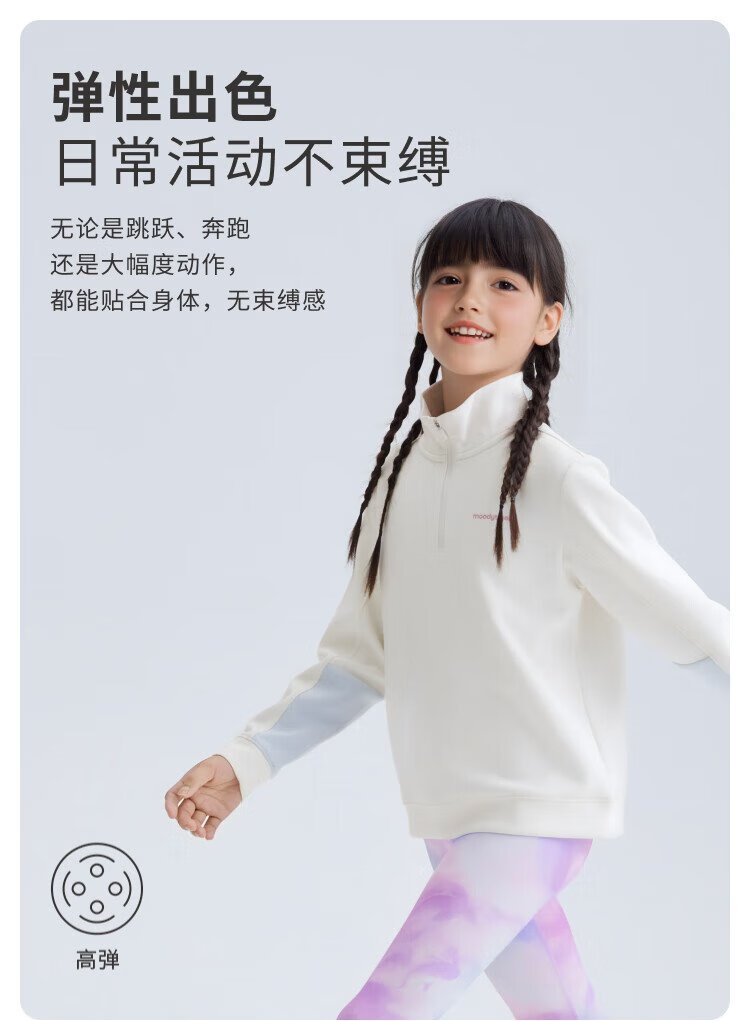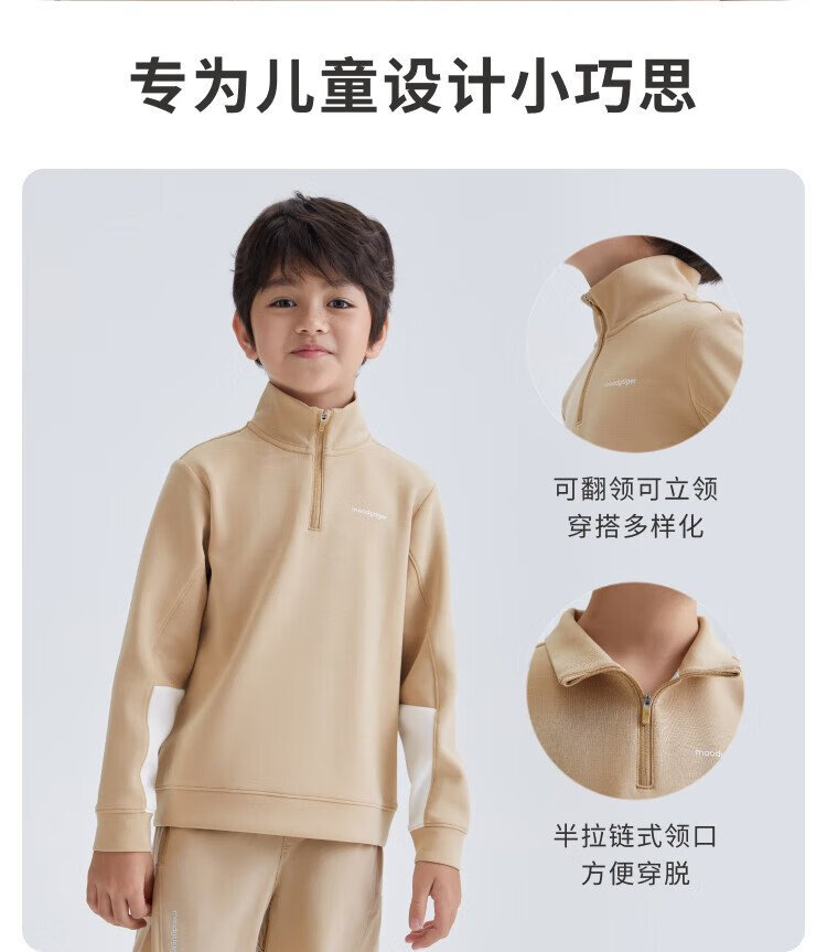 moodytiger儿童卫衣柔软高弹春秋装男童上装吸汗弹力拉链开襟女童运动卫衣