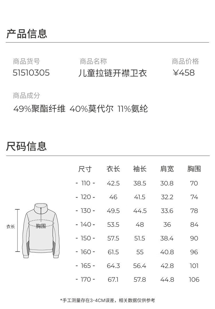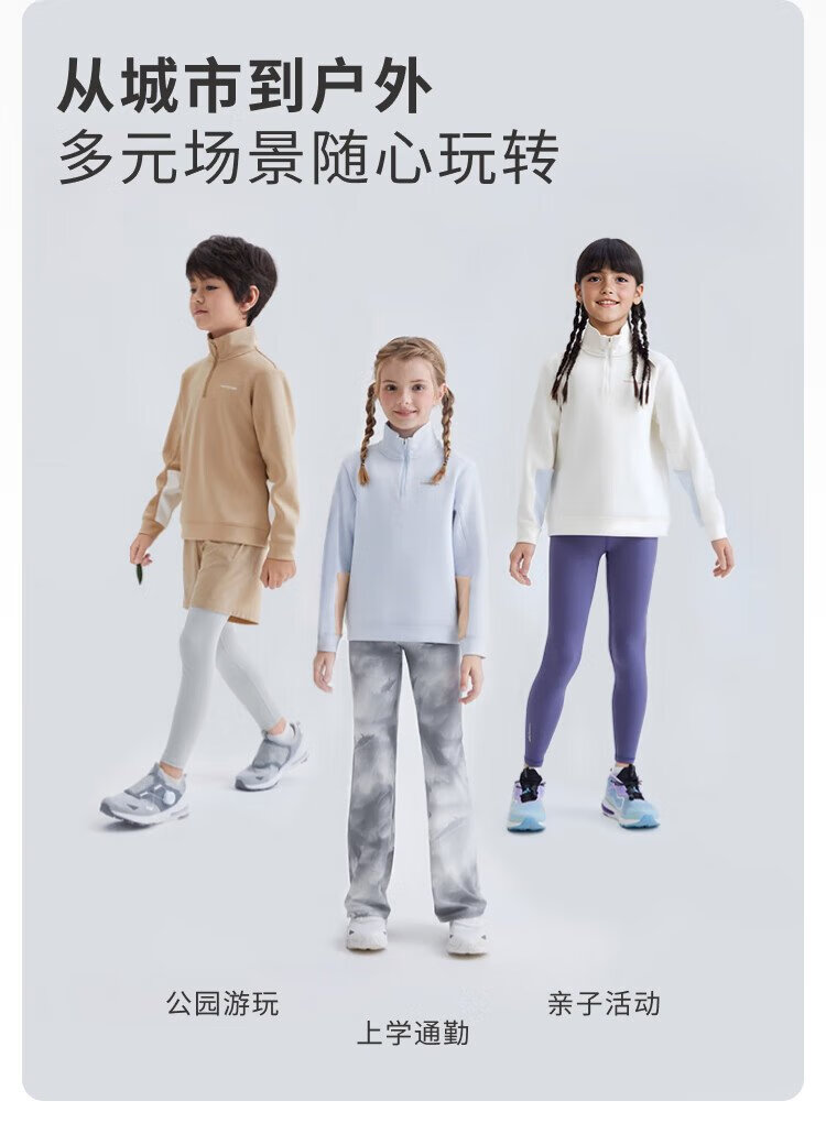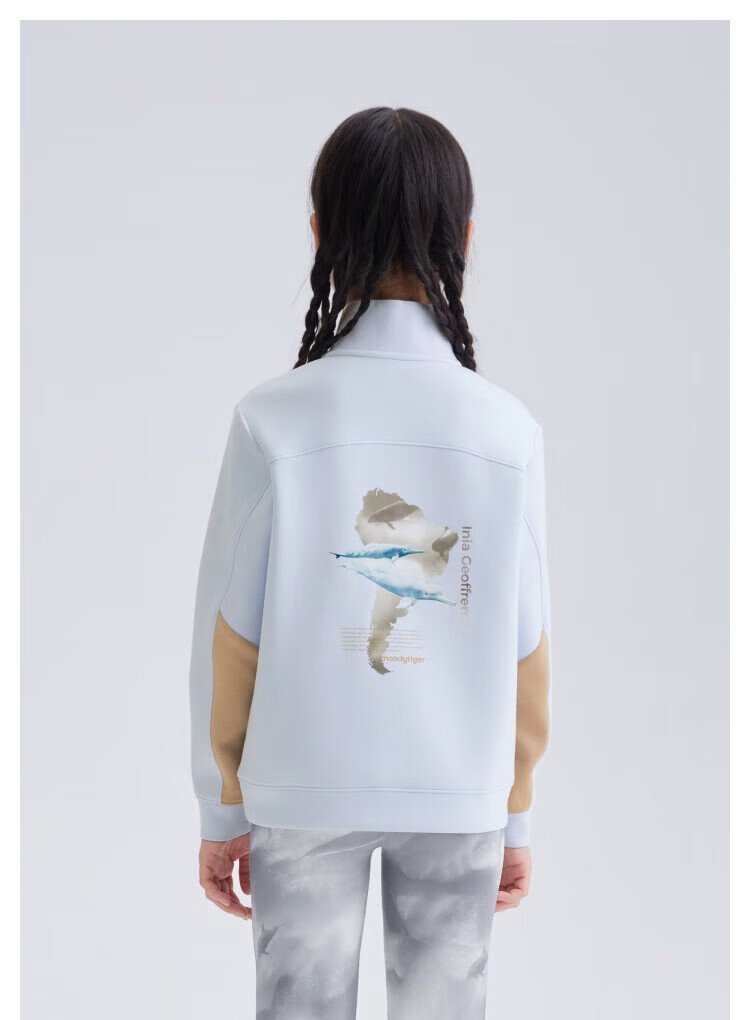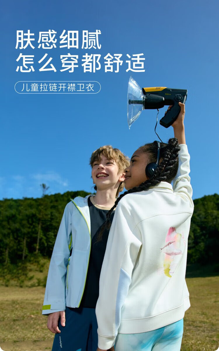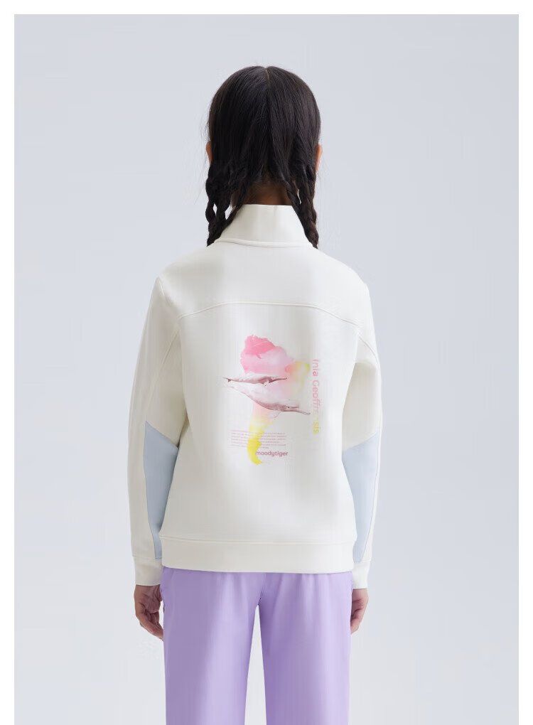 moodytiger儿童卫衣柔软高弹春秋装男童上装吸汗弹力拉链开襟女童运动卫衣