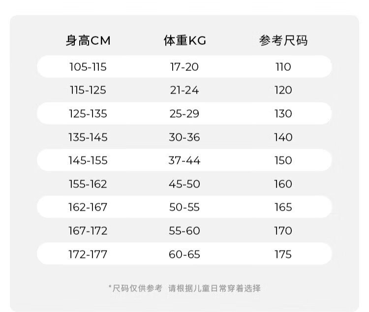 China (cm) 160-165/84-86 165-170 / 88-90 167-172 / 92-96 168-173 / 98-102 170-176 / 106-110