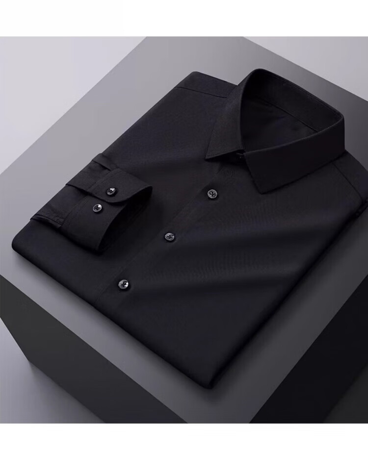 ROMON шелковая шелковая рубашка с длинными рукавами без глажки, профессиональная мужская приталенная деловая рубашка-куртка, мужская белая рубашка, черный L