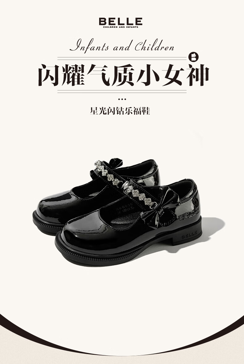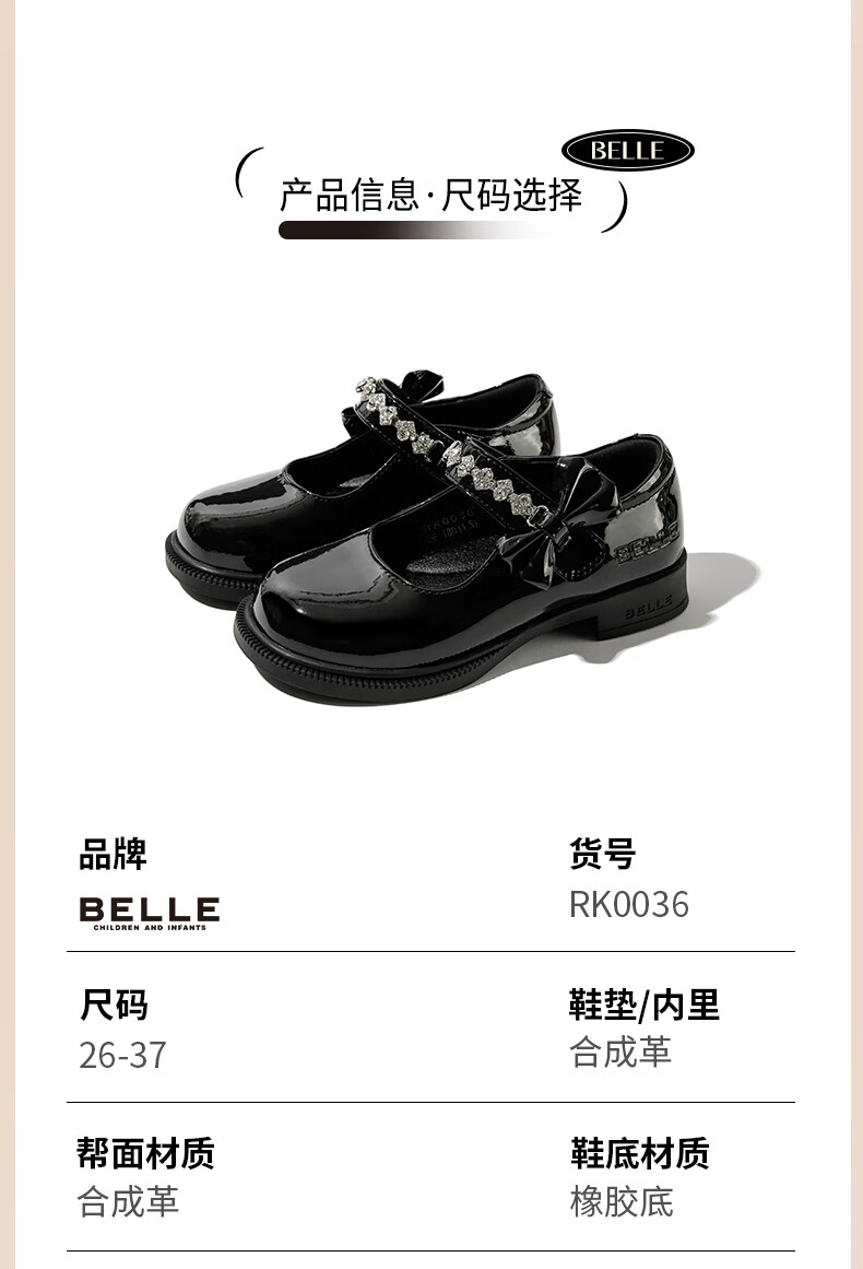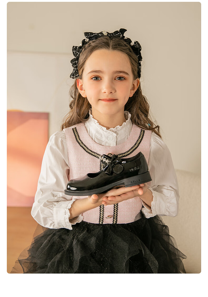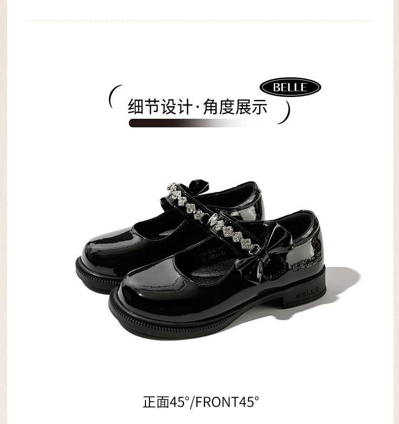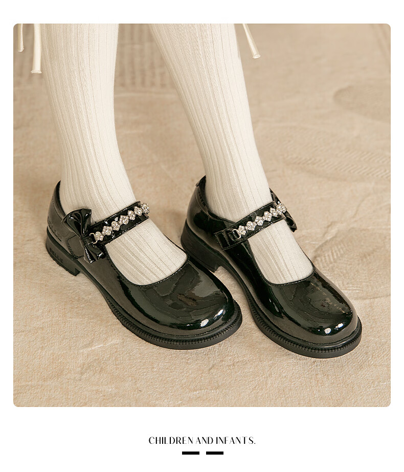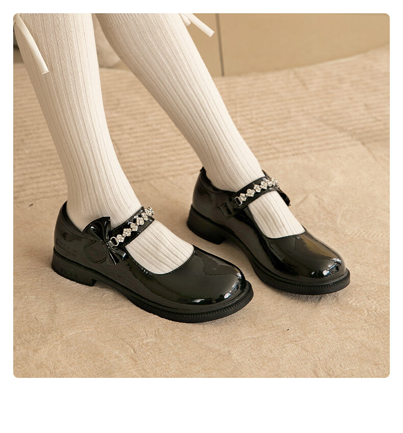 百丽童鞋女童黑皮鞋演出鞋春秋儿童学生鞋乐福鞋中大童单鞋 黑色28