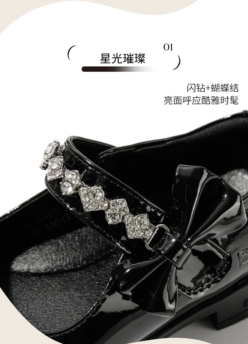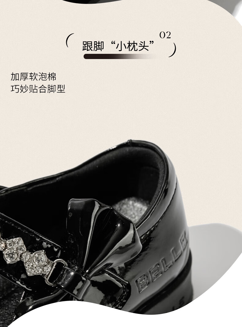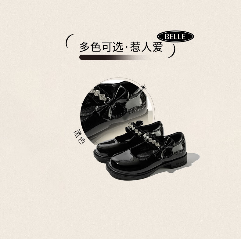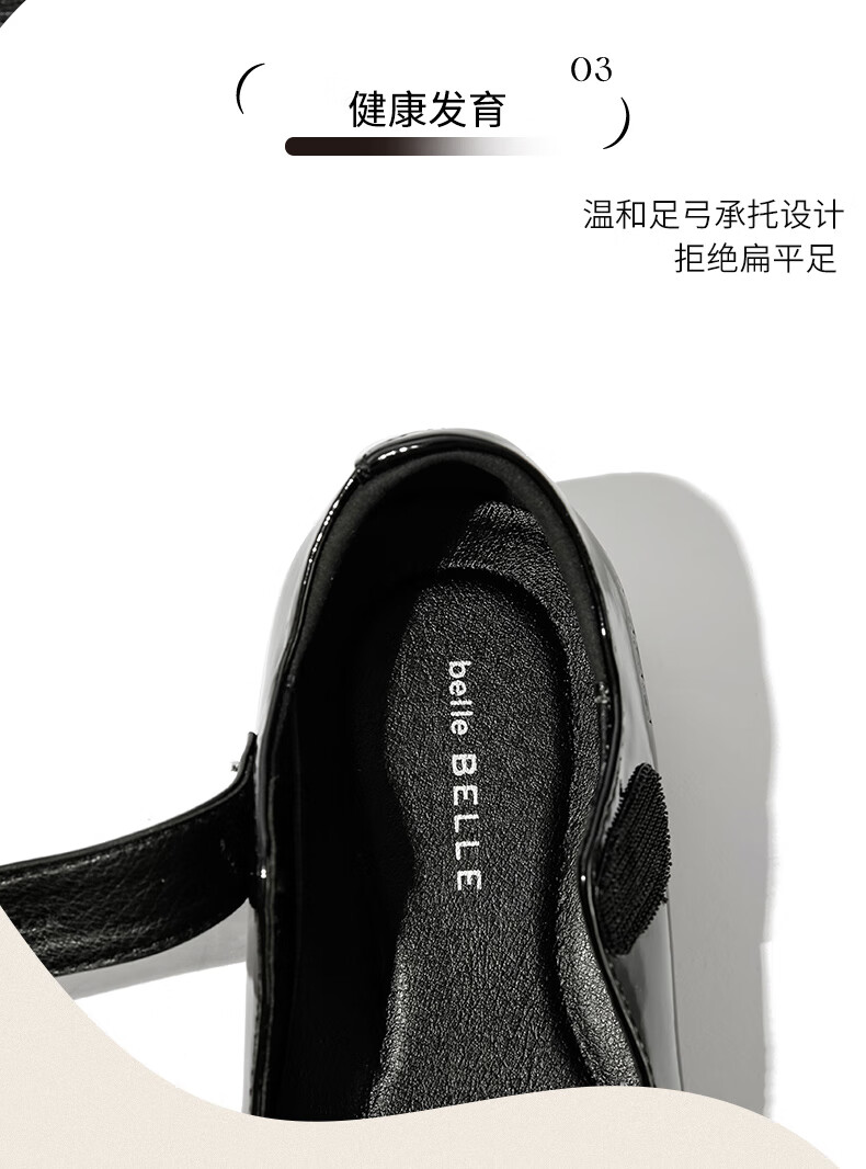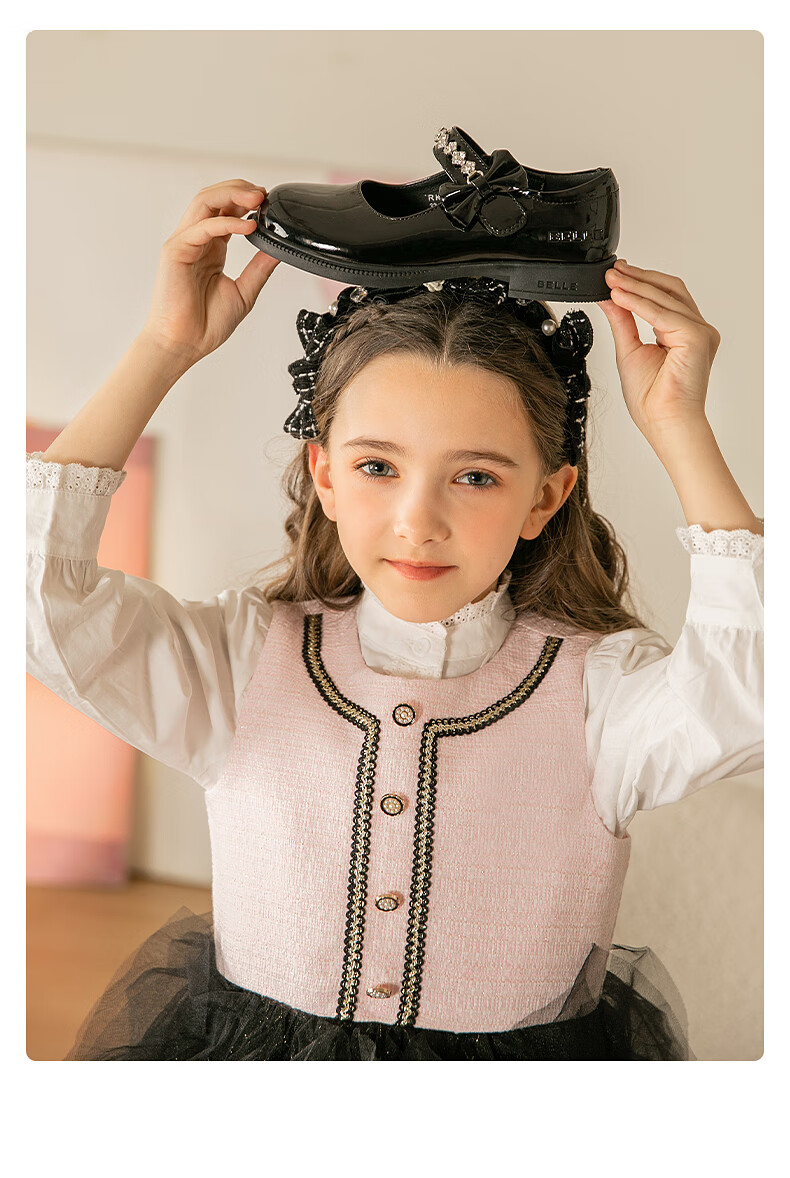 百丽童鞋女童黑皮鞋演出鞋春秋儿童学生鞋乐福鞋中大童单鞋 黑色28