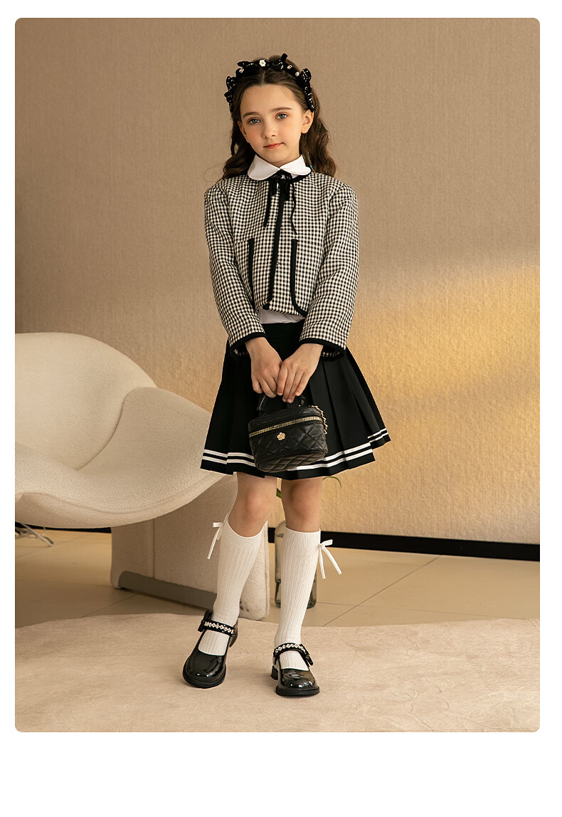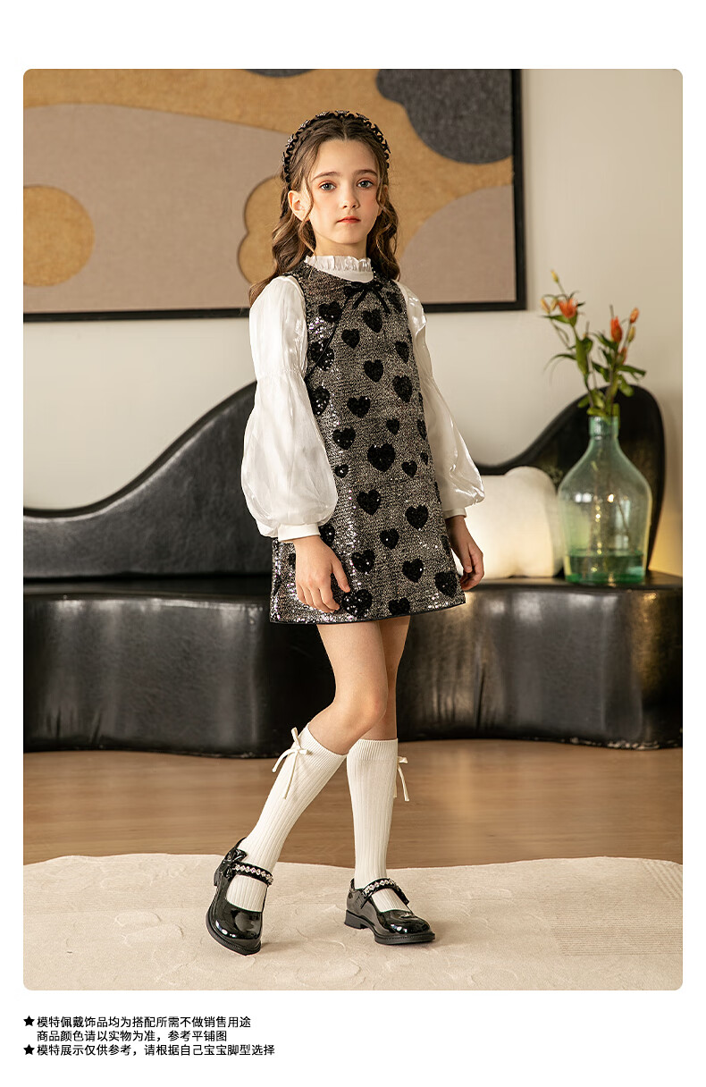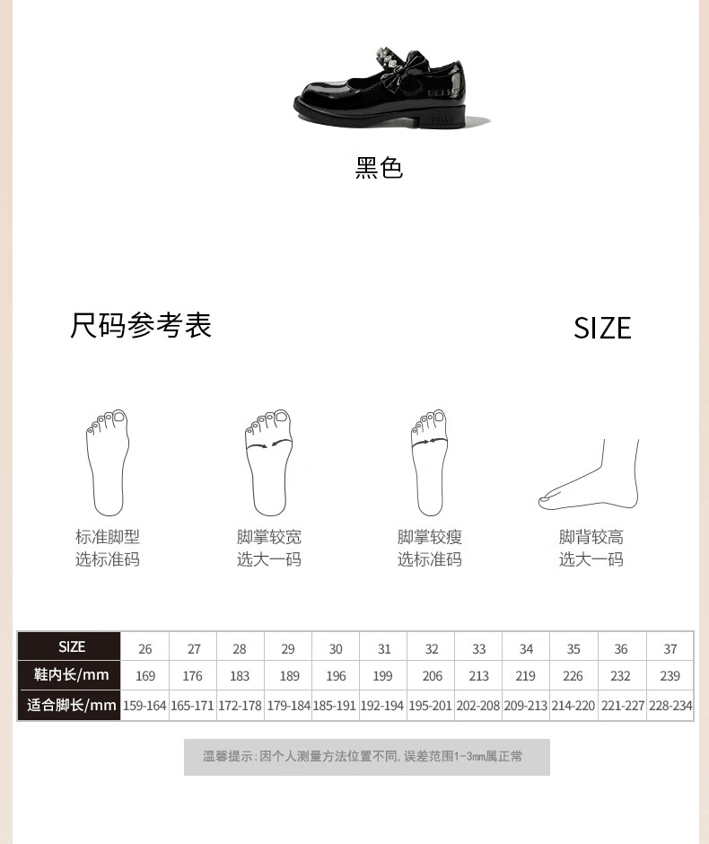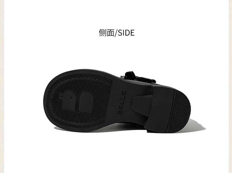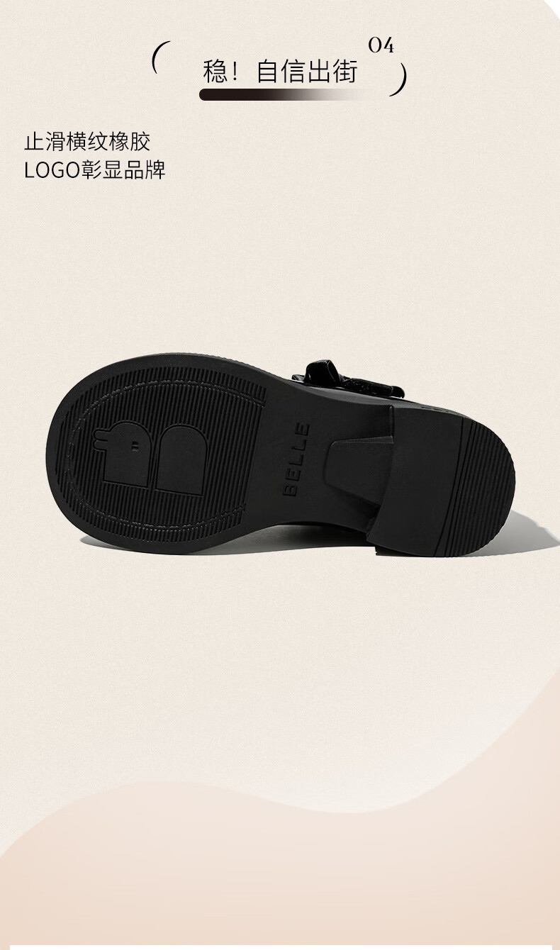 百丽童鞋女童黑皮鞋演出鞋春秋儿童学生鞋乐福鞋中大童单鞋 黑色28
